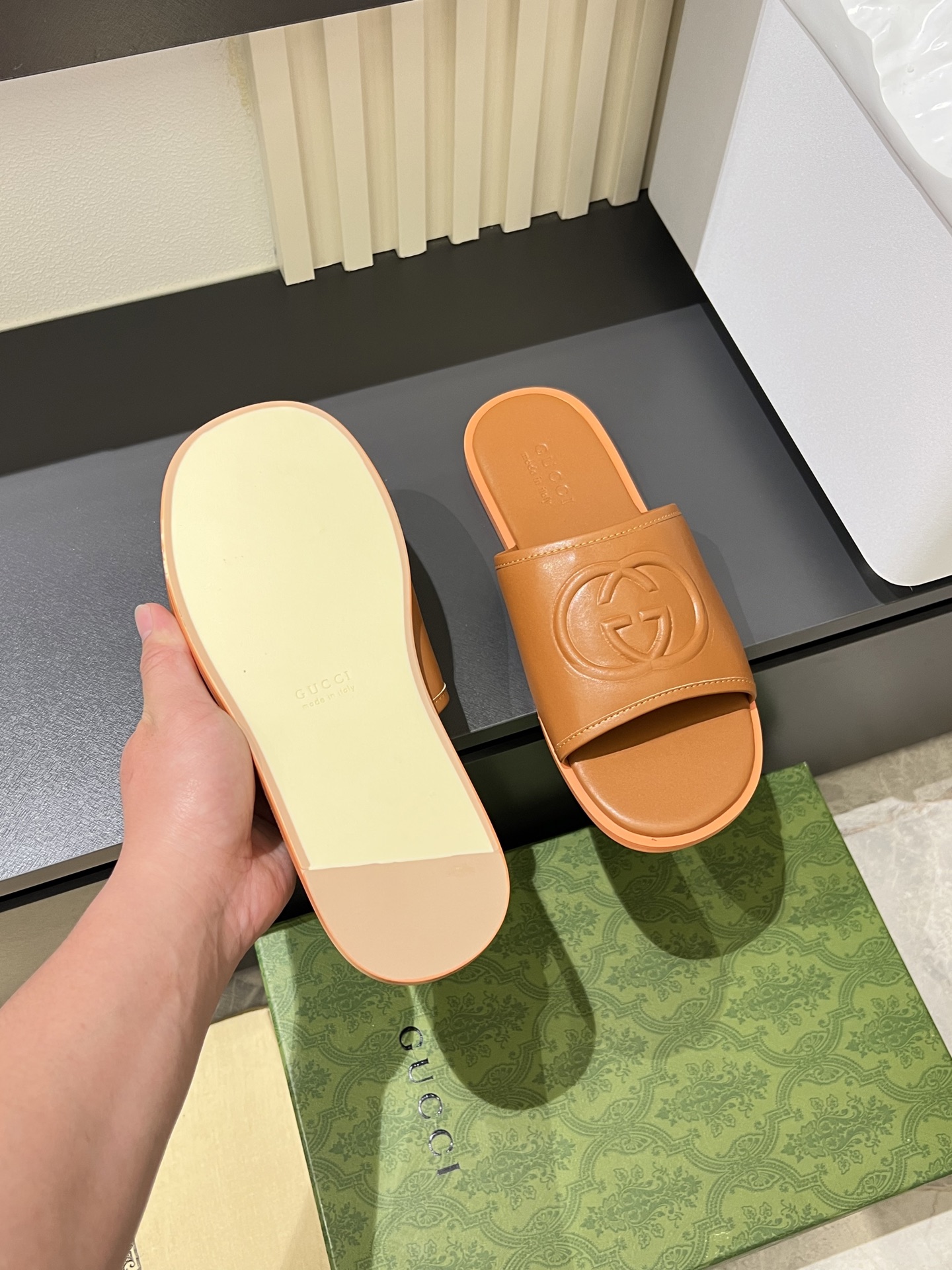 This shoes is AAAAA 1:1 quality (superb). Materials used are identical to the original ones. Gucci trademark marks are indistinguishable to the authentic. Photos take by actual shoes, what you receive will be 100% same with our photos.