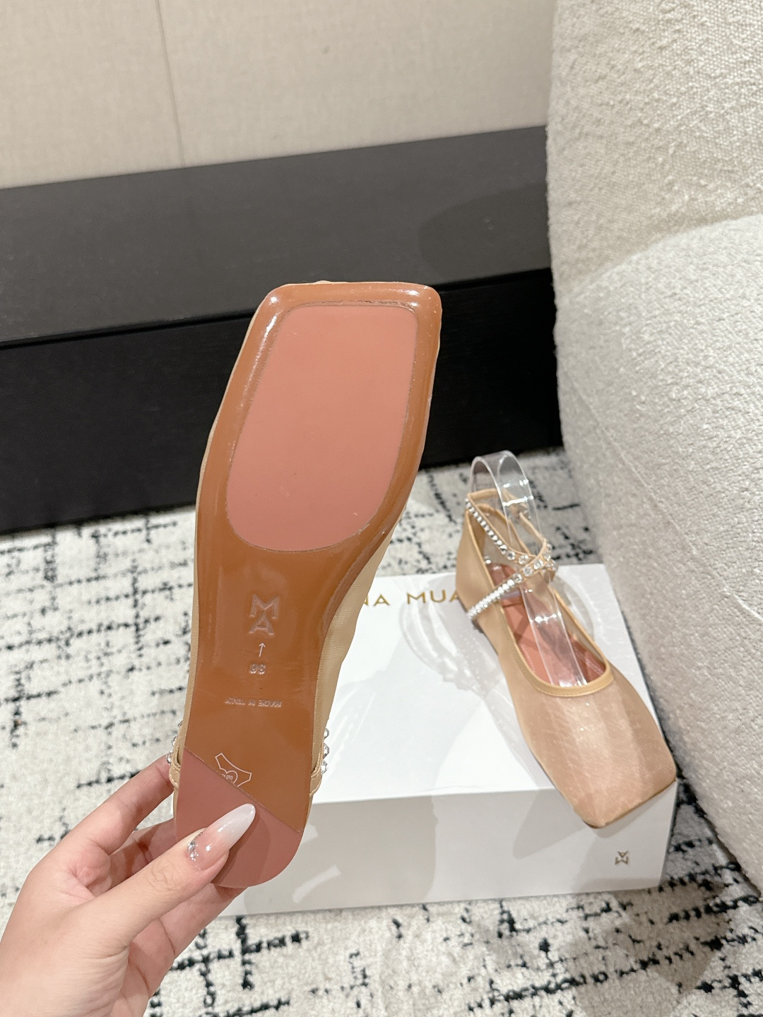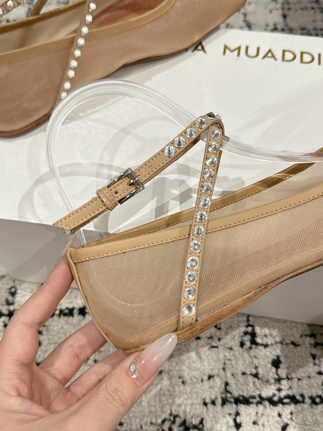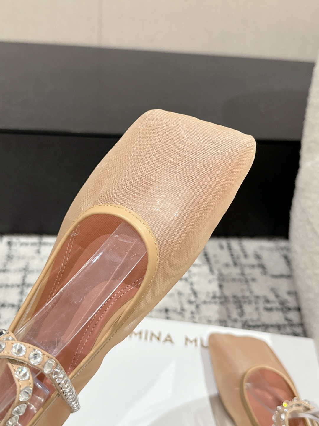 This shoes is AAAAA 1:1 quality (superb). Materials used are identical to the original ones. Amina Muaddi trademark marks are indistinguishable to the authentic. Photos take by actual shoes, what you receive will be 100% same with our photos.