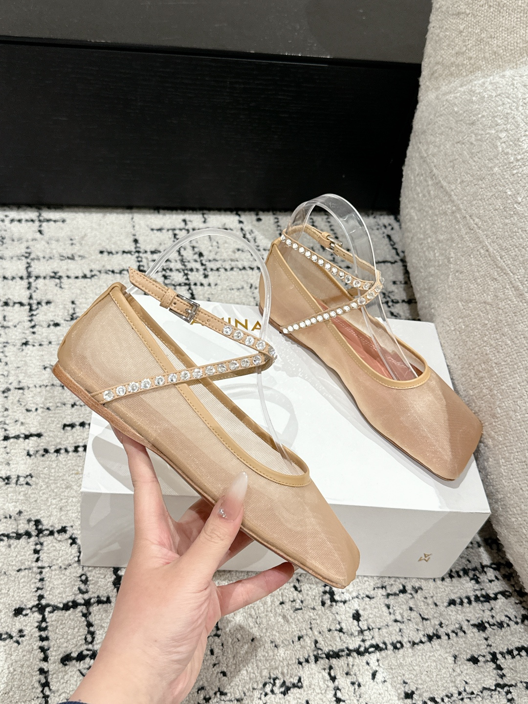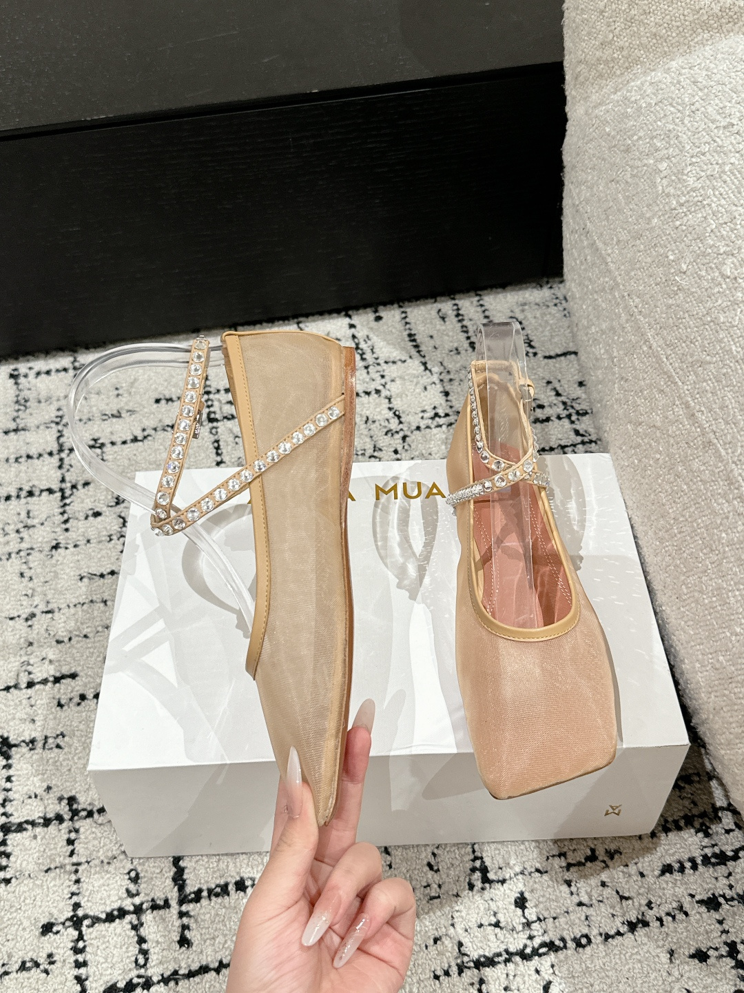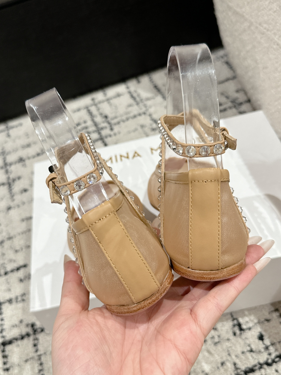 This shoes is AAAAA 1:1 quality (superb). Materials used are identical to the original ones. Amina Muaddi trademark marks are indistinguishable to the authentic. Photos take by actual shoes, what you receive will be 100% same with our photos.