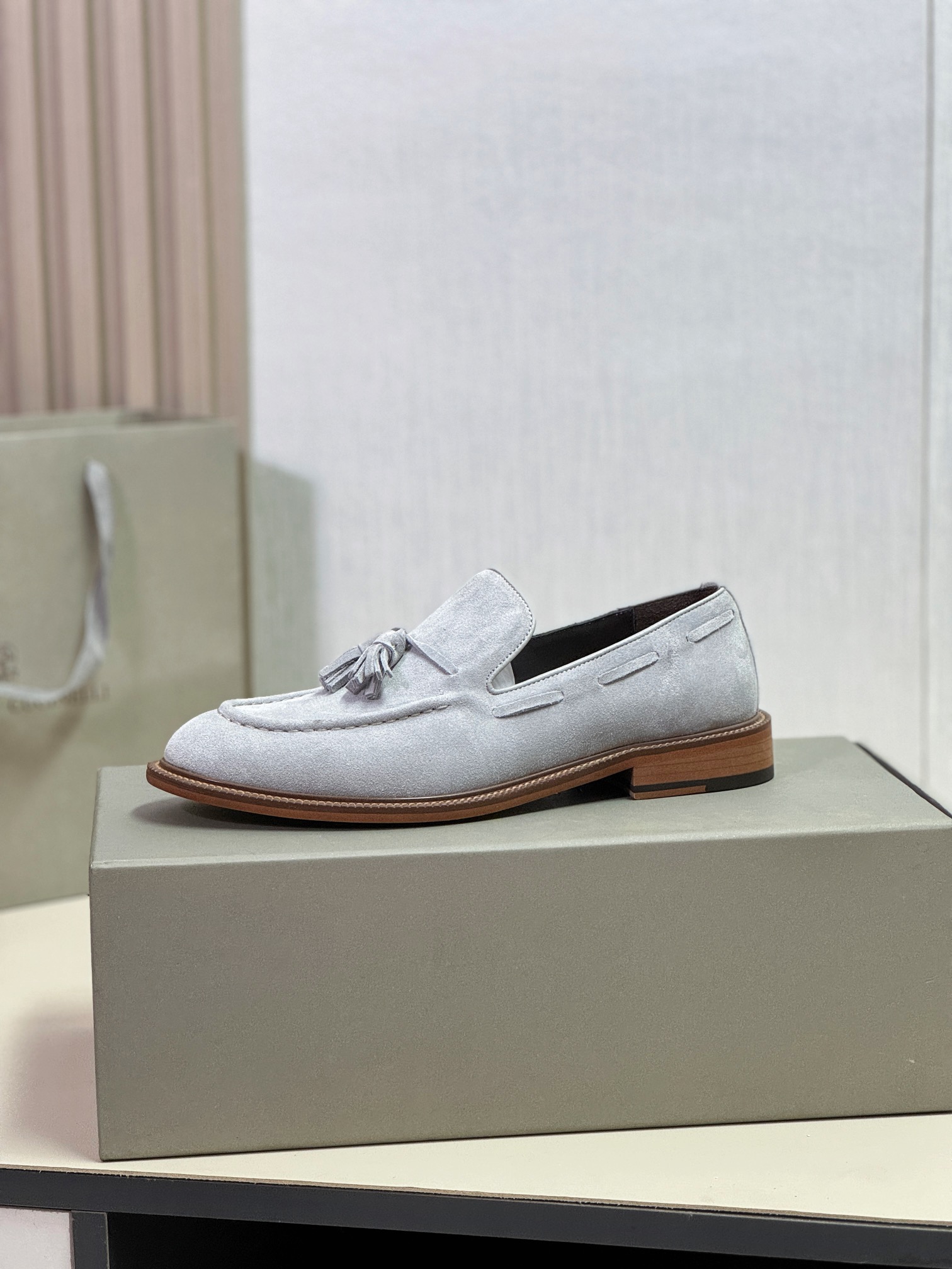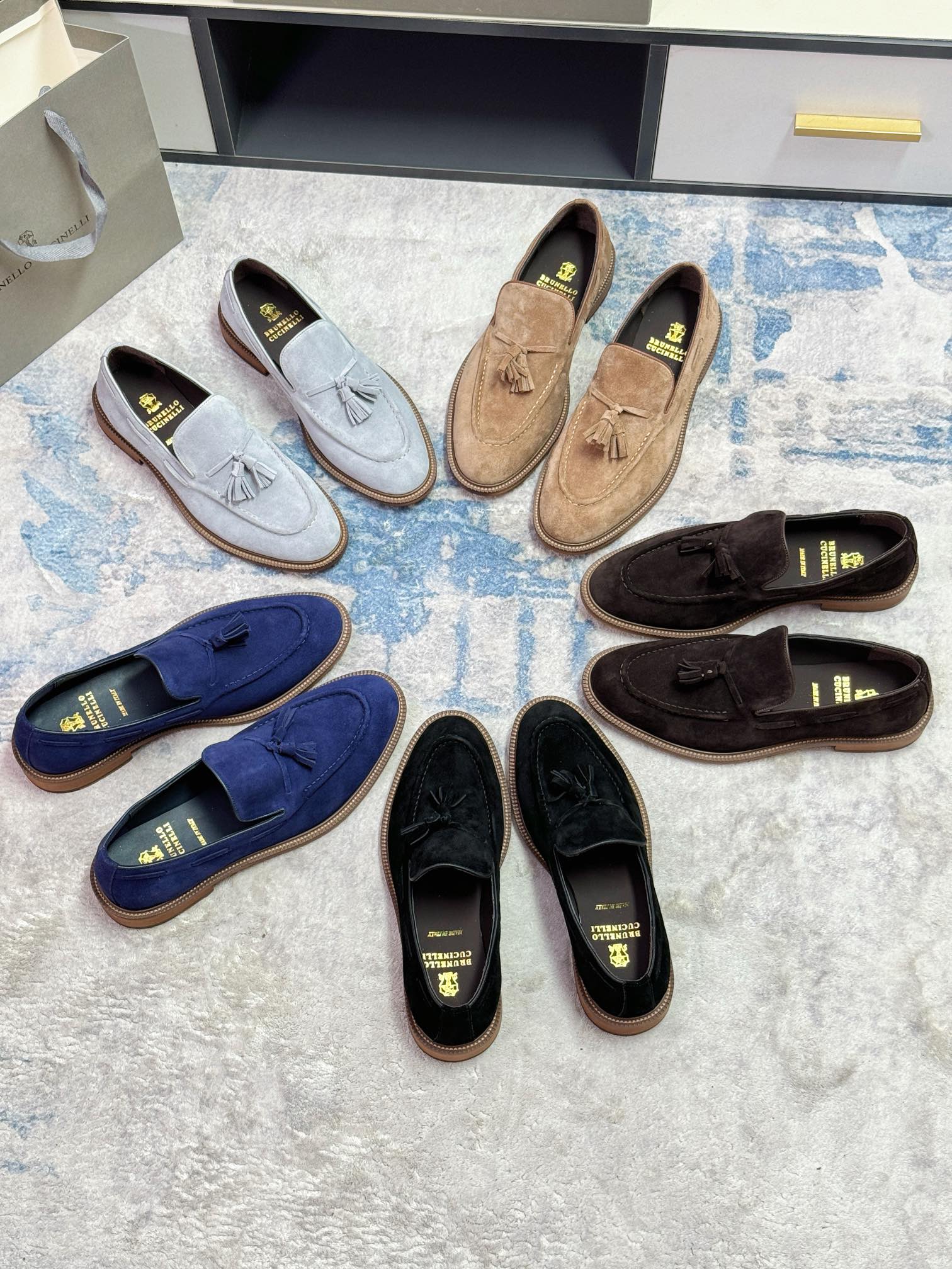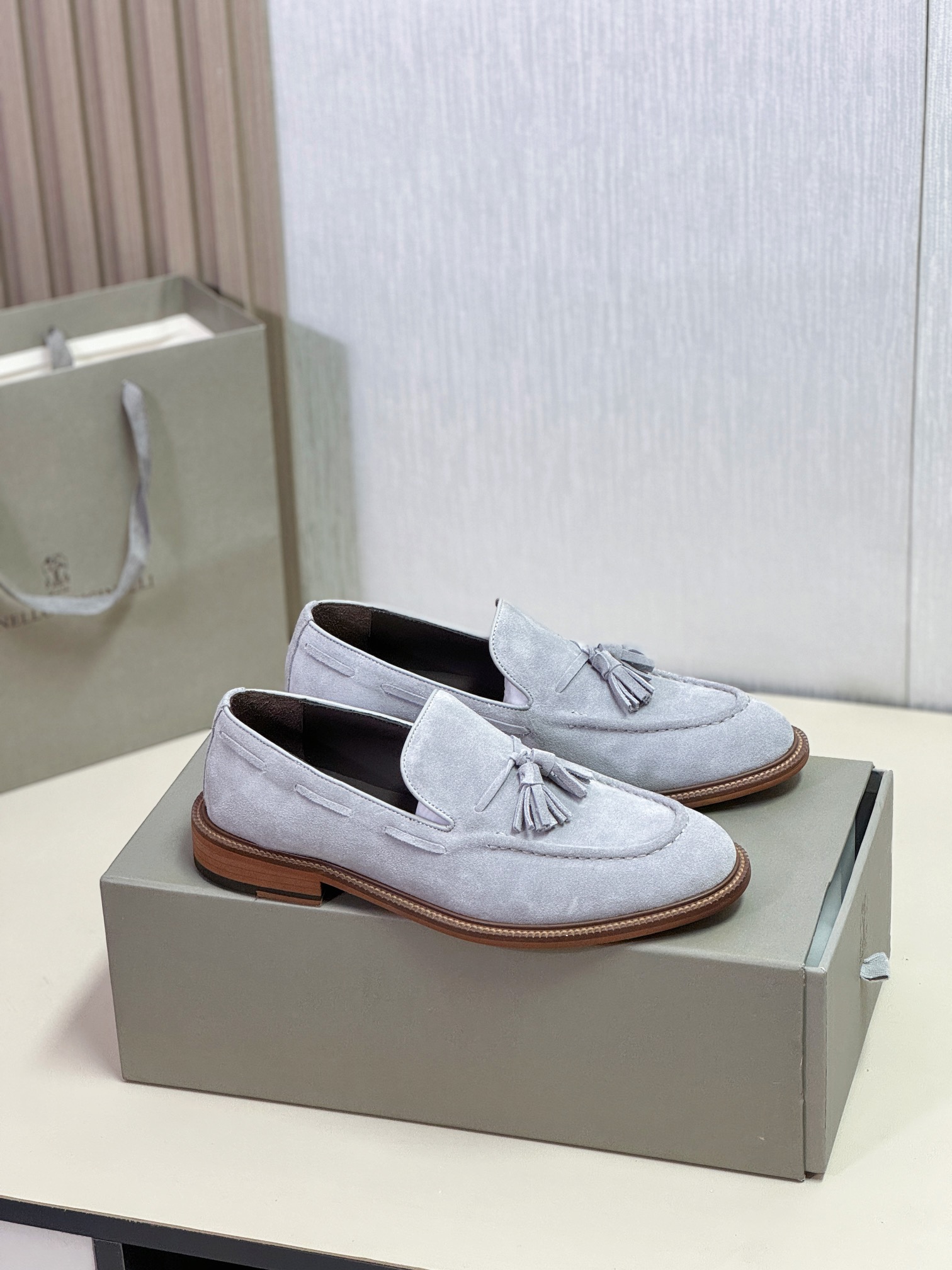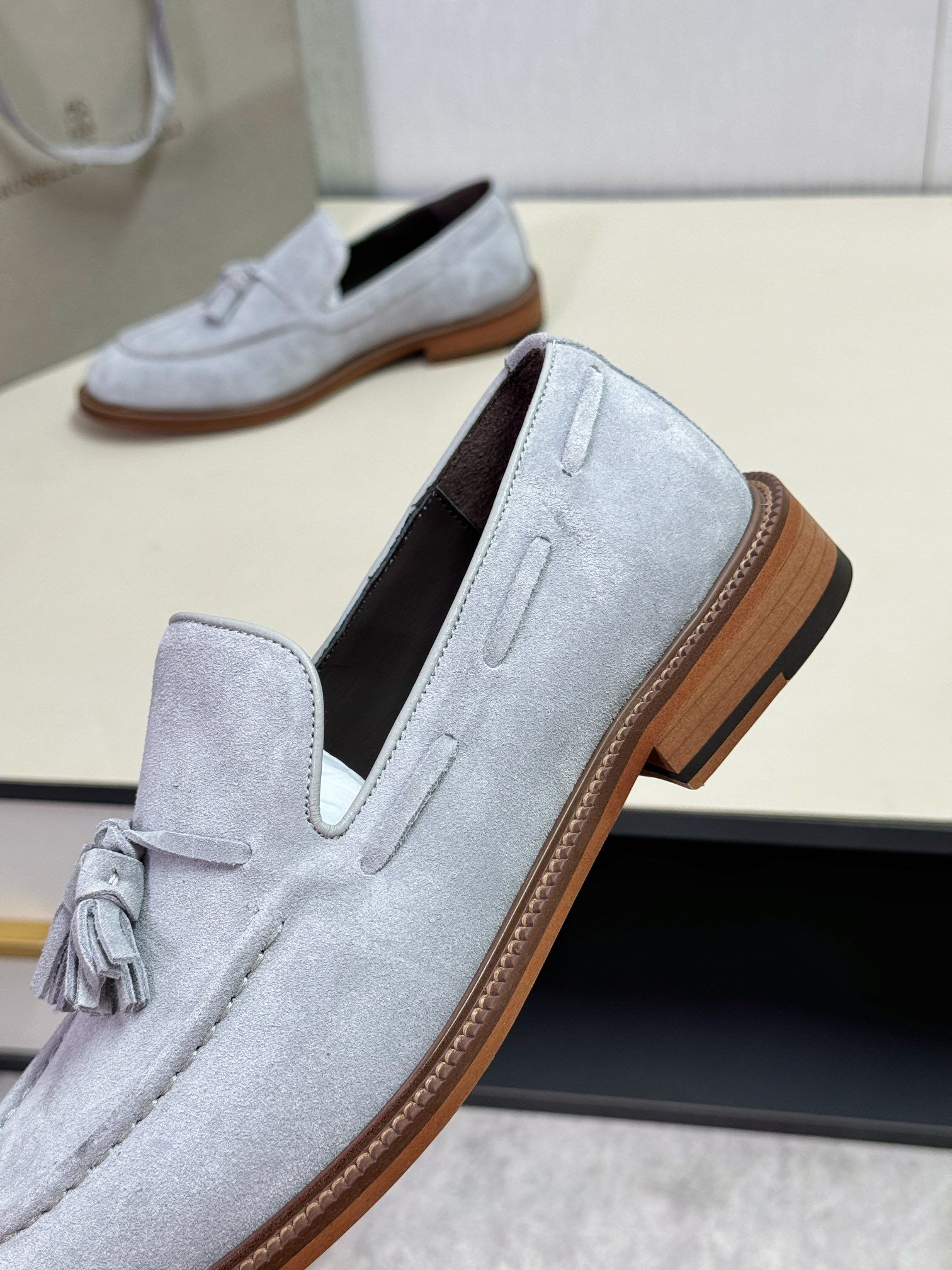 This shoes is AAAAA 1:1 quality (superb). Materials used are identical to the original ones. Brunello Cucinelli trademark marks are indistinguishable to the authentic. Photos take by actual shoes, what you receive will be 100% same with our photos.