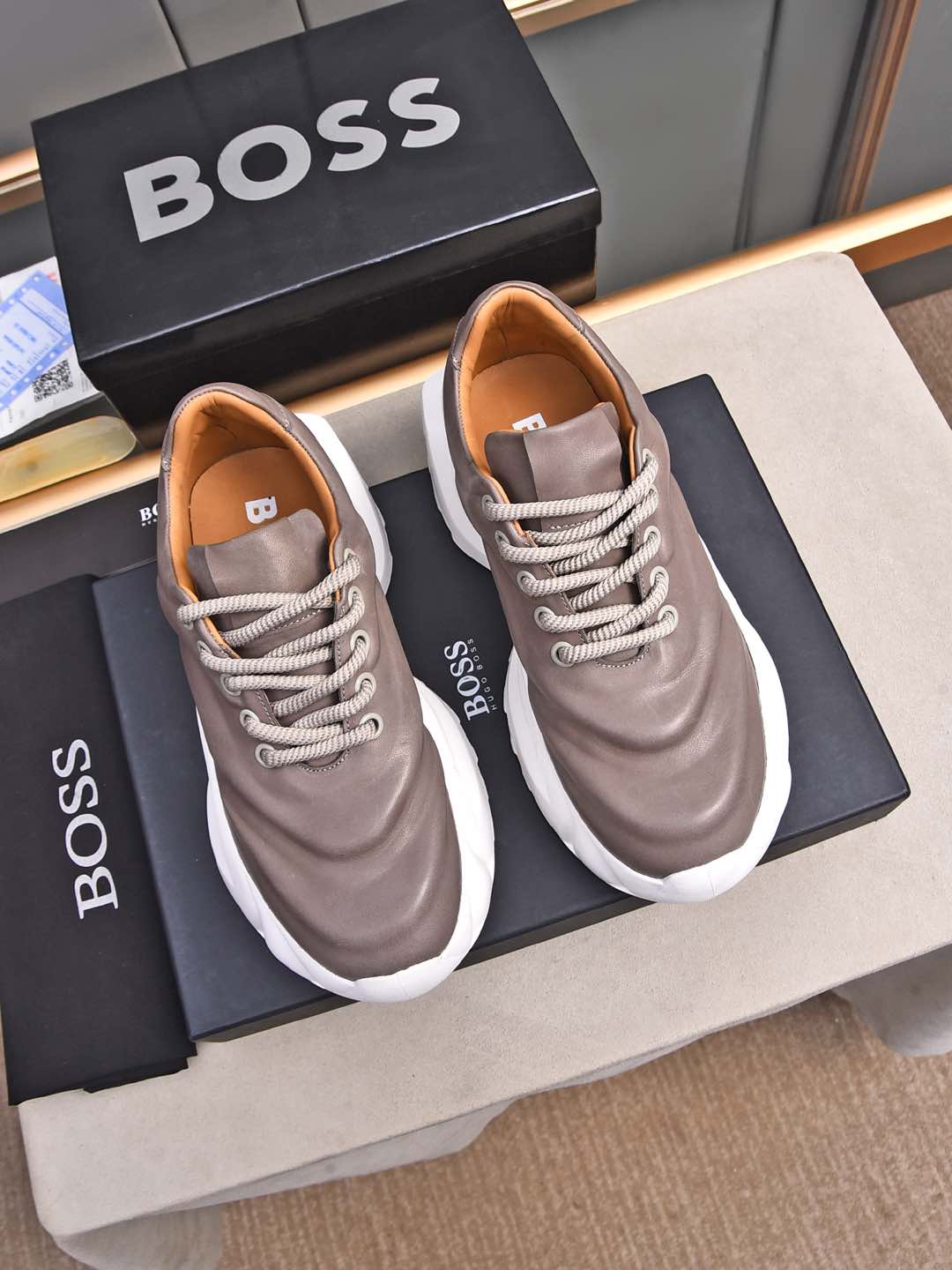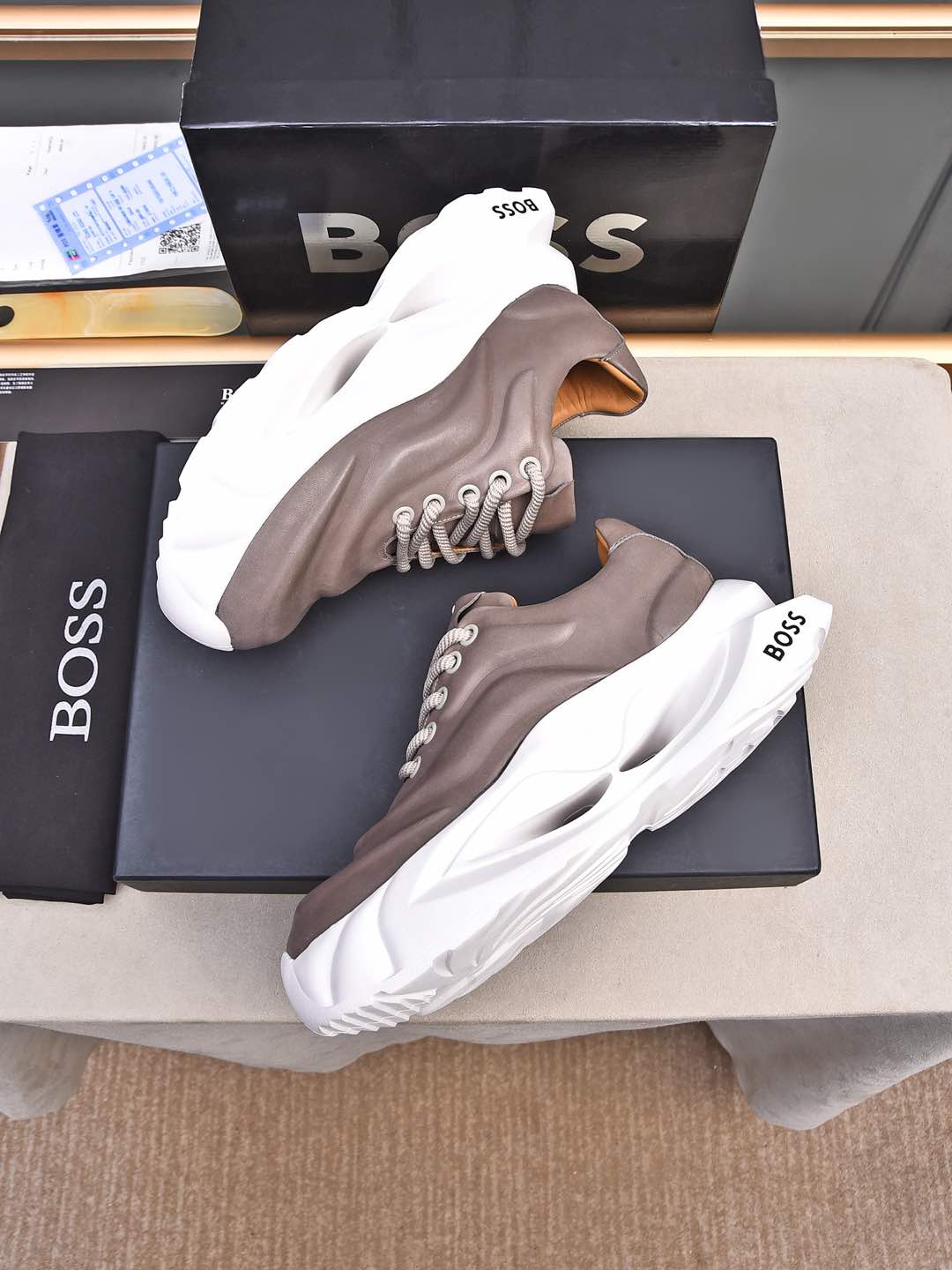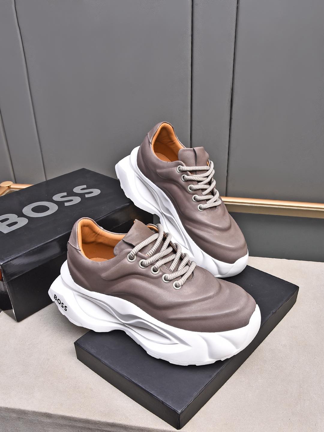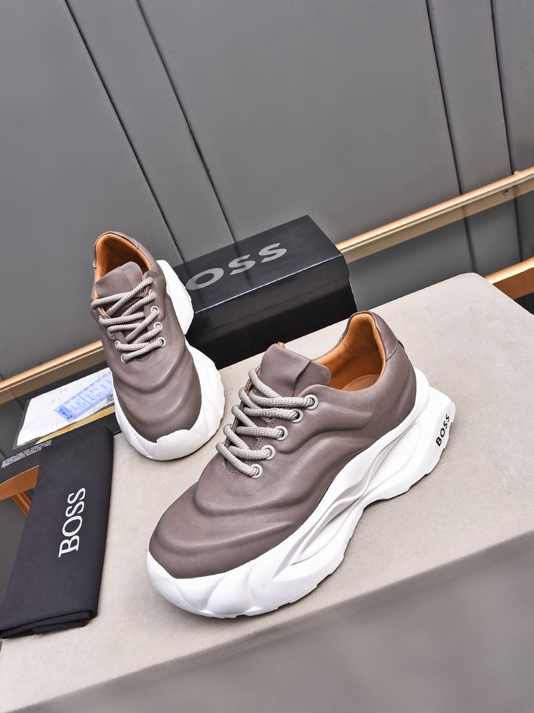 This shoes is AAAAA 1:1 quality (superb). Materials used are identical to the original ones. BOSS trademark marks are indistinguishable to the authentic. Photos take by actual shoes, what you receive will be 100% same with our photos.