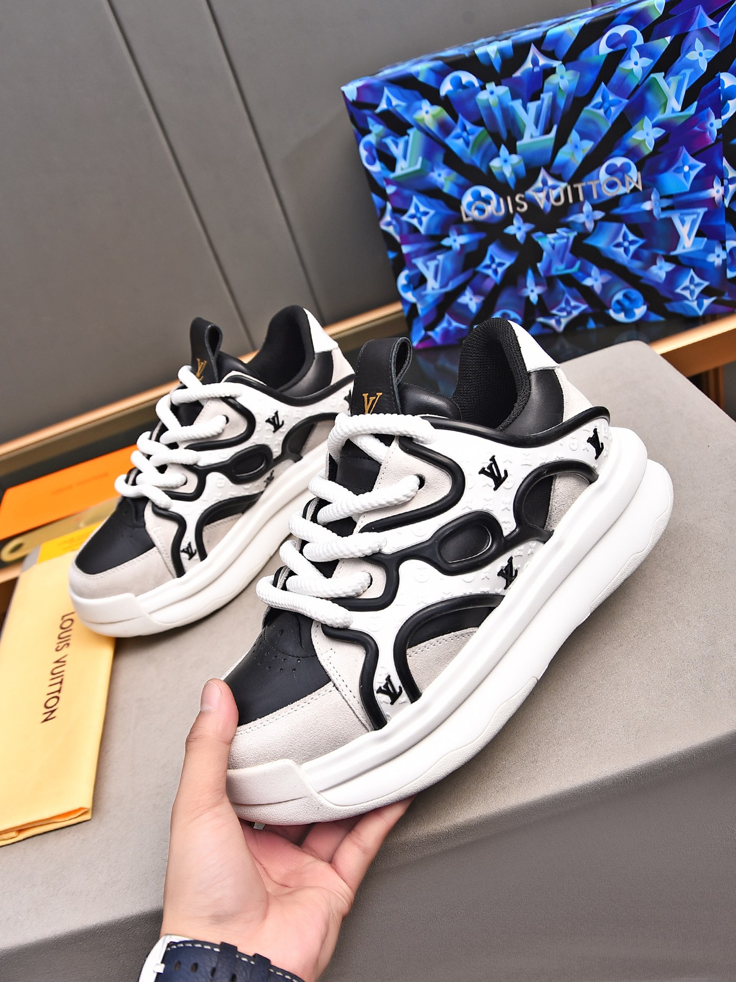 This shoes is AAAAA 1:1 quality (superb). Materials used are identical to the original ones. Louis Vuitton trademark marks are indistinguishable to the authentic. Photos take by actual shoes, what you receive will be 100% same with our photos.