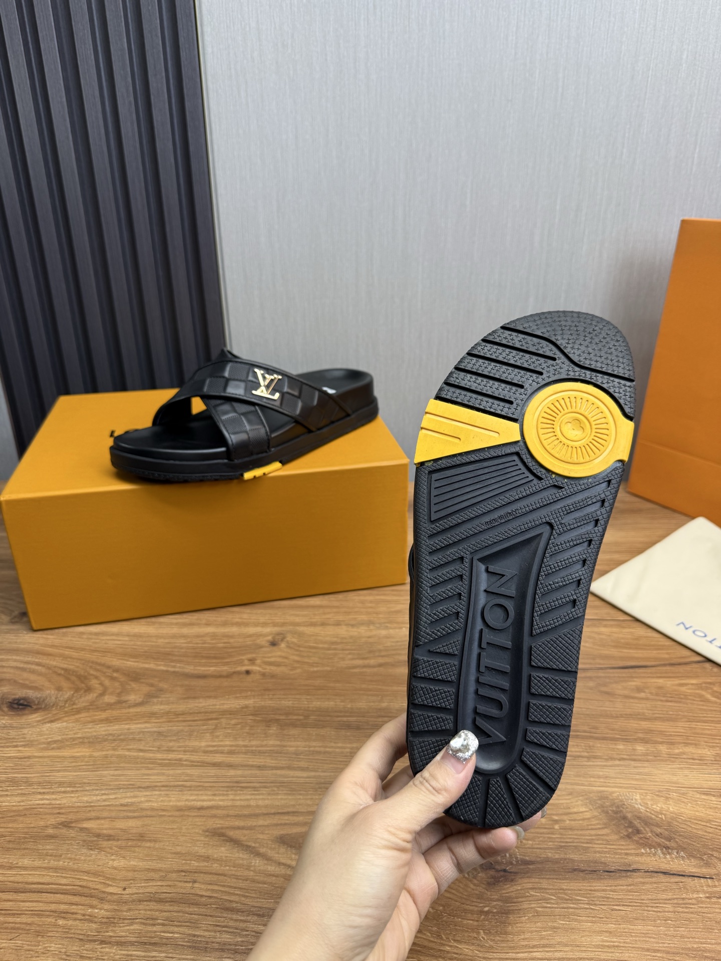 This shoes is AAAAA 1:1 quality (superb). Materials used are identical to the original ones. Louis Vuitton trademark marks are indistinguishable to the authentic. Photos take by actual shoes, what you receive will be 100% same with our photos.