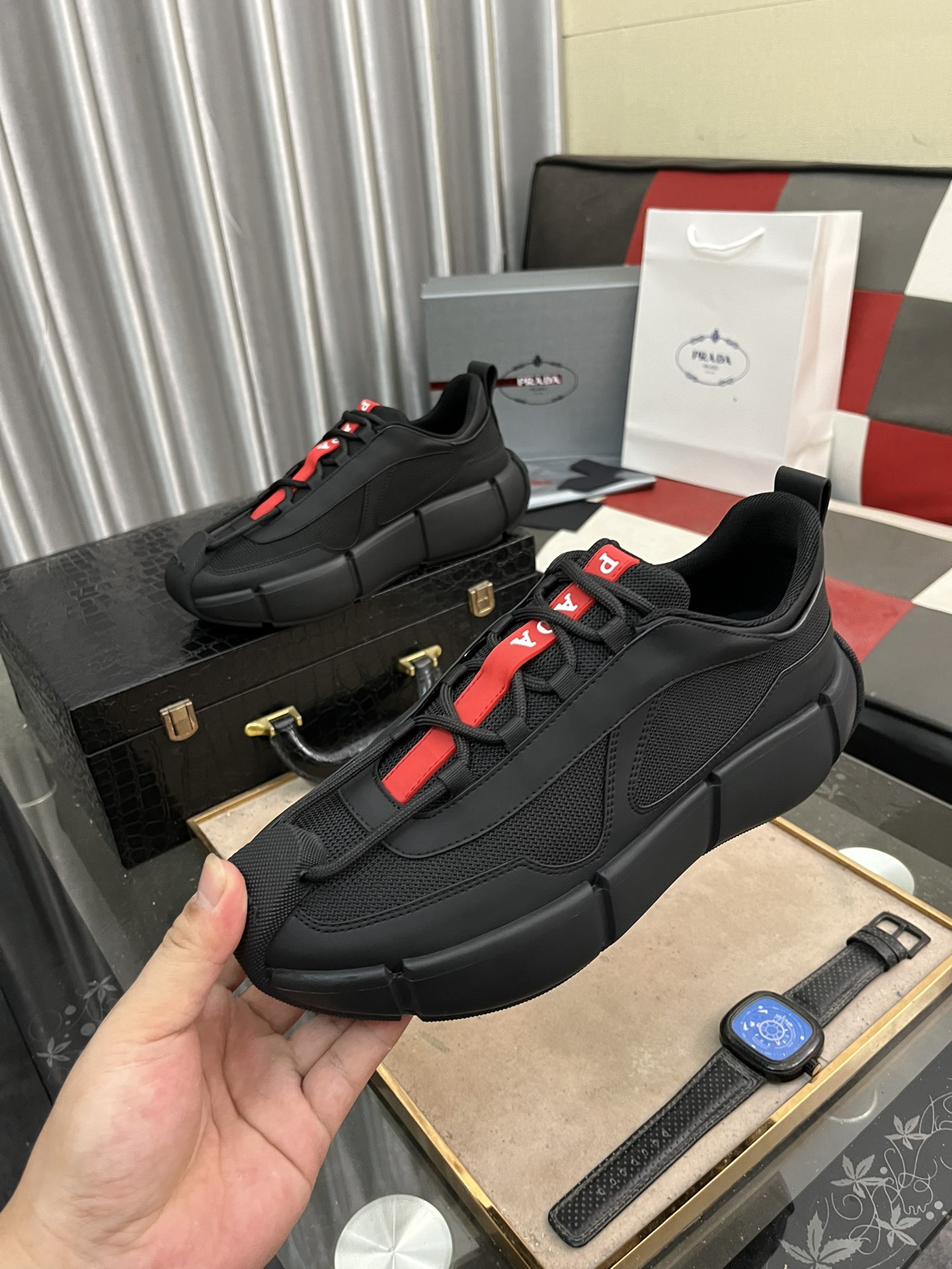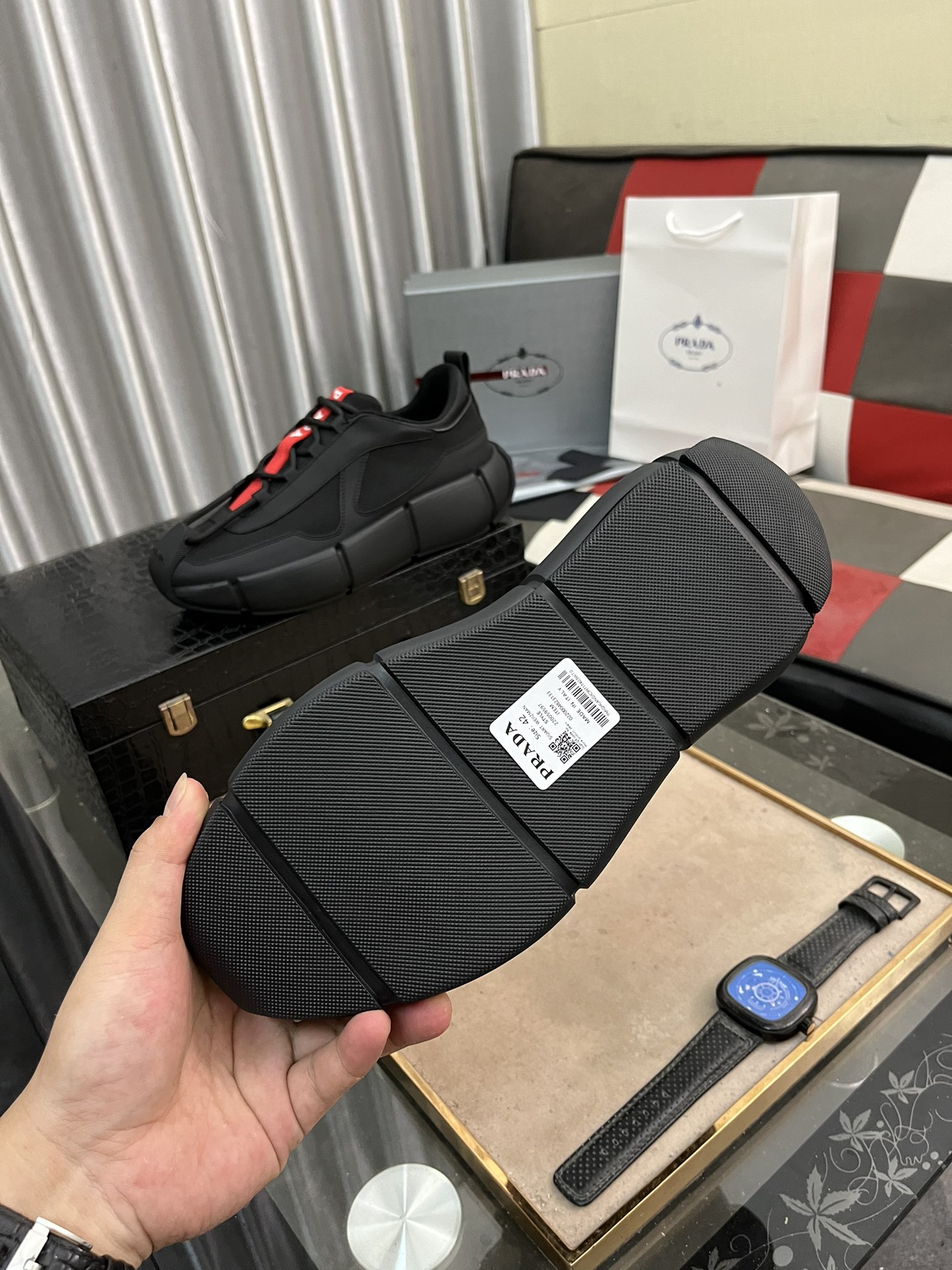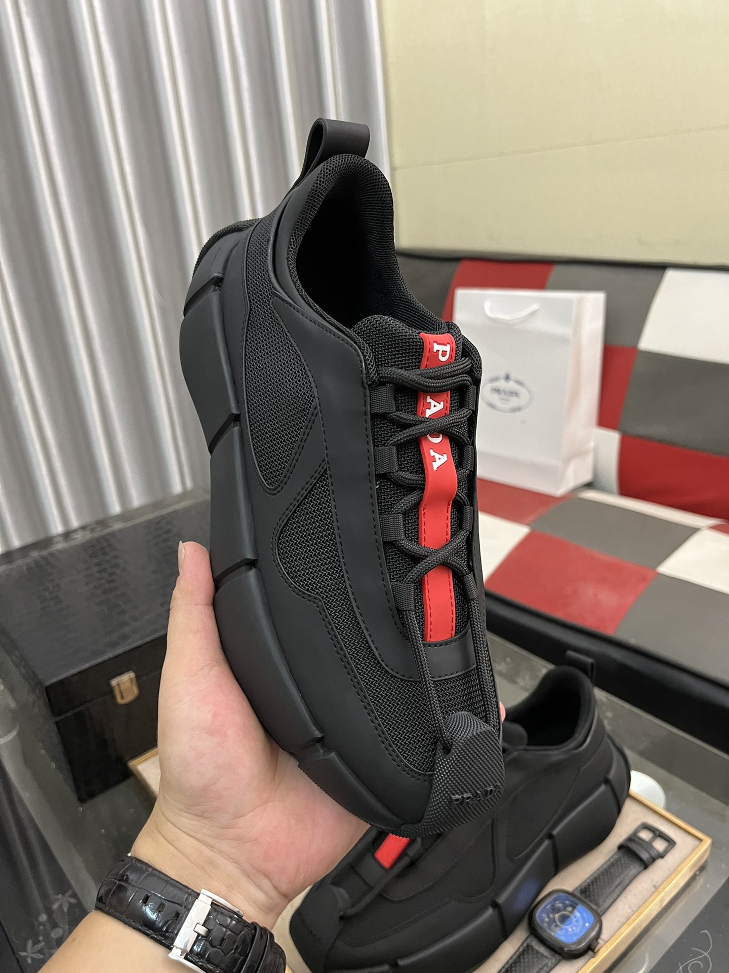 This shoes is AAAAA 1:1 quality (superb). Materials used are identical to the original ones. Prada trademark marks are indistinguishable to the authentic. Photos take by actual shoes, what you receive will be 100% same with our photos.