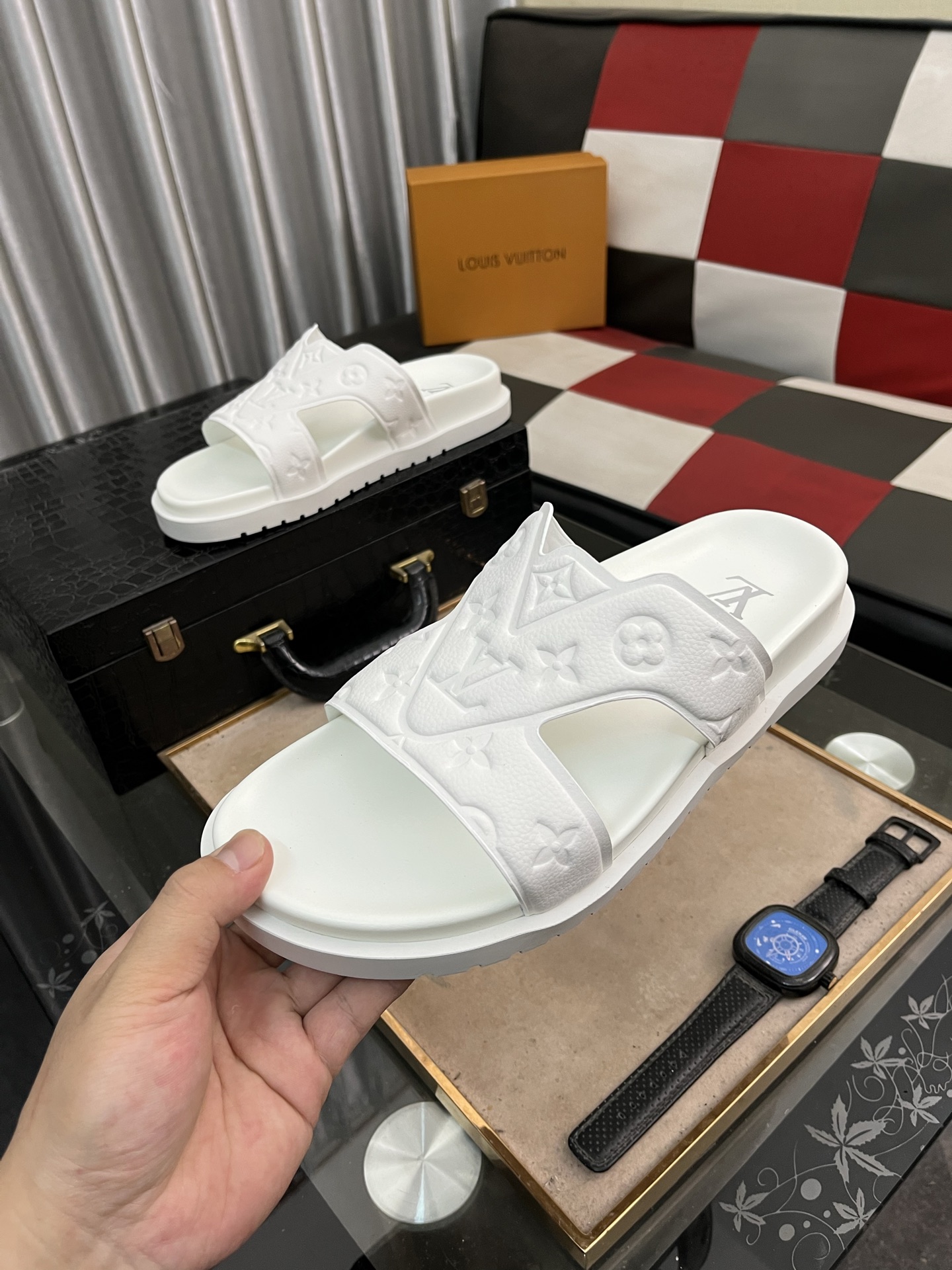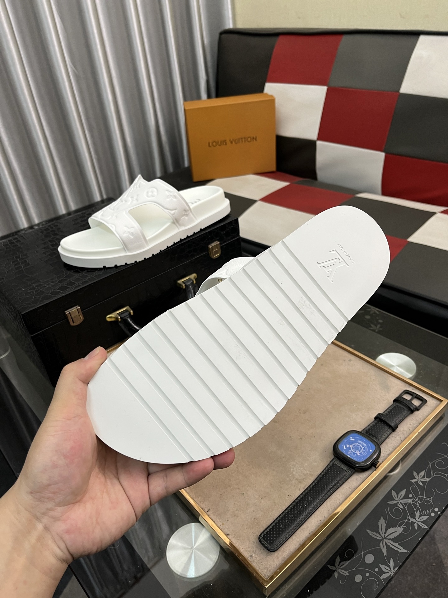 This shoes is AAAAA 1:1 quality (superb). Materials used are identical to the original ones. Louis Vuitton trademark marks are indistinguishable to the authentic. Photos take by actual shoes, what you receive will be 100% same with our photos.