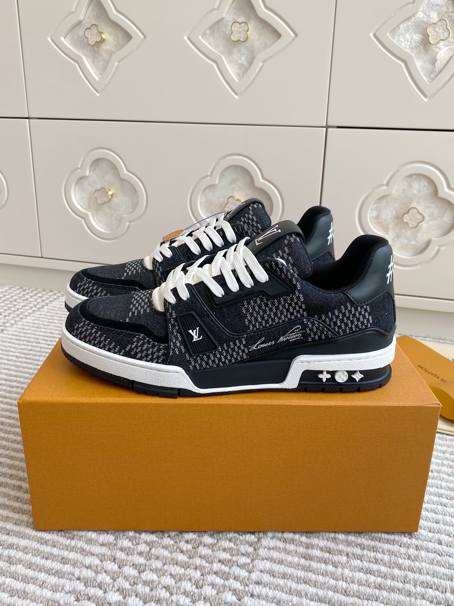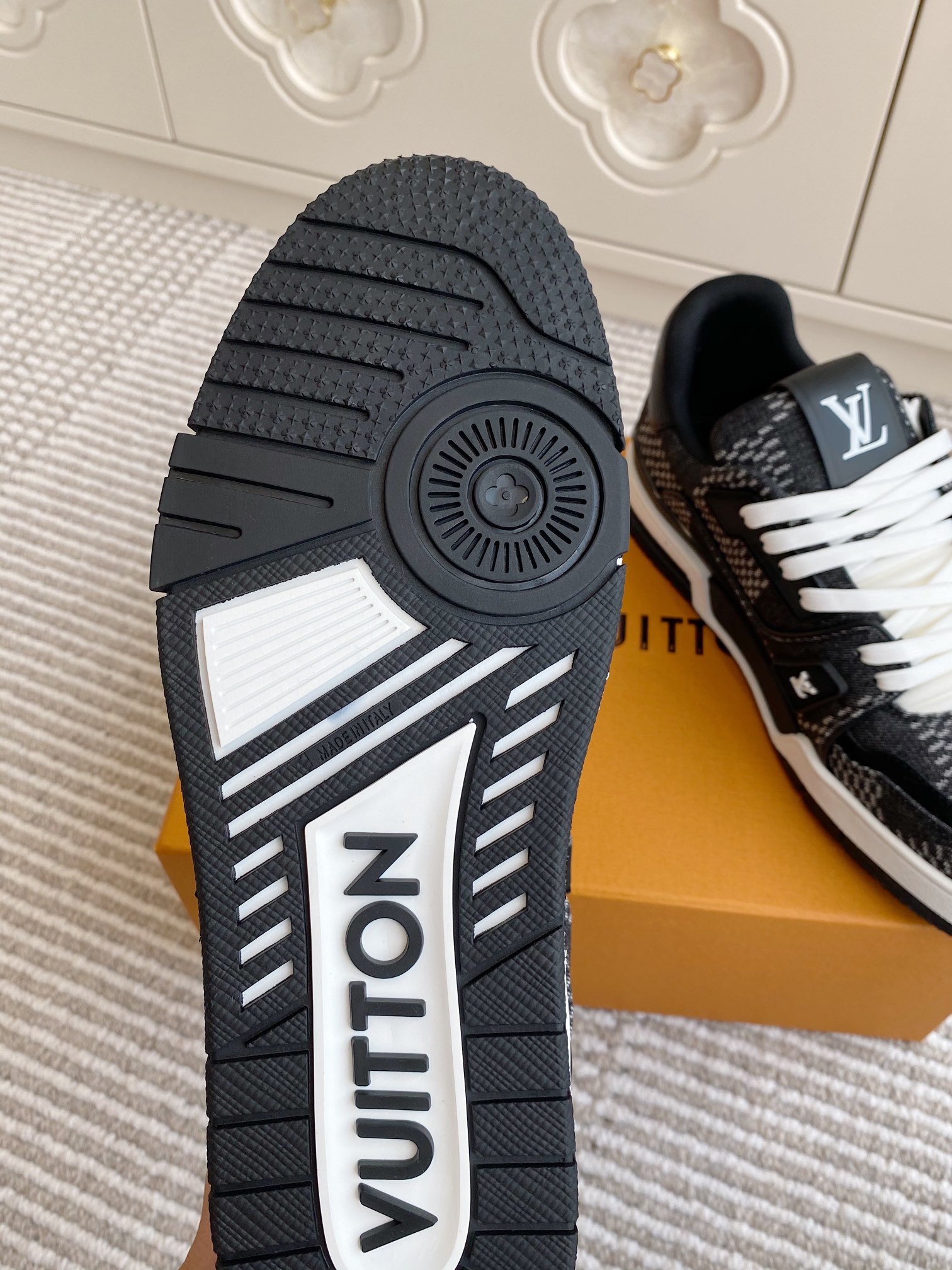 This shoes is AAAAA 1:1 quality (superb). Materials used are identical to the original ones. Louis Vuitton trademark marks are indistinguishable to the authentic. Photos take by actual shoes, what you receive will be 100% same with our photos.