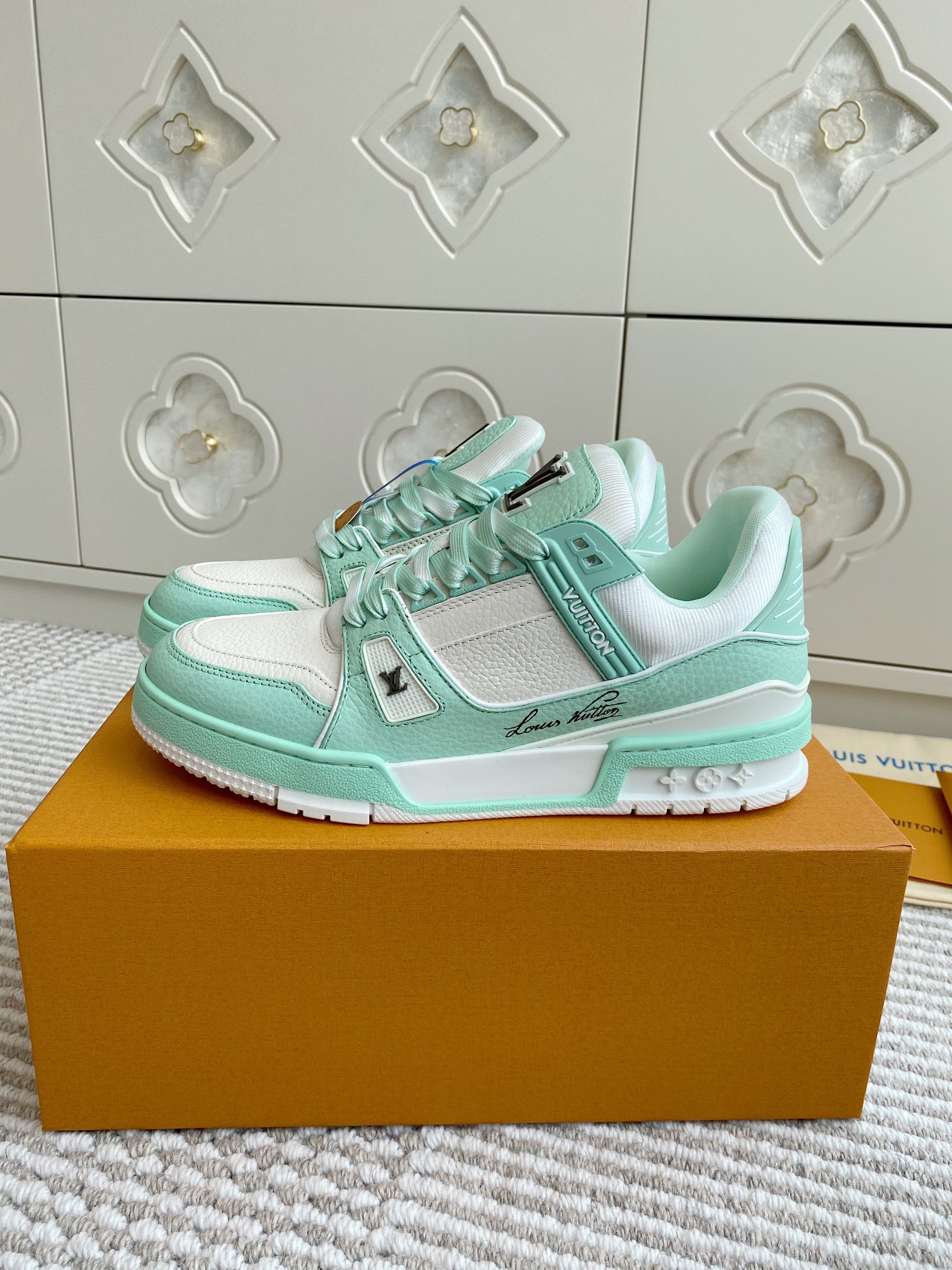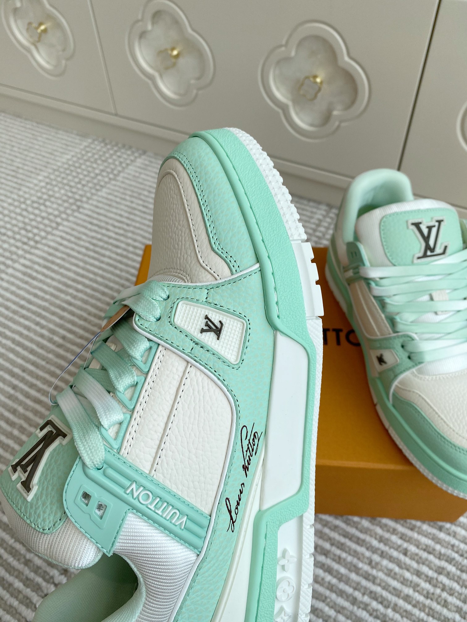 This shoes is AAAAA 1:1 quality (superb). Materials used are identical to the original ones. Louis Vuitton trademark marks are indistinguishable to the authentic. Photos take by actual shoes, what you receive will be 100% same with our photos.
