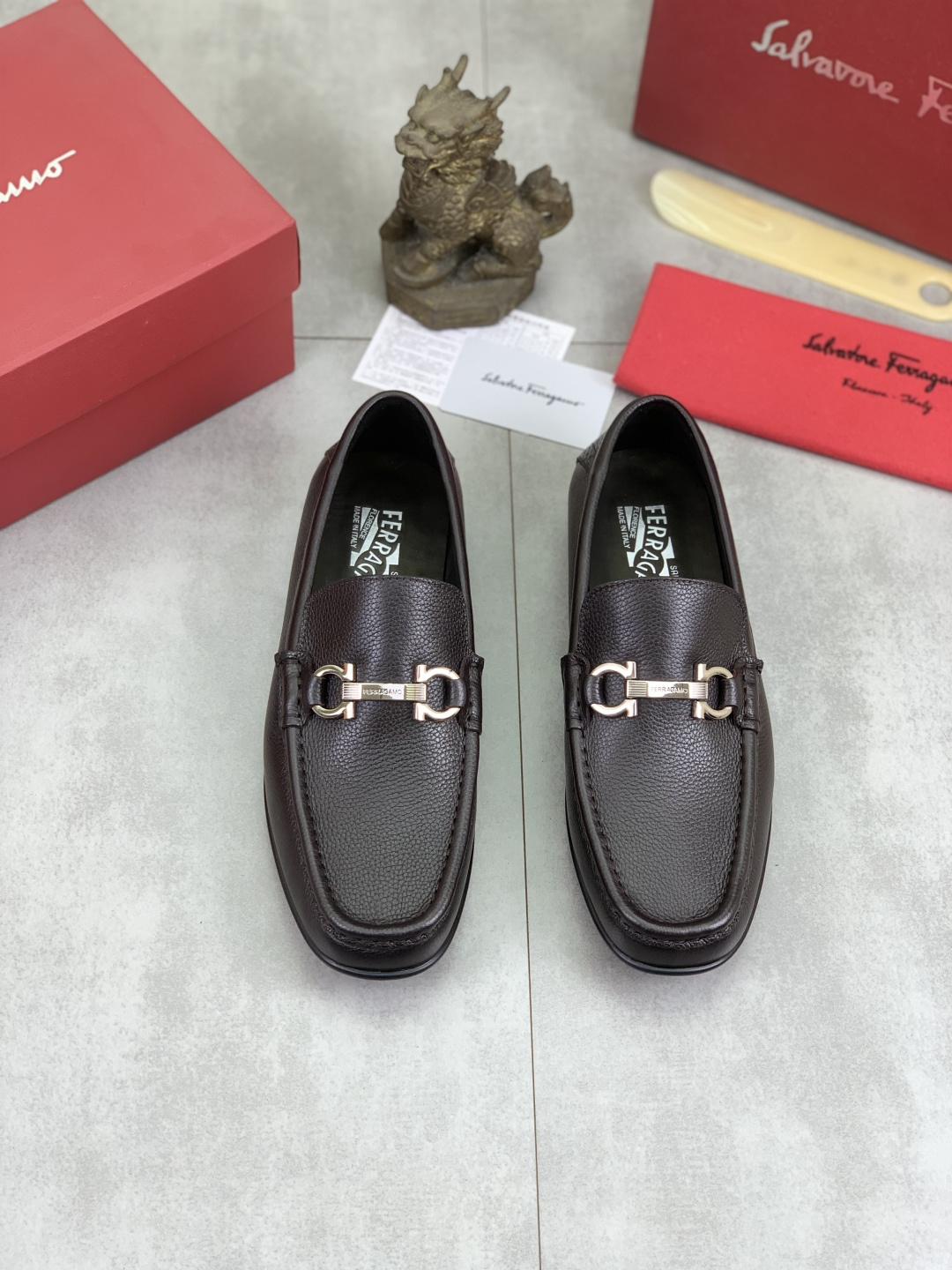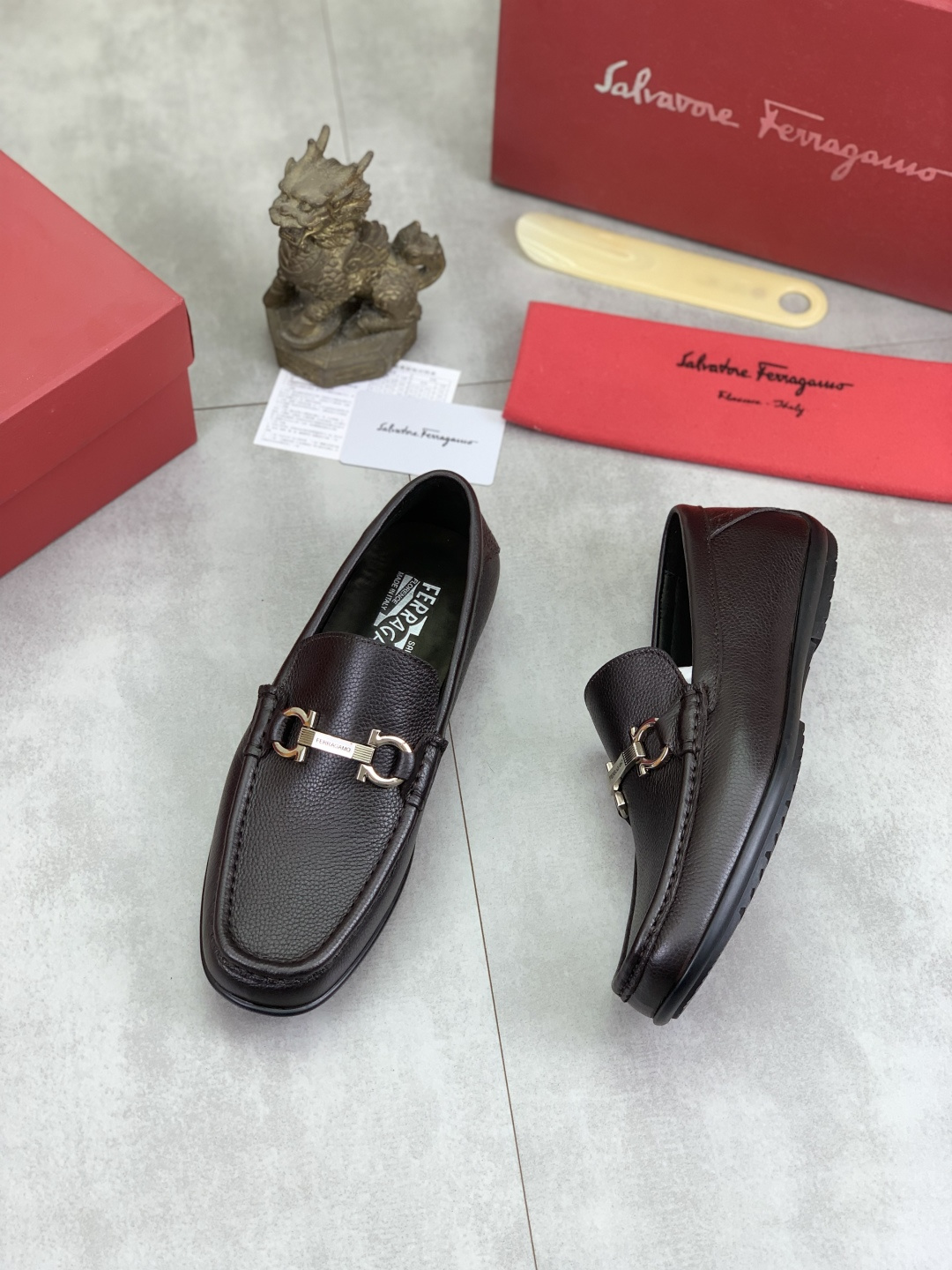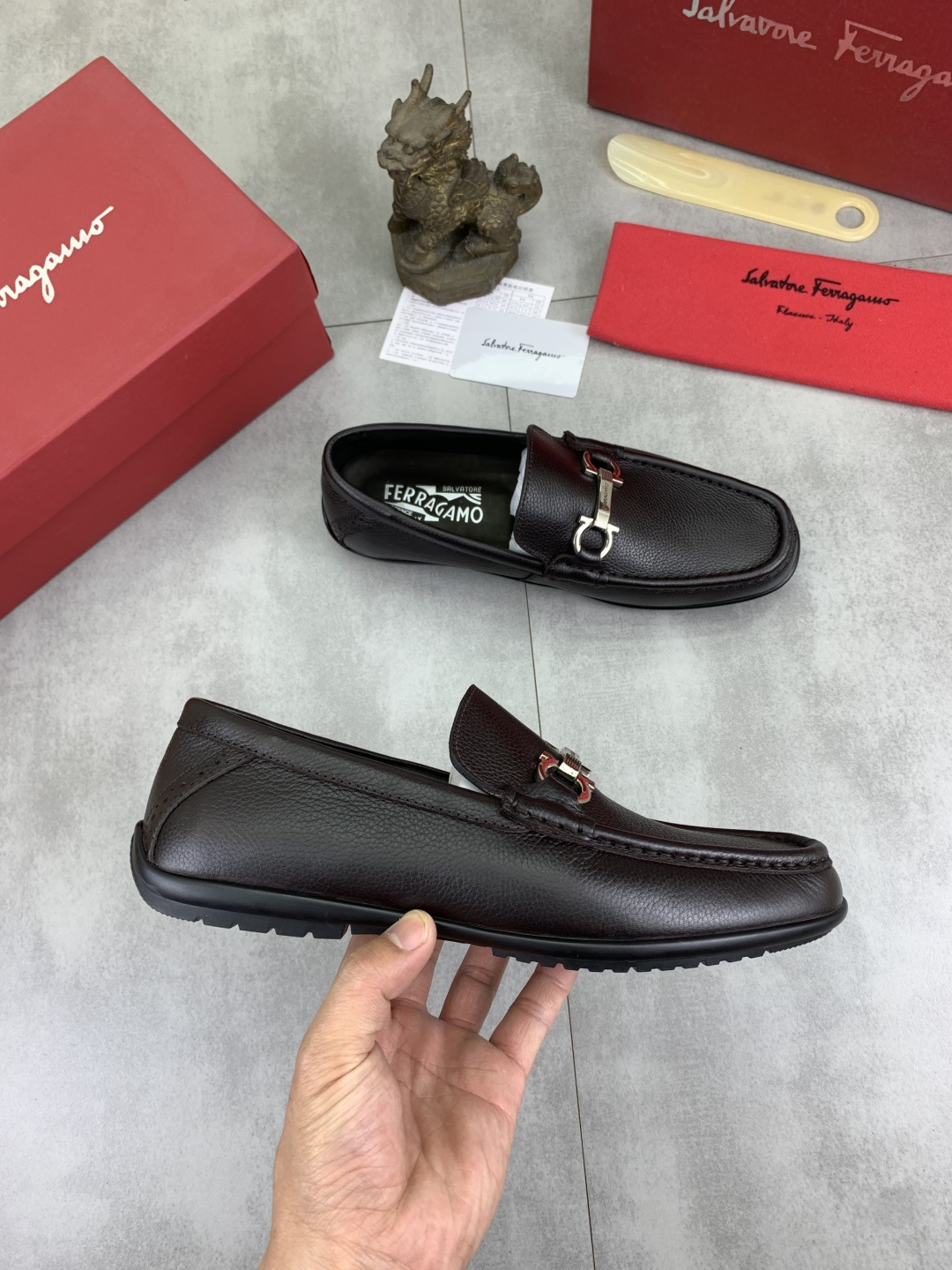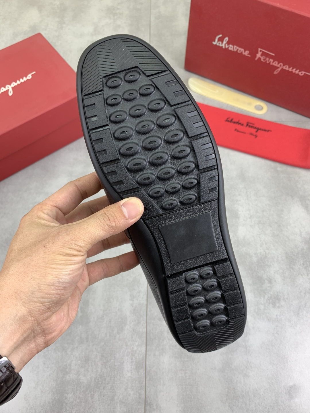 This shoes is AAAAA 1:1 quality (superb). Materials used are identical to the original ones. Salvatore Ferragamo trademark marks are indistinguishable to the authentic. Photos take by actual shoes, what you receive will be 100% same with our photos.