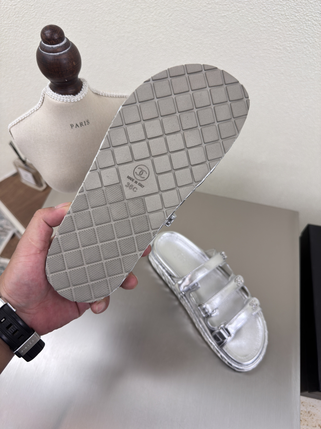 This shoes is AAAAA 1:1 quality (superb). Materials used are identical to the original ones. Chanel trademark marks are indistinguishable to the authentic. Photos take by actual shoes, what you receive will be 100% same with our photos.