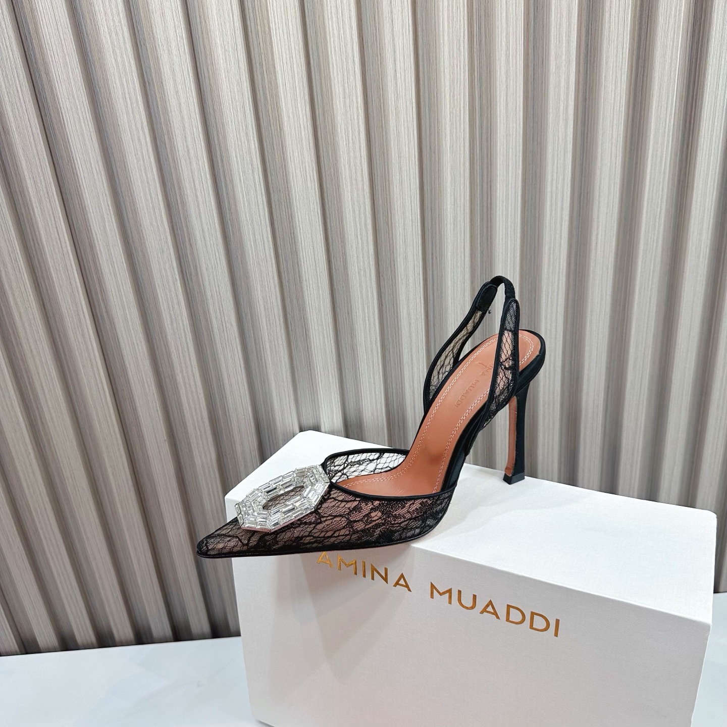 This shoes is AAAAA 1:1 quality (superb). Materials used are identical to the original ones. Amina Muaddi trademark marks are indistinguishable to the authentic. Photos take by actual shoes, what you receive will be 100% same with our photos.