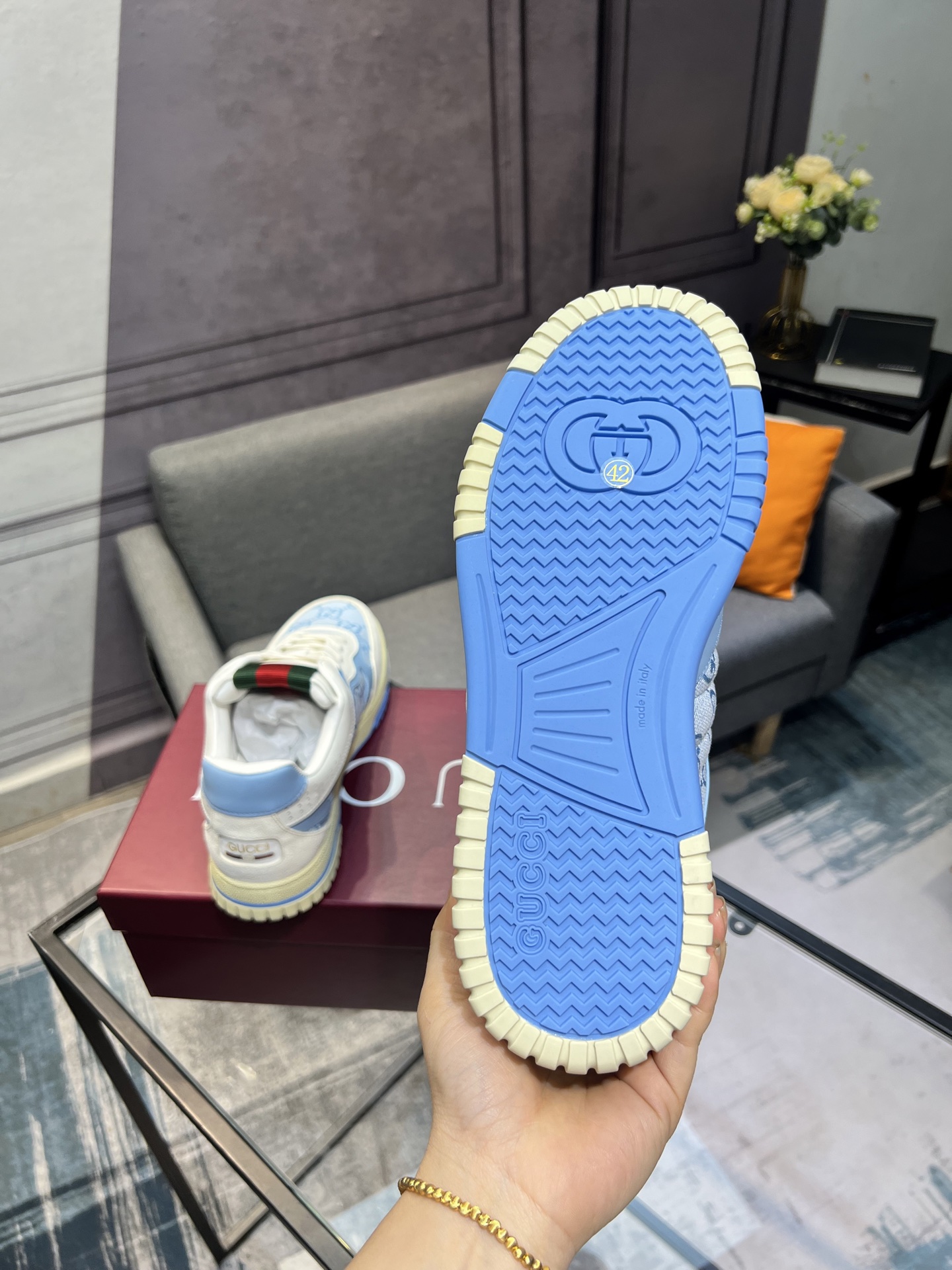 This shoes is AAAAA 1:1 quality (superb). Materials used are identical to the original ones. Gucci trademark marks are indistinguishable to the authentic. Photos take by actual shoes, what you receive will be 100% same with our photos.