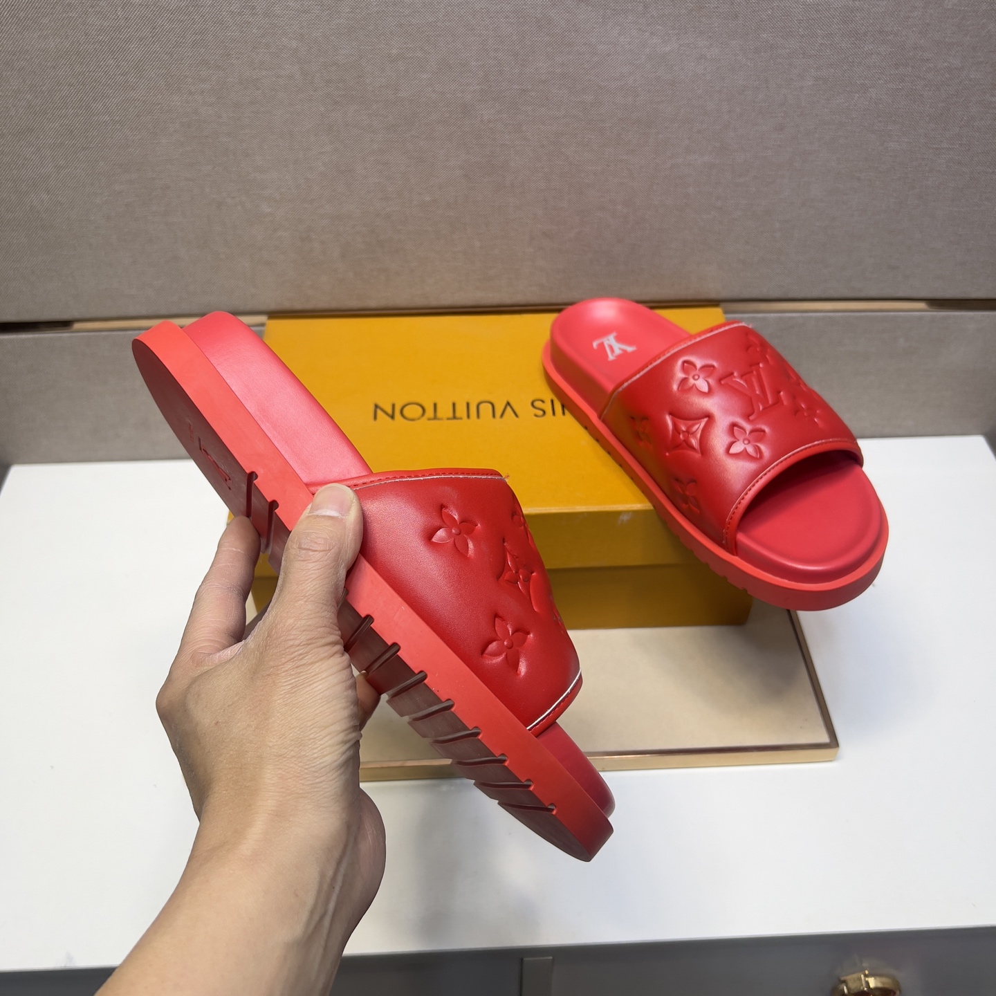 This shoes is AAAAA 1:1 quality (superb). Materials used are identical to the original ones. Louis Vuitton trademark marks are indistinguishable to the authentic. Photos take by actual shoes, what you receive will be 100% same with our photos.