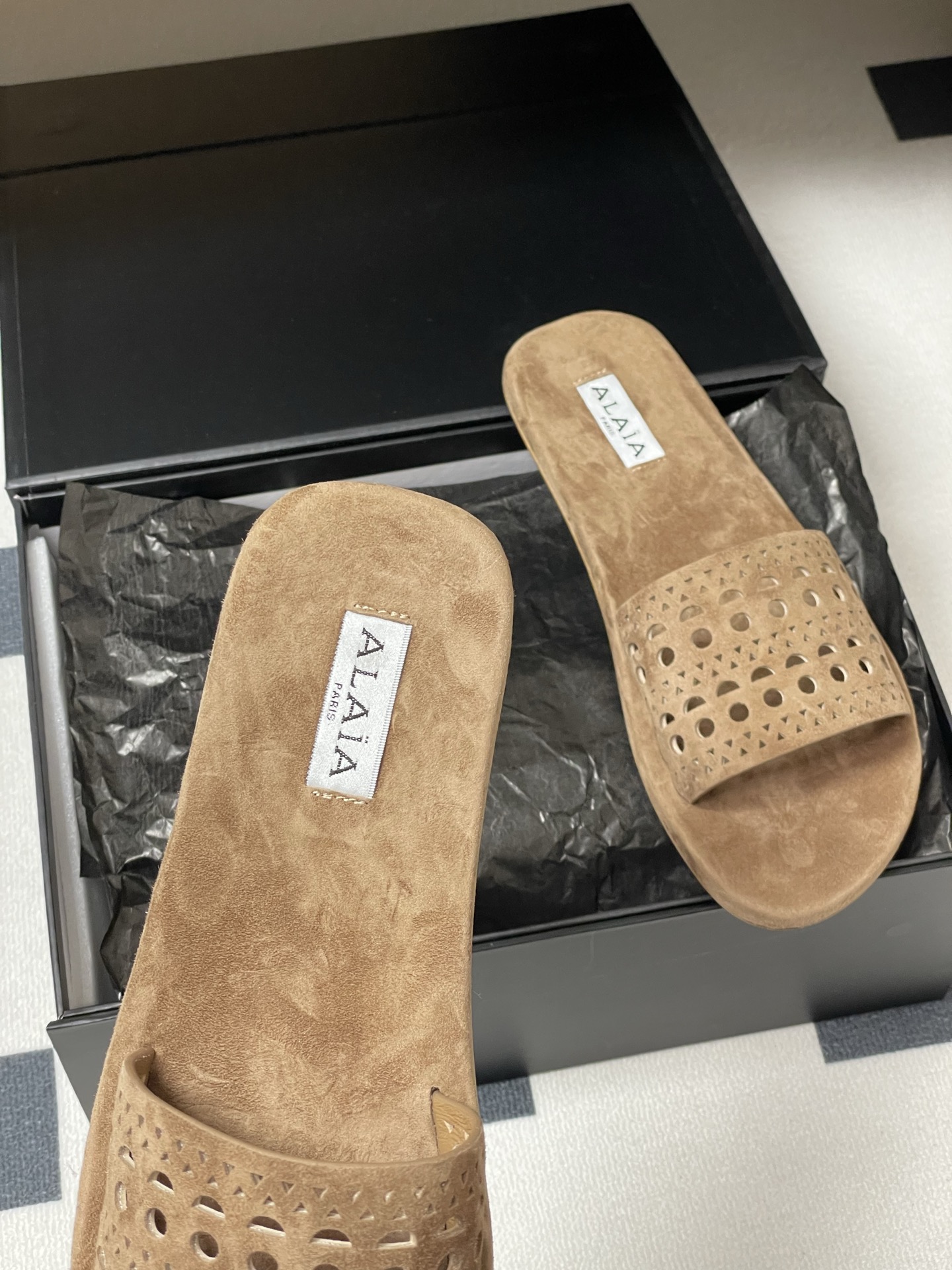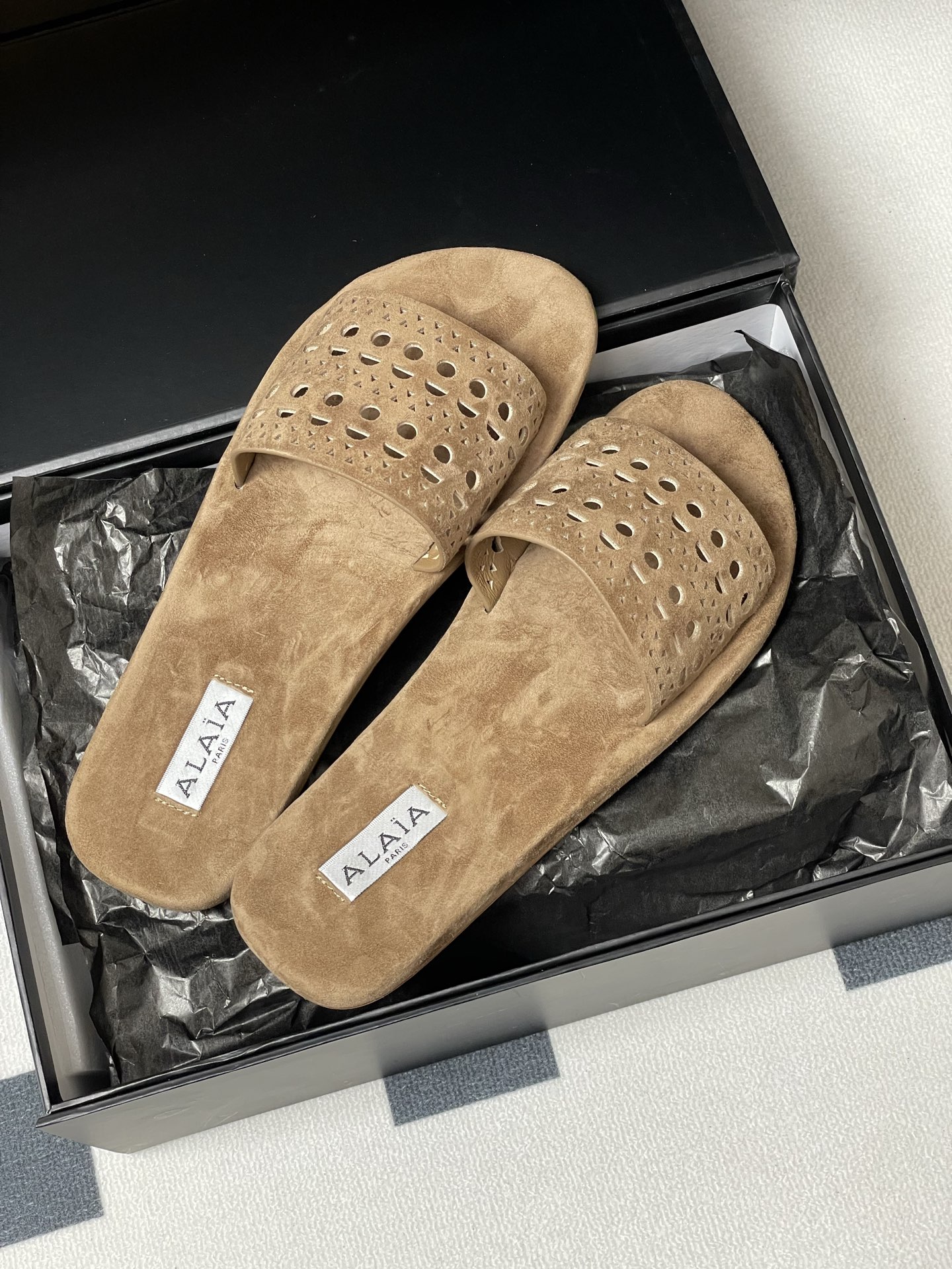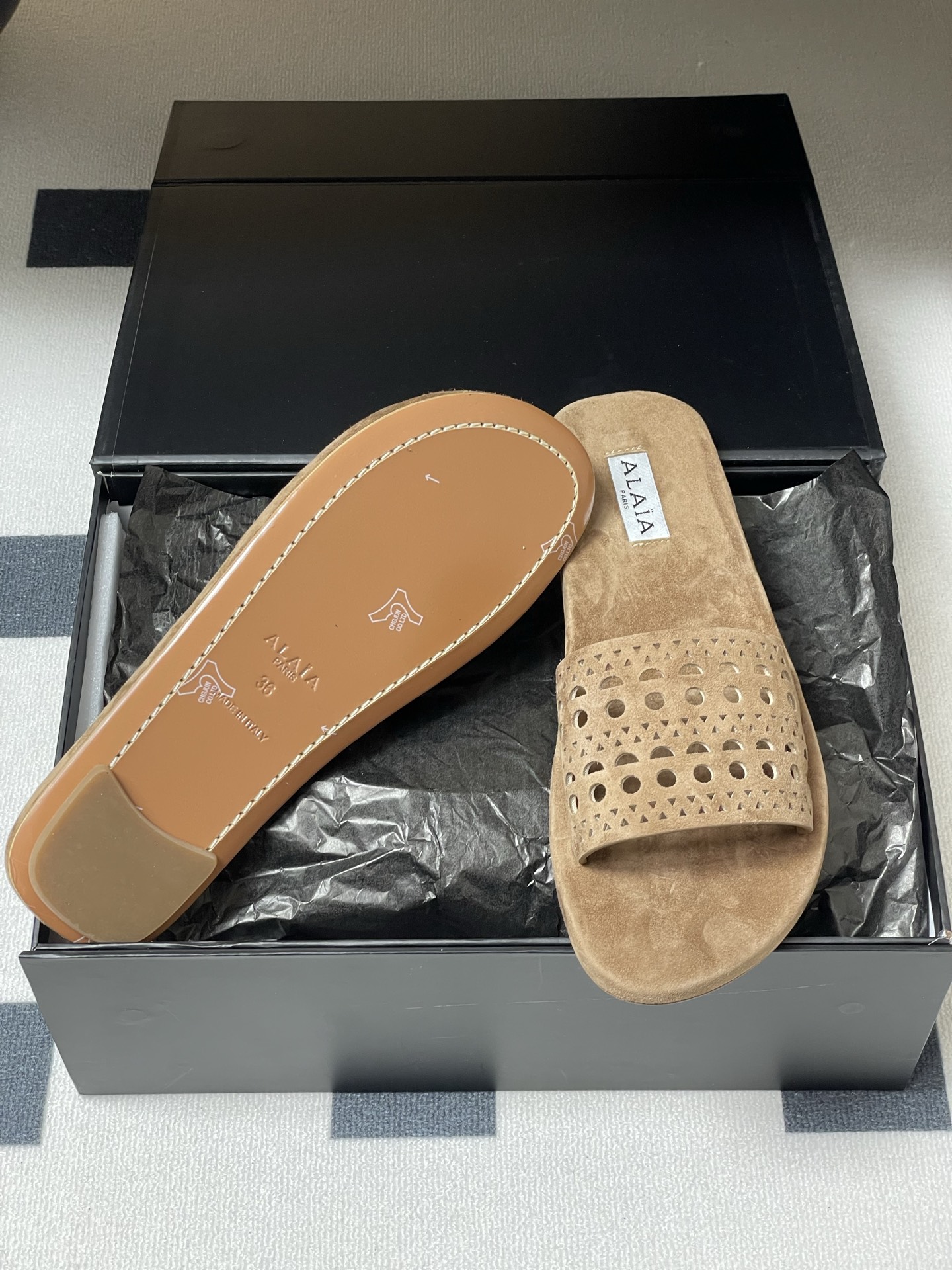 This shoes is AAAAA 1:1 quality (superb). Materials used are identical to the original ones. Alaia trademark marks are indistinguishable to the authentic. Photos take by actual shoes, what you receive will be 100% same with our photos.