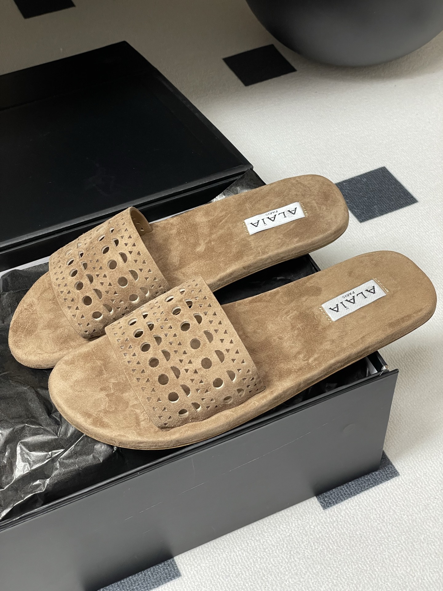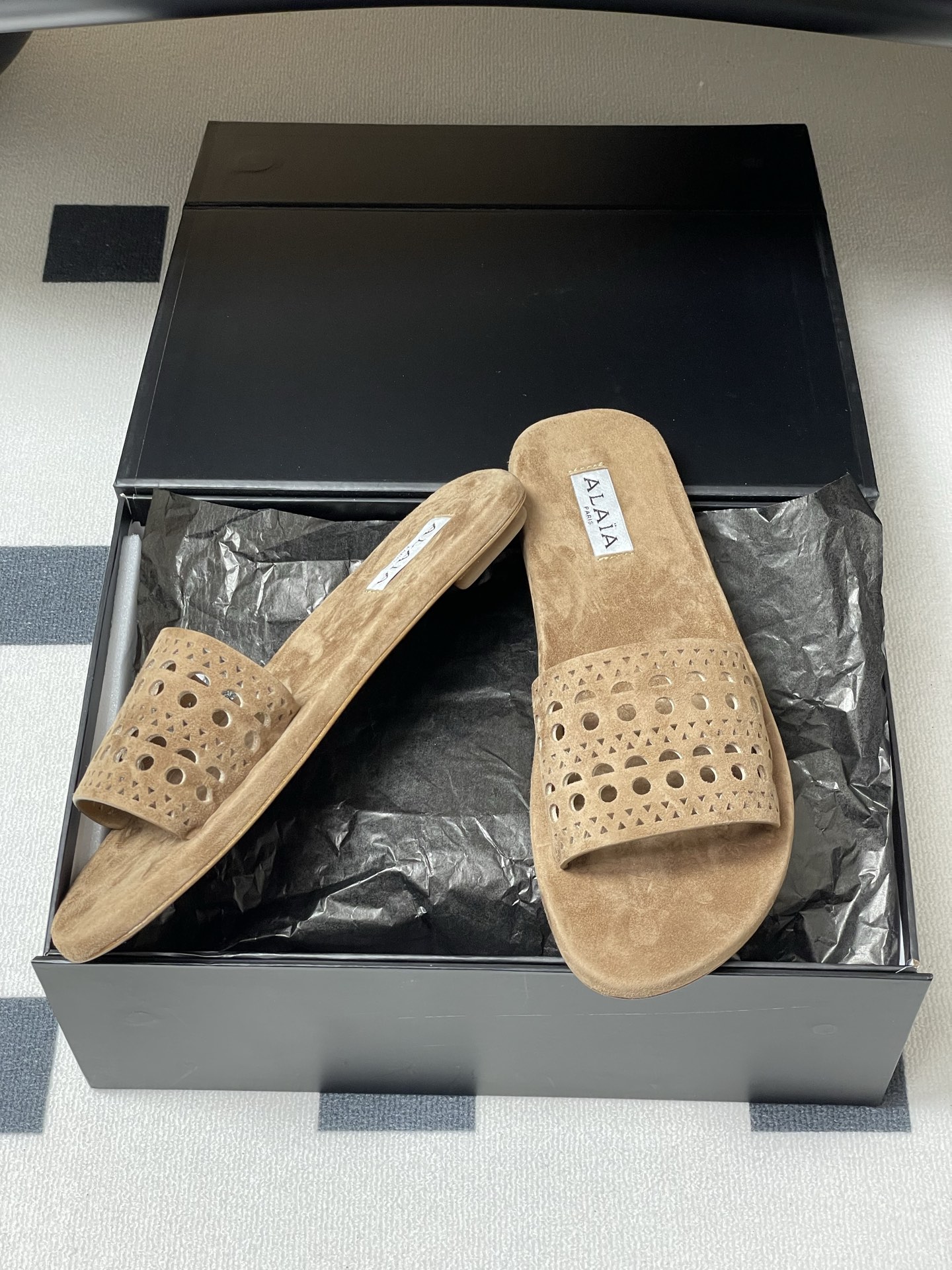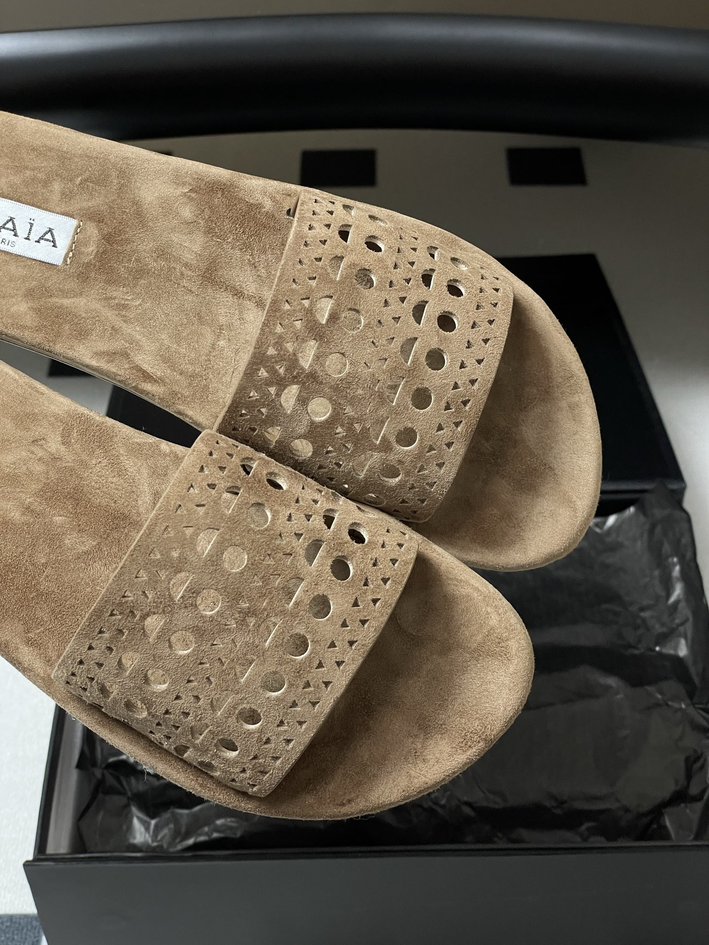 This shoes is AAAAA 1:1 quality (superb). Materials used are identical to the original ones. Alaia trademark marks are indistinguishable to the authentic. Photos take by actual shoes, what you receive will be 100% same with our photos.