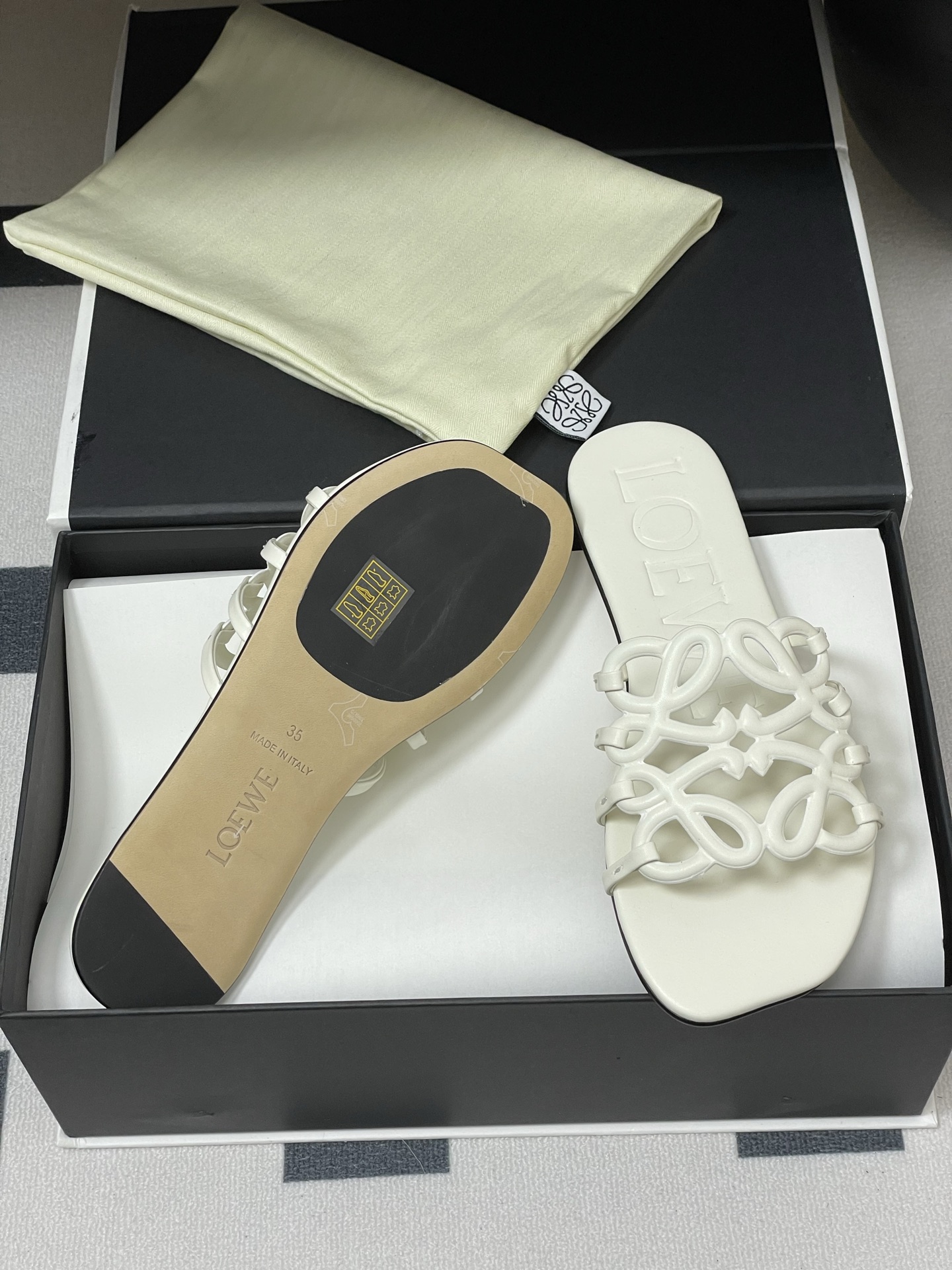 This shoes is AAAAA 1:1 quality (superb). Materials used are identical to the original ones. Loewe trademark marks are indistinguishable to the authentic. Photos take by actual shoes, what you receive will be 100% same with our photos.