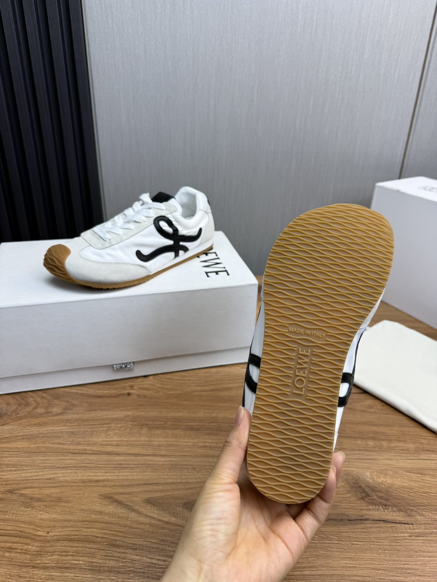 This shoes is AAAAA 1:1 quality (superb). Materials used are identical to the original ones. Loewe trademark marks are indistinguishable to the authentic. Photos take by actual shoes, what you receive will be 100% same with our photos.