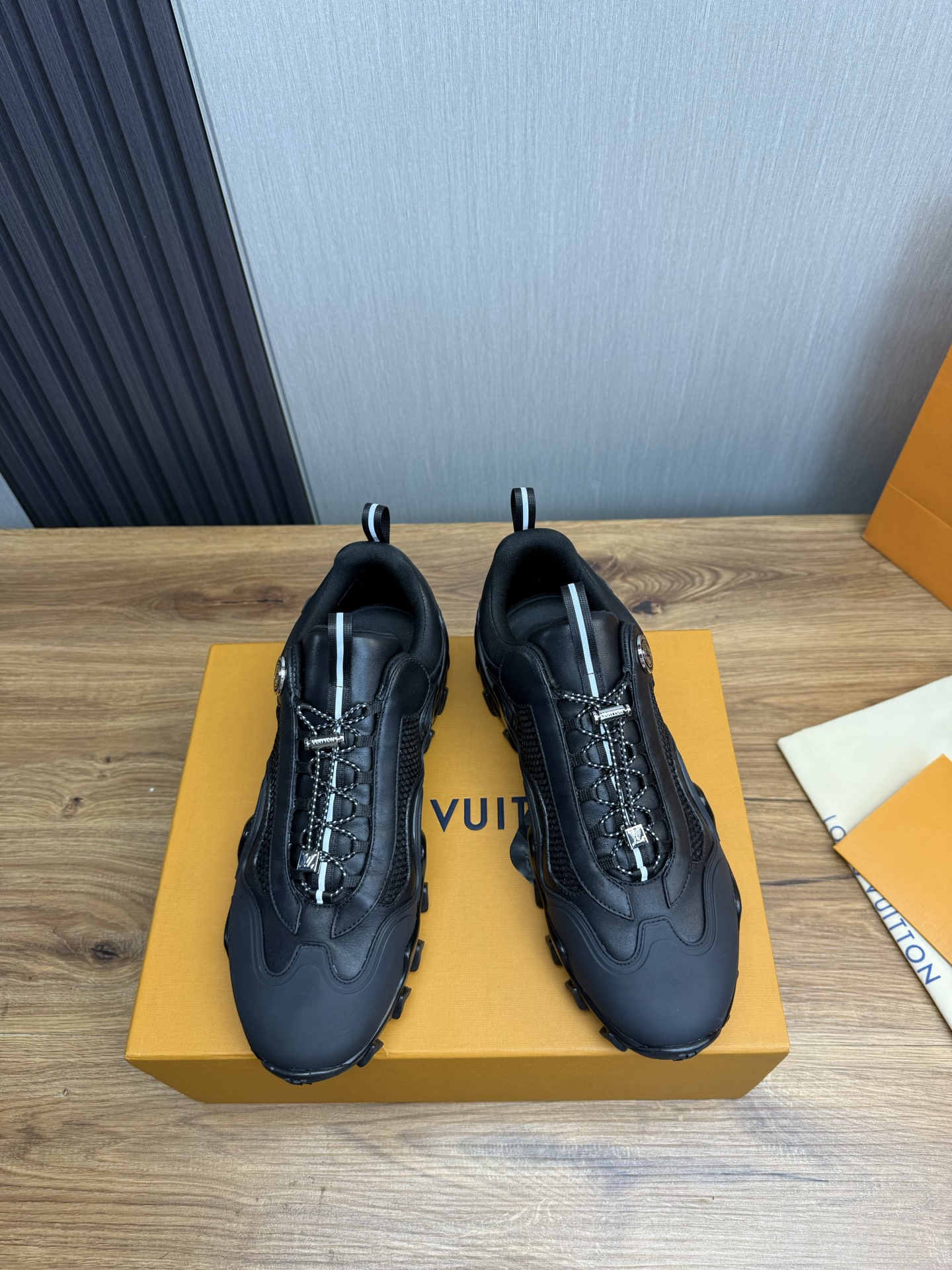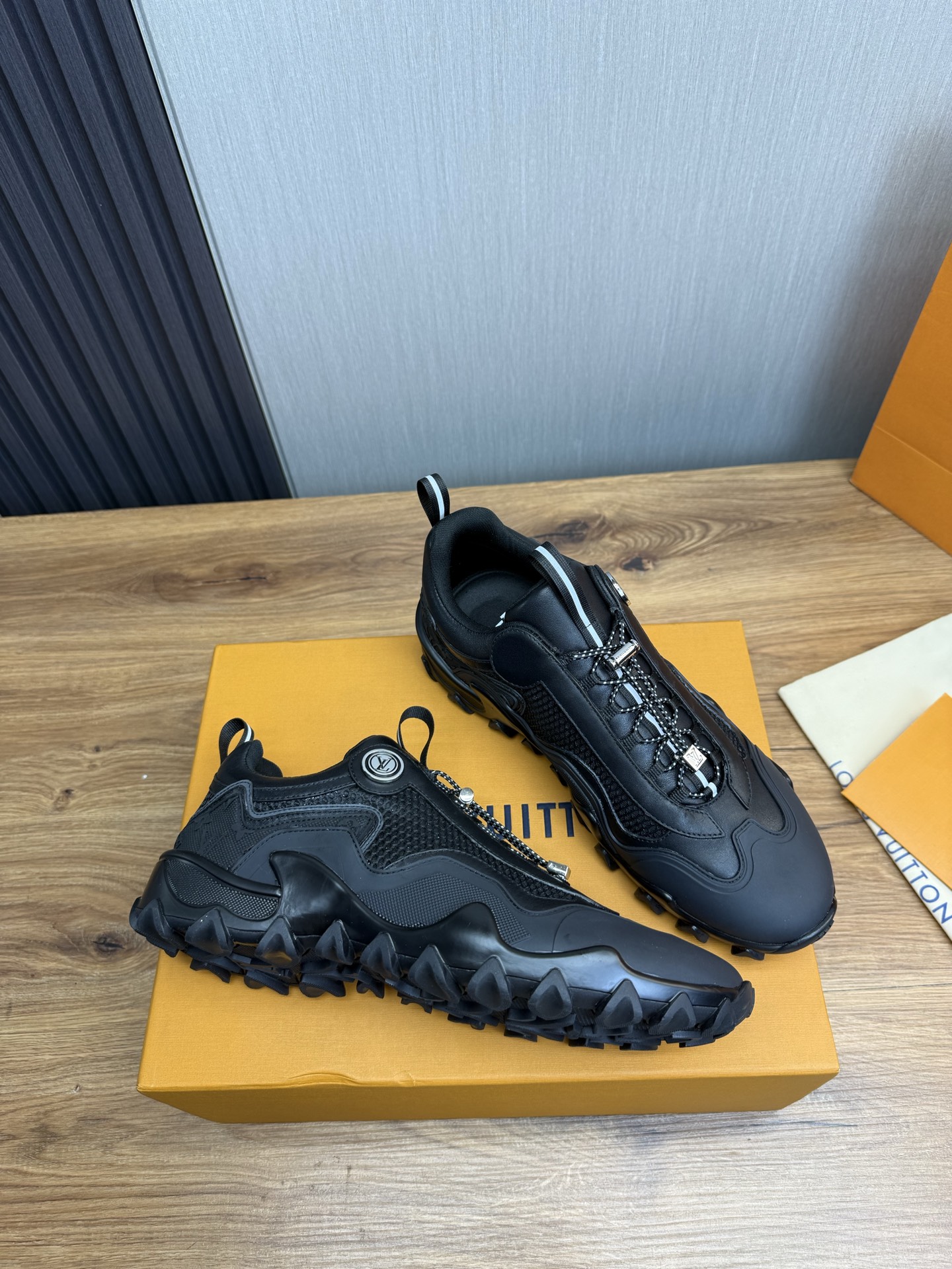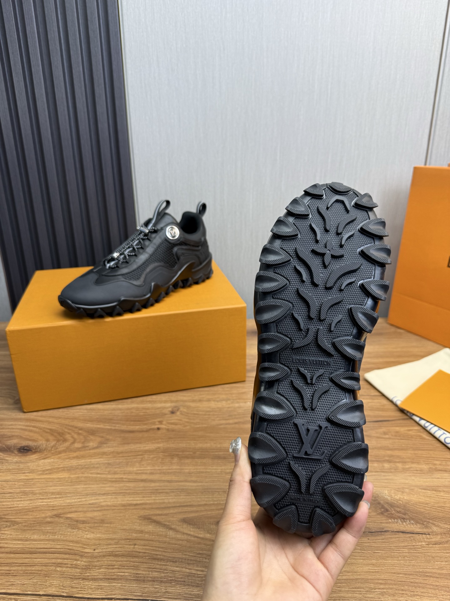 This shoes is AAAAA 1:1 quality (superb). Materials used are identical to the original ones. Louis Vuitton trademark marks are indistinguishable to the authentic. Photos take by actual shoes, what you receive will be 100% same with our photos.
