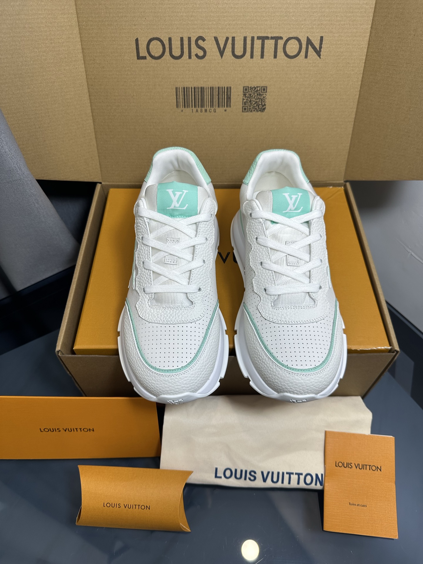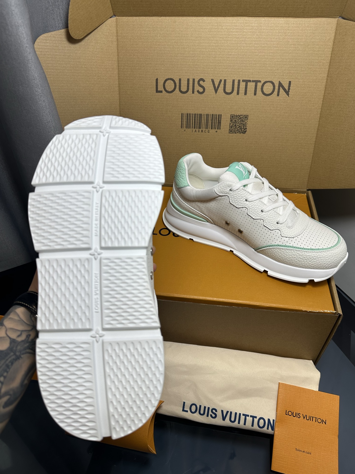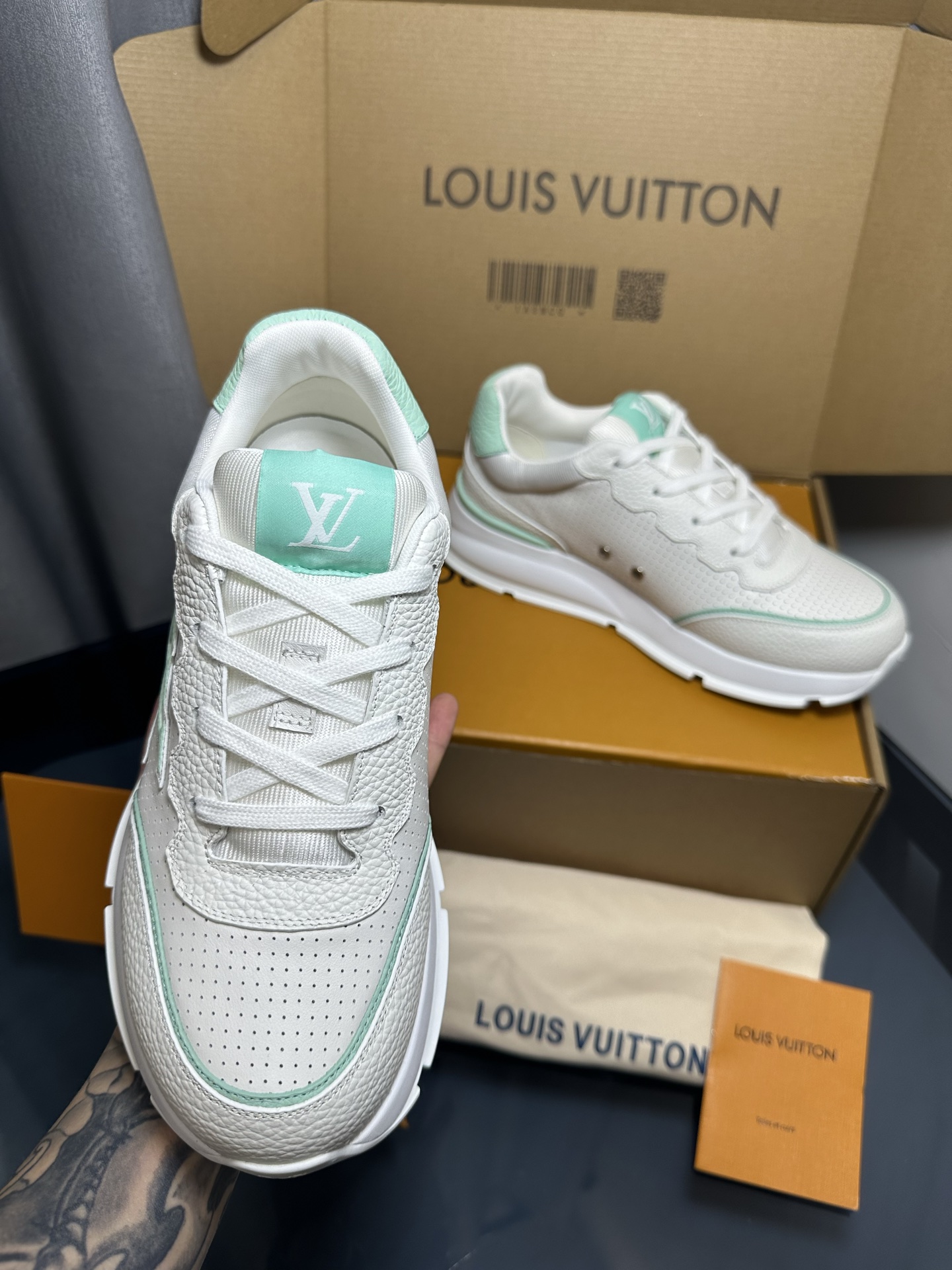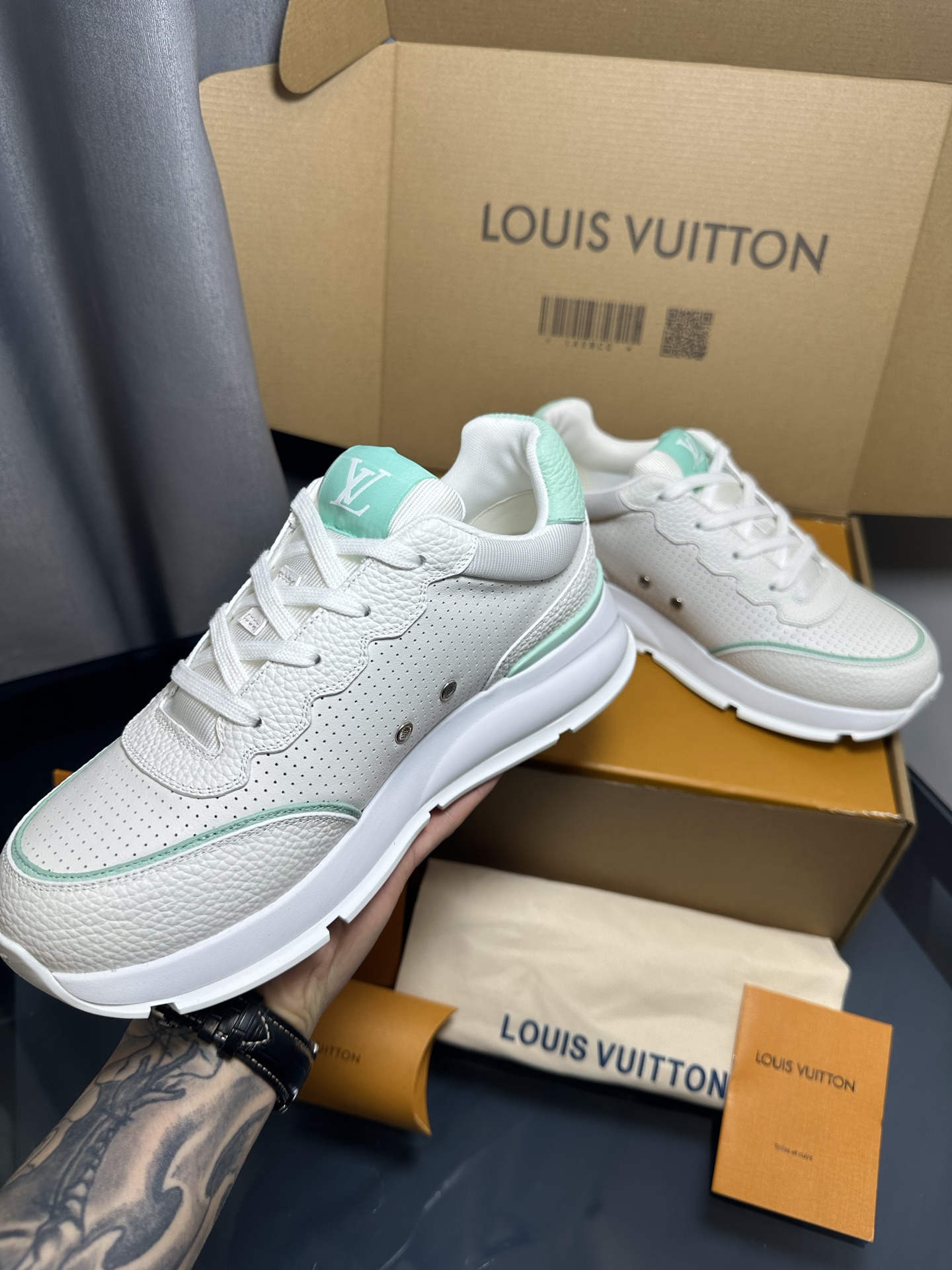 This shoes is AAAAA 1:1 quality (superb). Materials used are identical to the original ones. Louis Vuitton trademark marks are indistinguishable to the authentic. Photos take by actual shoes, what you receive will be 100% same with our photos.