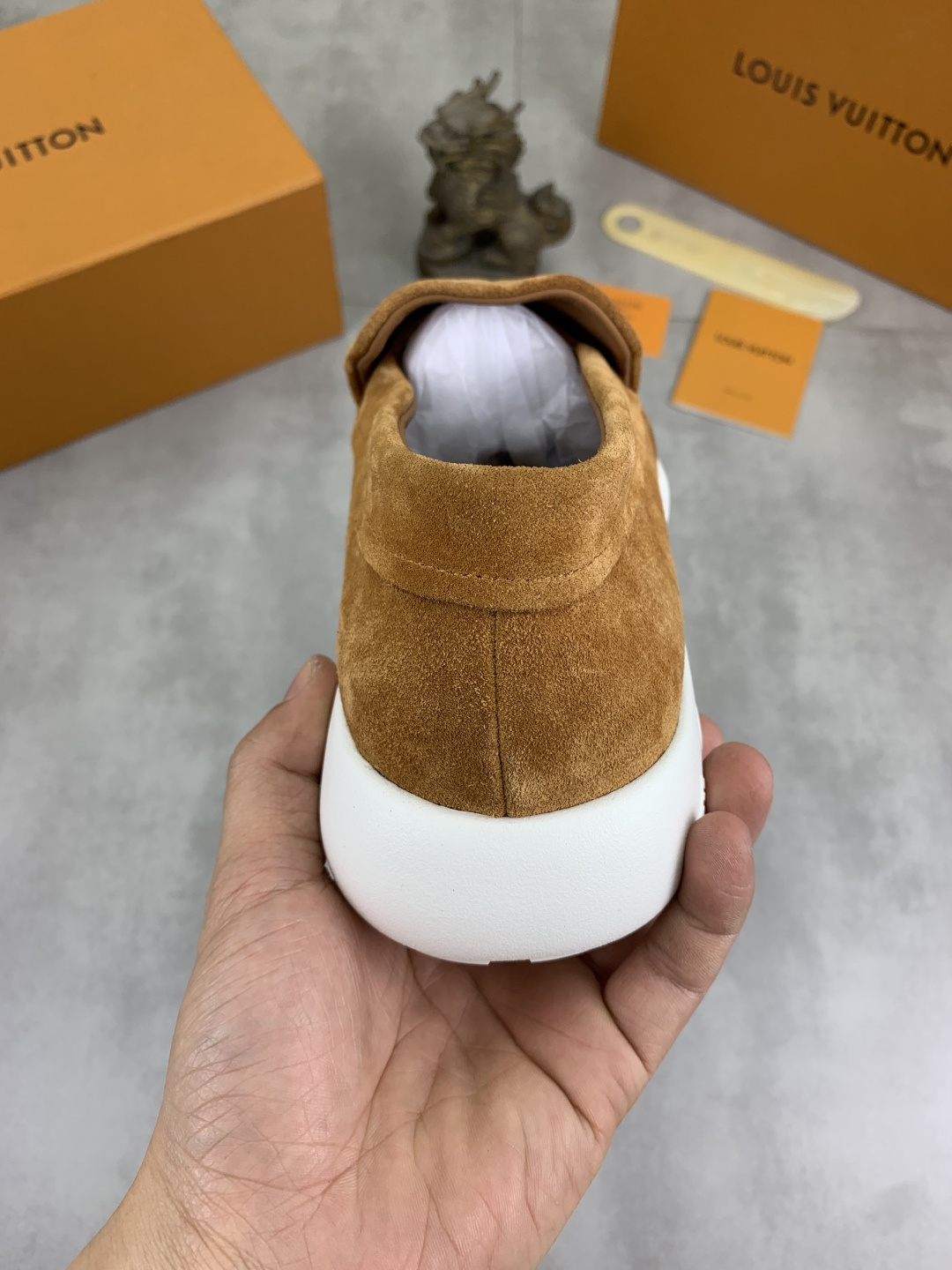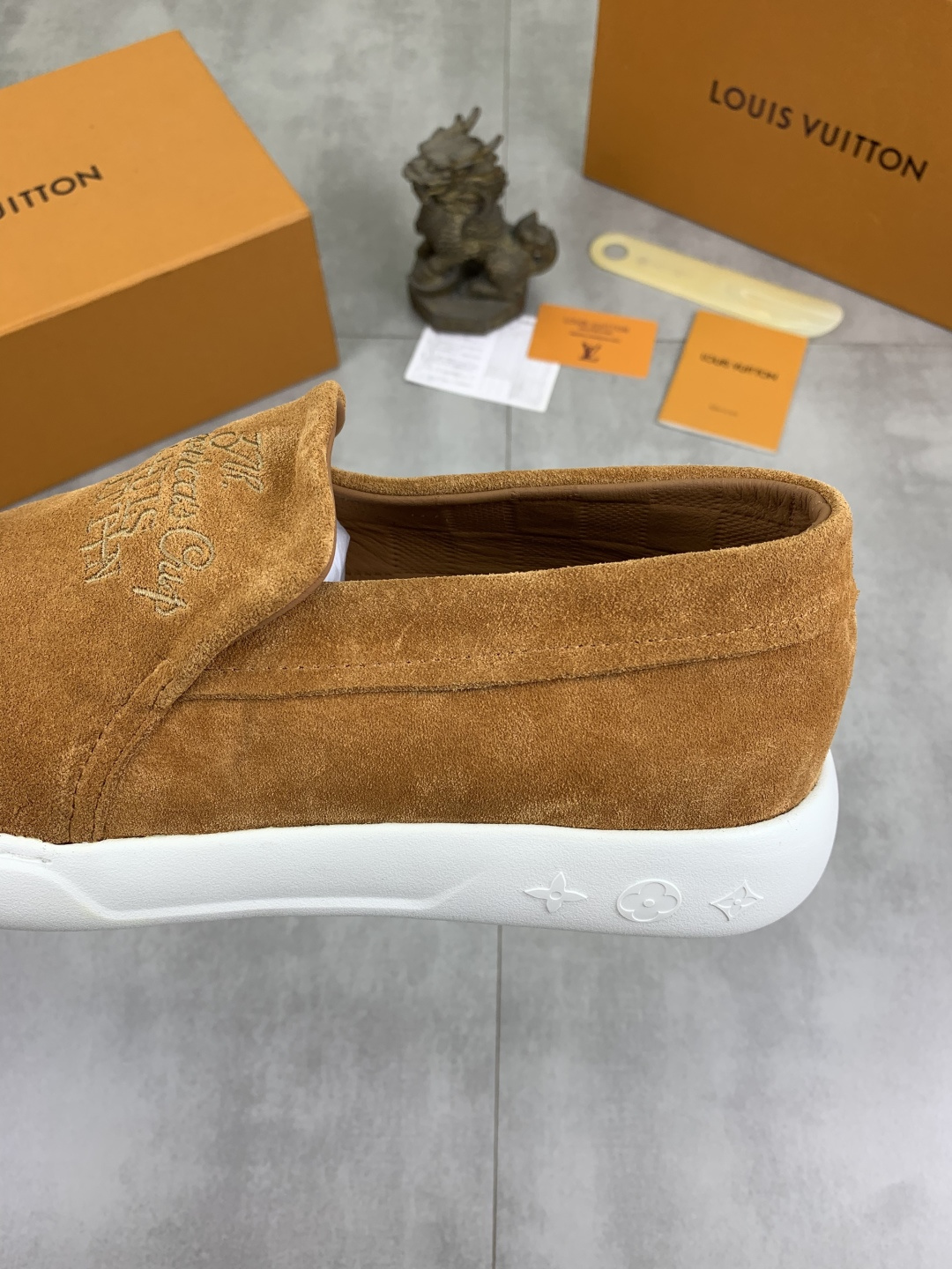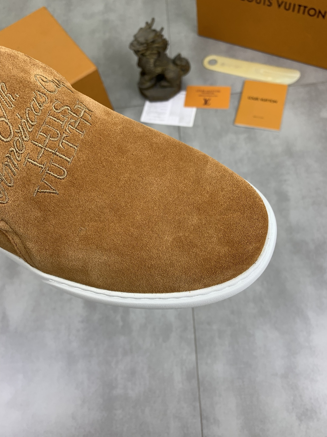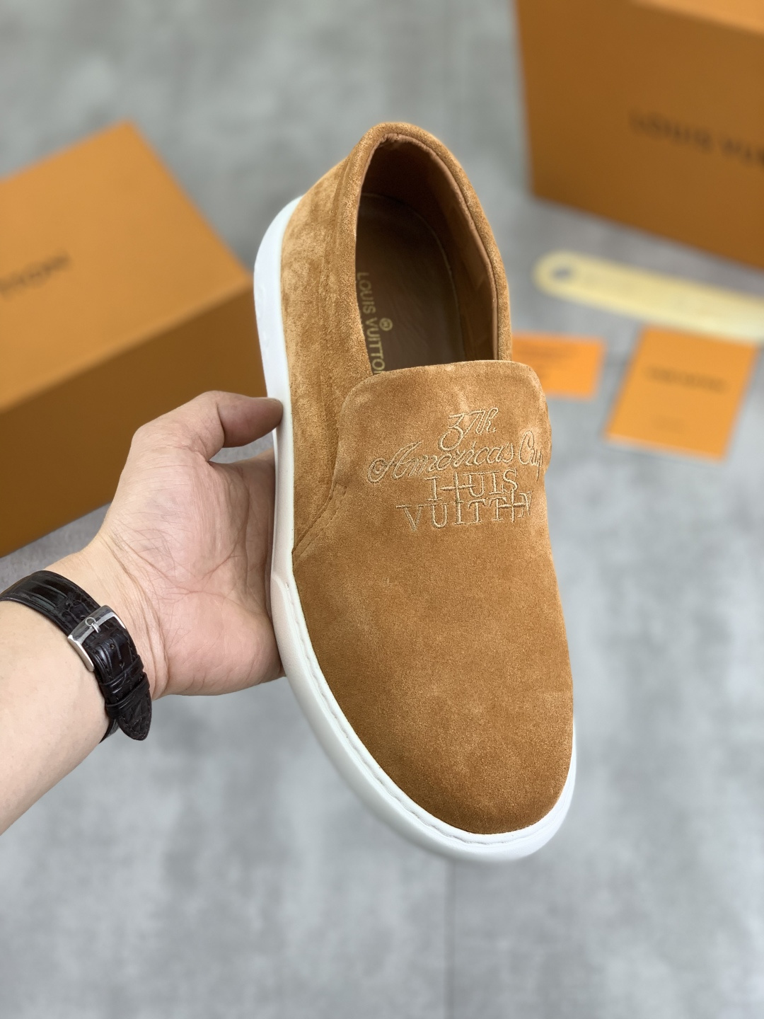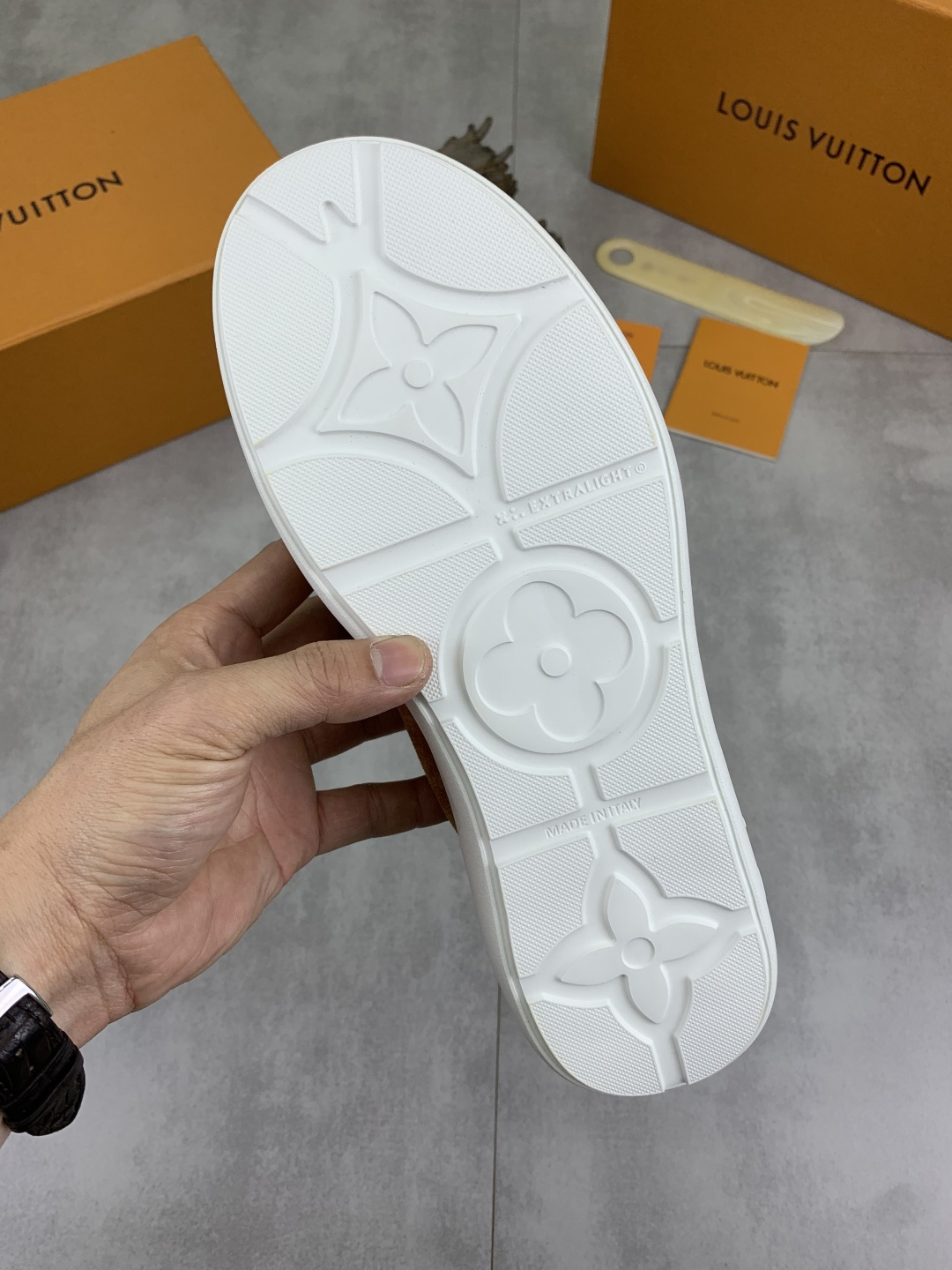This shoes is AAAAA 1:1 quality (superb). Materials used are identical to the original ones. Louis Vuitton trademark marks are indistinguishable to the authentic. Photos take by actual shoes, what you receive will be 100% same with our photos.