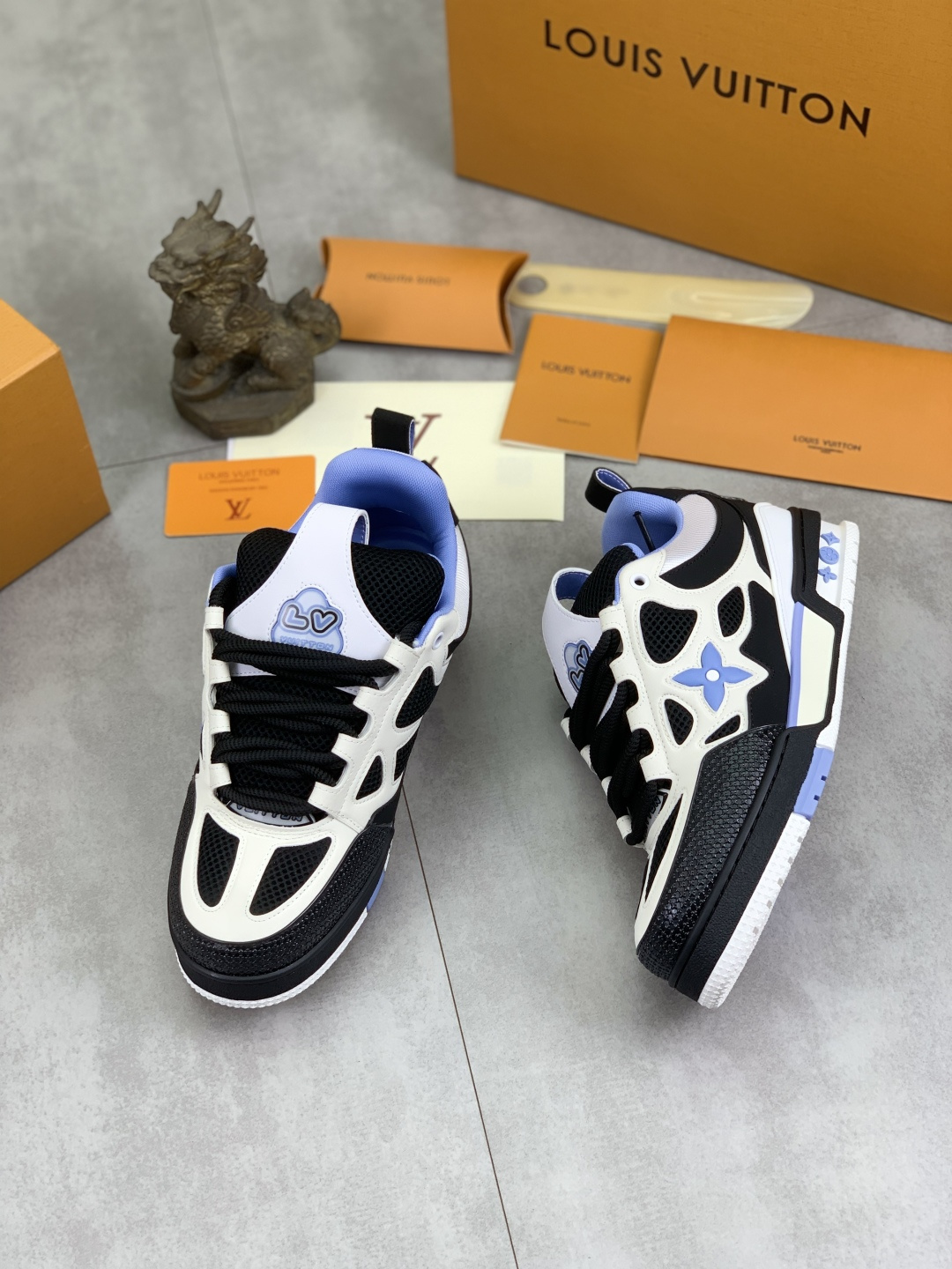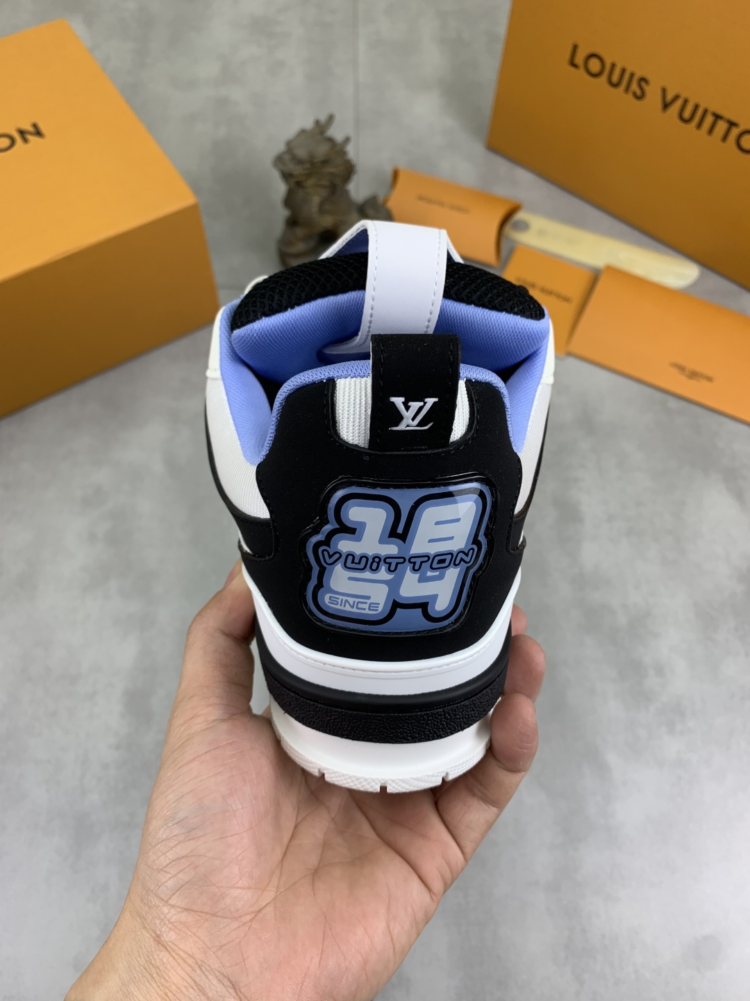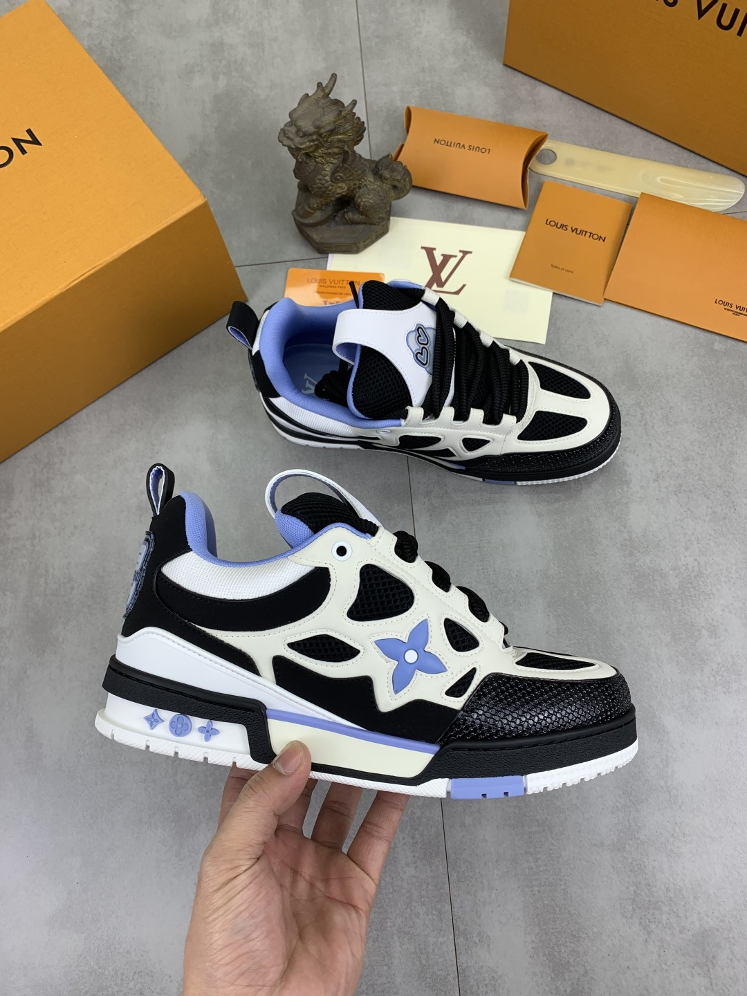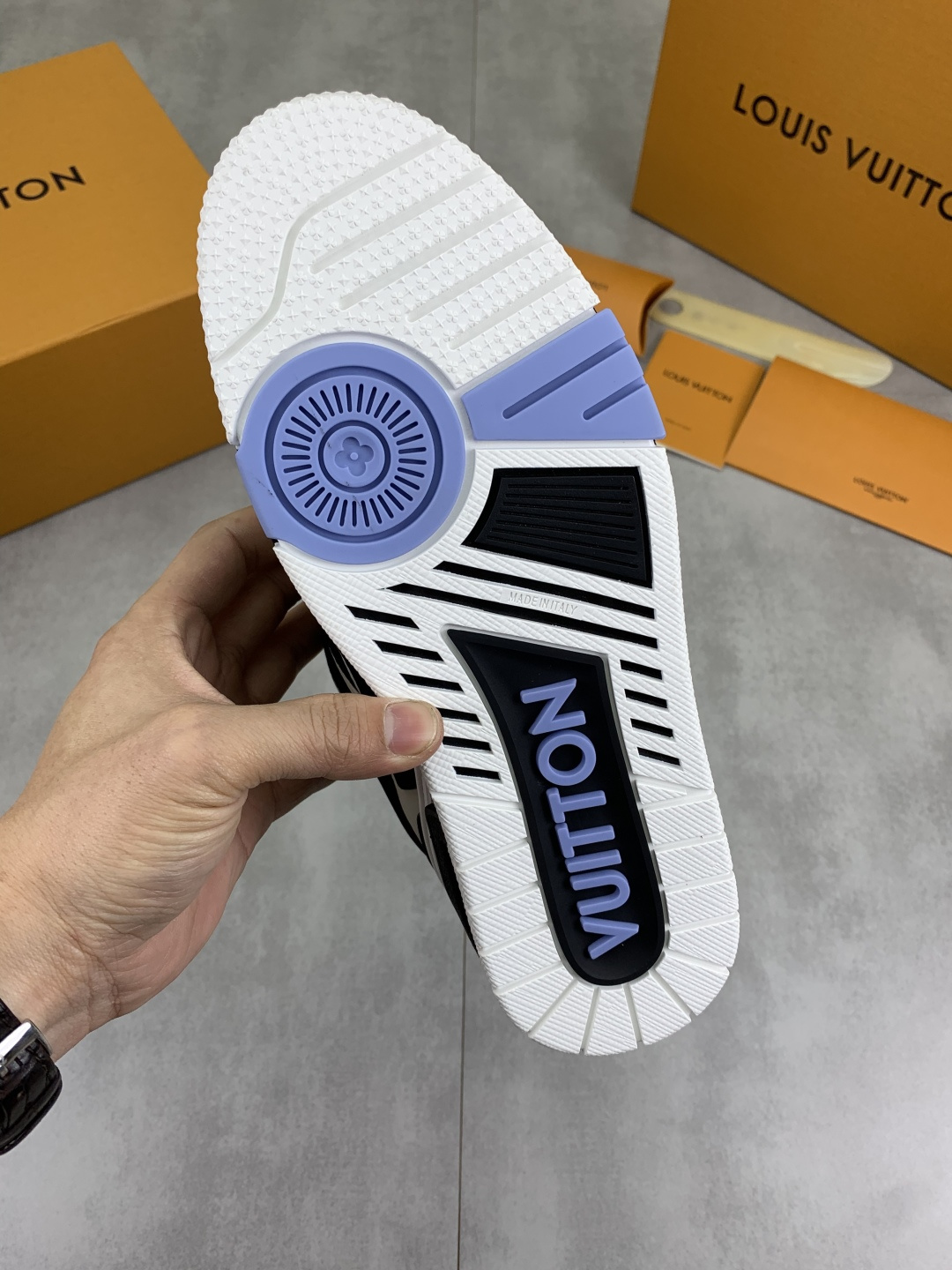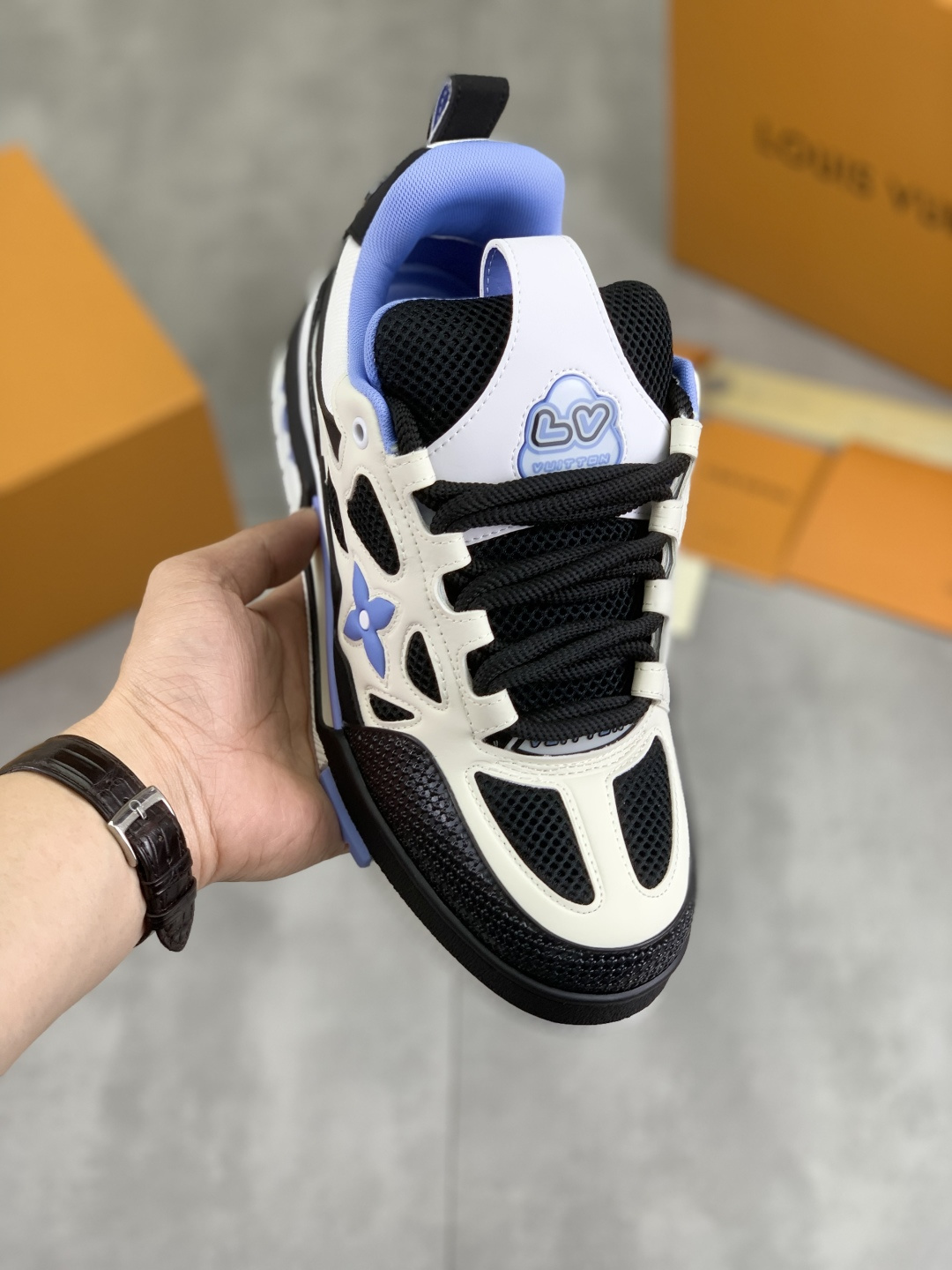 This shoes is AAAAA 1:1 quality (superb). Materials used are identical to the original ones. Louis Vuitton trademark marks are indistinguishable to the authentic. Photos take by actual shoes, what you receive will be 100% same with our photos.