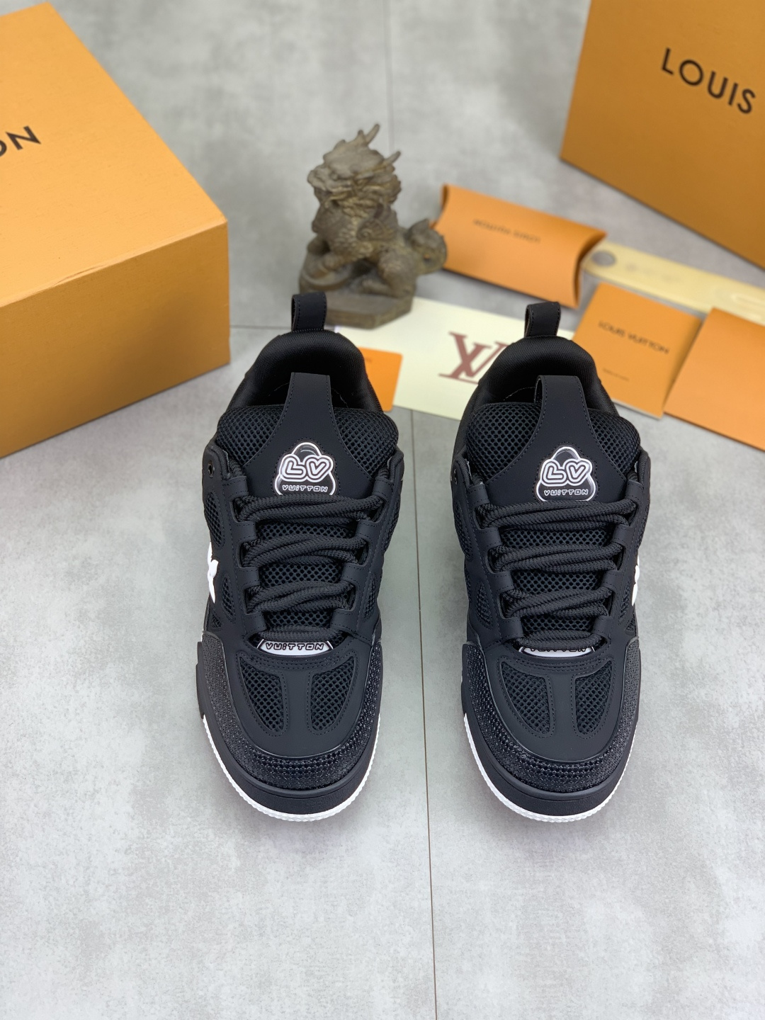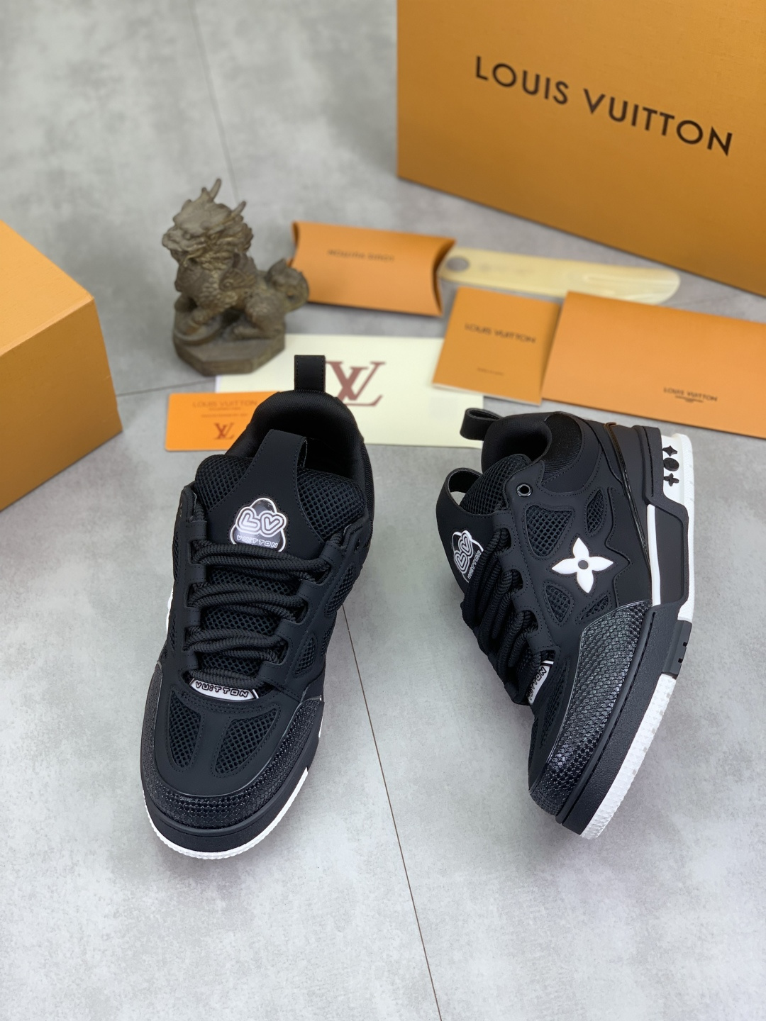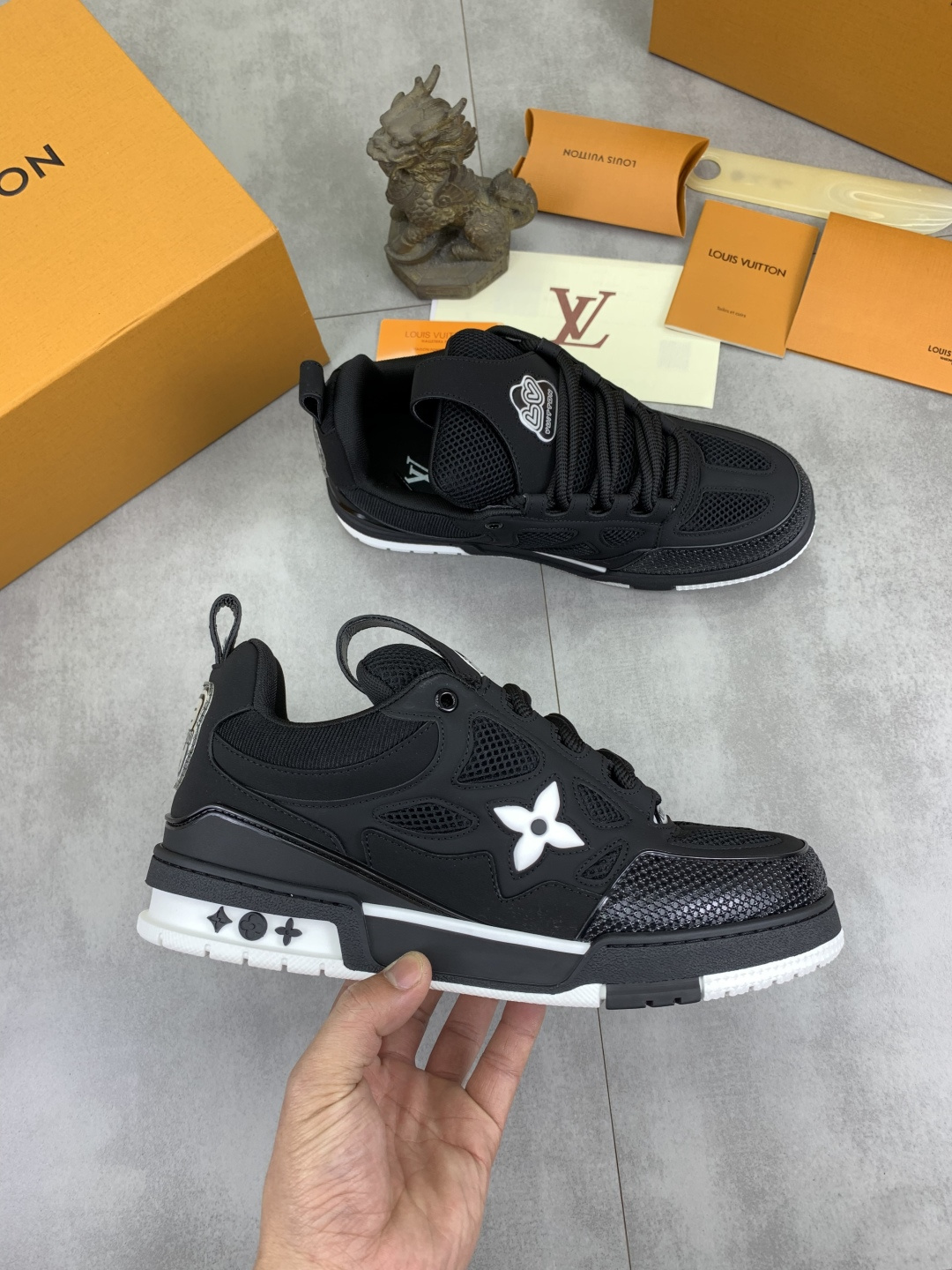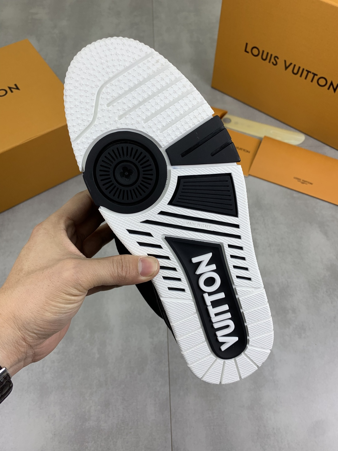 This shoes is AAAAA 1:1 quality (superb). Materials used are identical to the original ones. Louis Vuitton trademark marks are indistinguishable to the authentic. Photos take by actual shoes, what you receive will be 100% same with our photos.