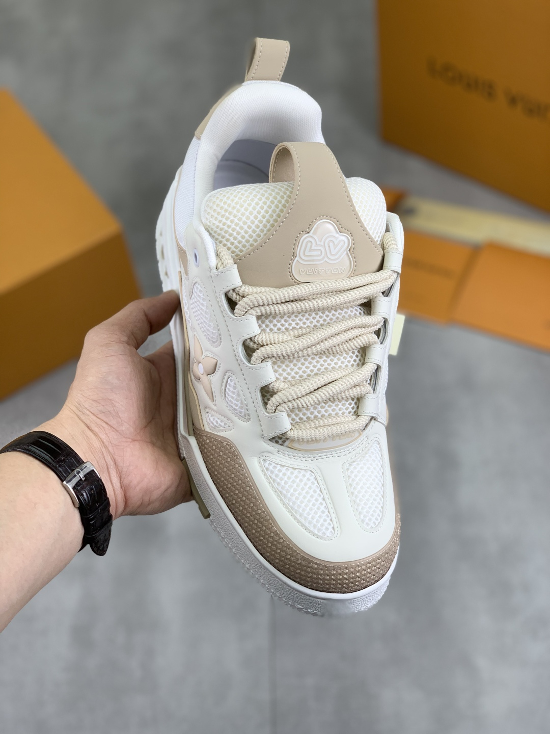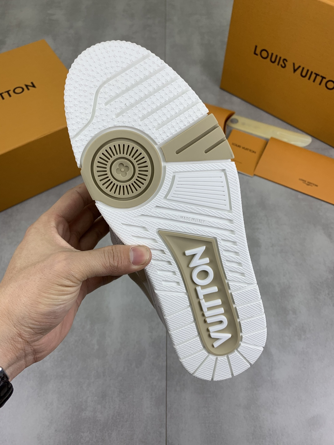 This shoes is AAAAA 1:1 quality (superb). Materials used are identical to the original ones. Louis Vuitton trademark marks are indistinguishable to the authentic. Photos take by actual shoes, what you receive will be 100% same with our photos.