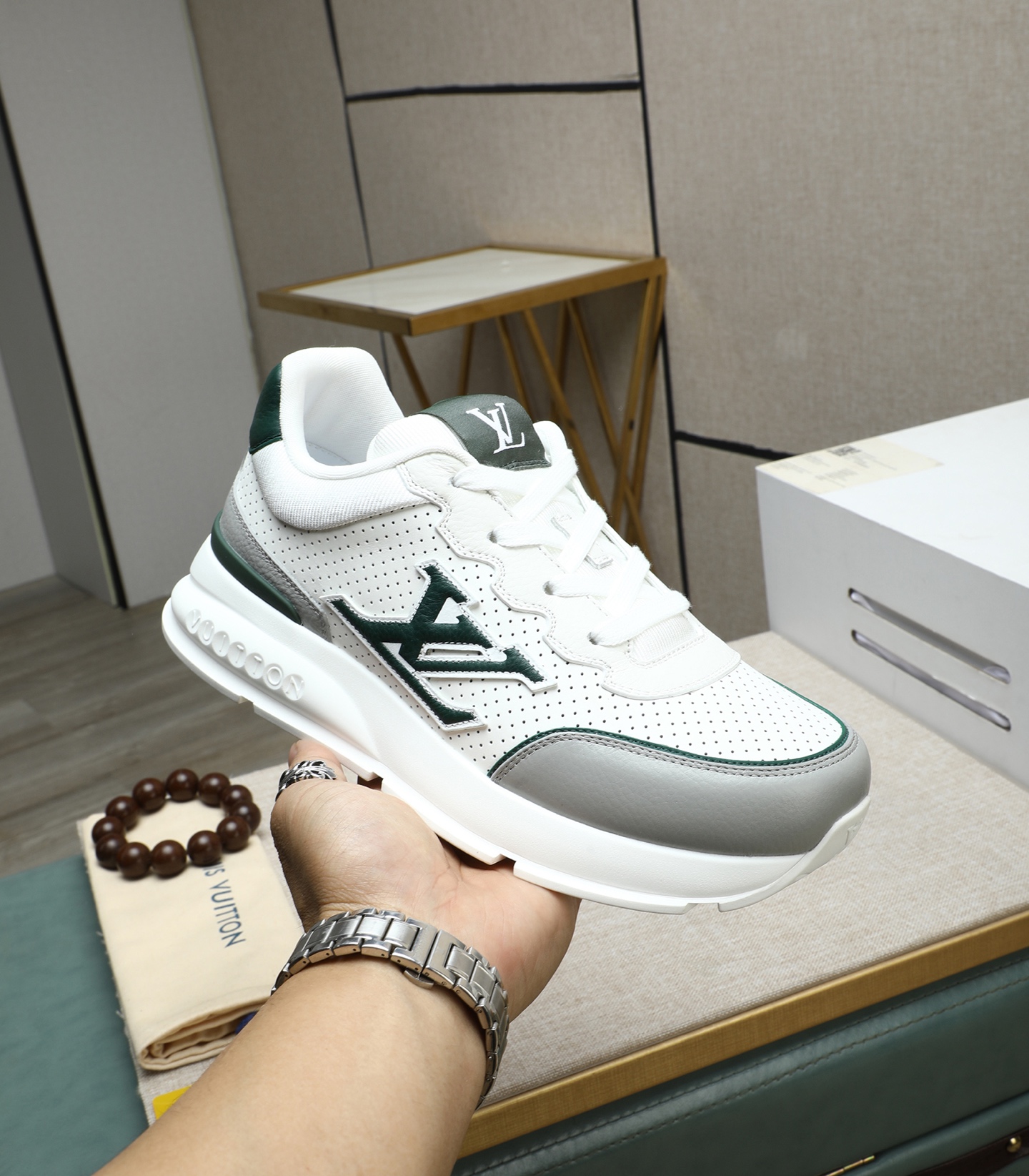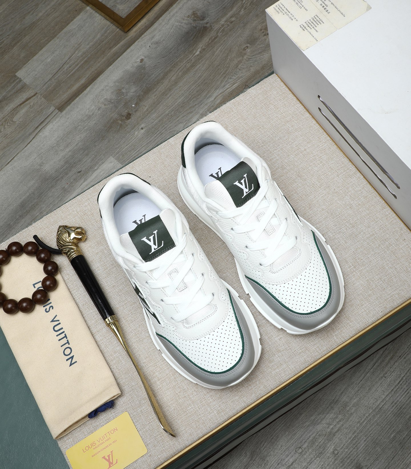This shoes is AAAAA 1:1 quality (superb). Materials used are identical to the original ones. Louis Vuitton trademark marks are indistinguishable to the authentic. Photos take by actual shoes, what you receive will be 100% same with our photos.