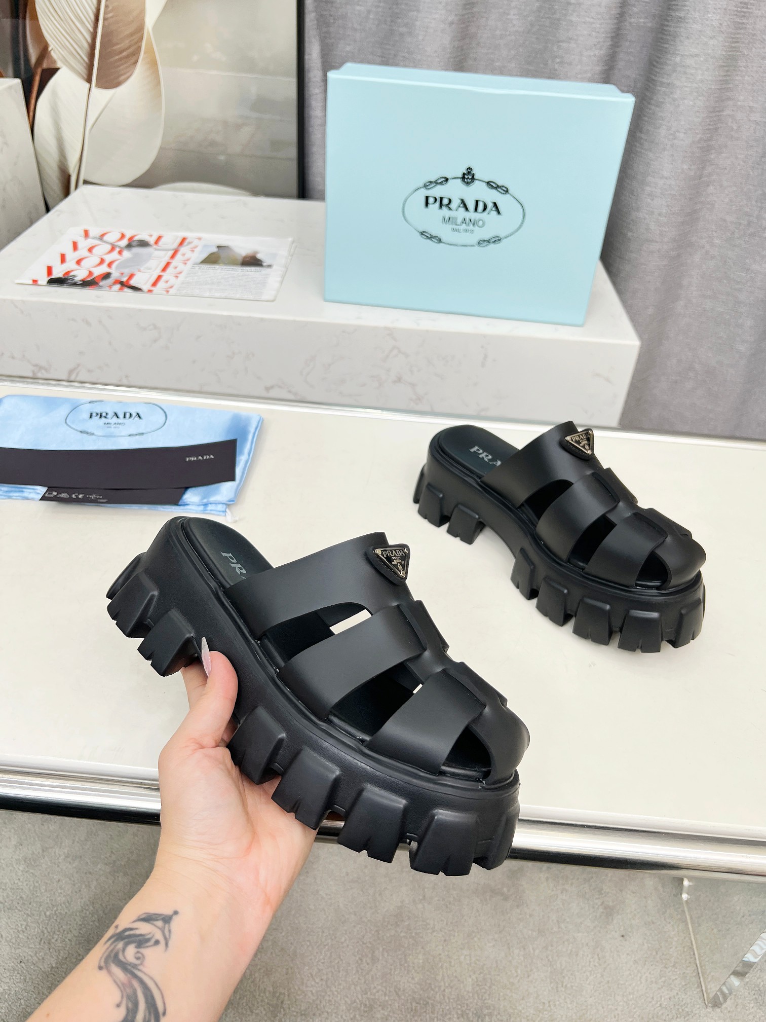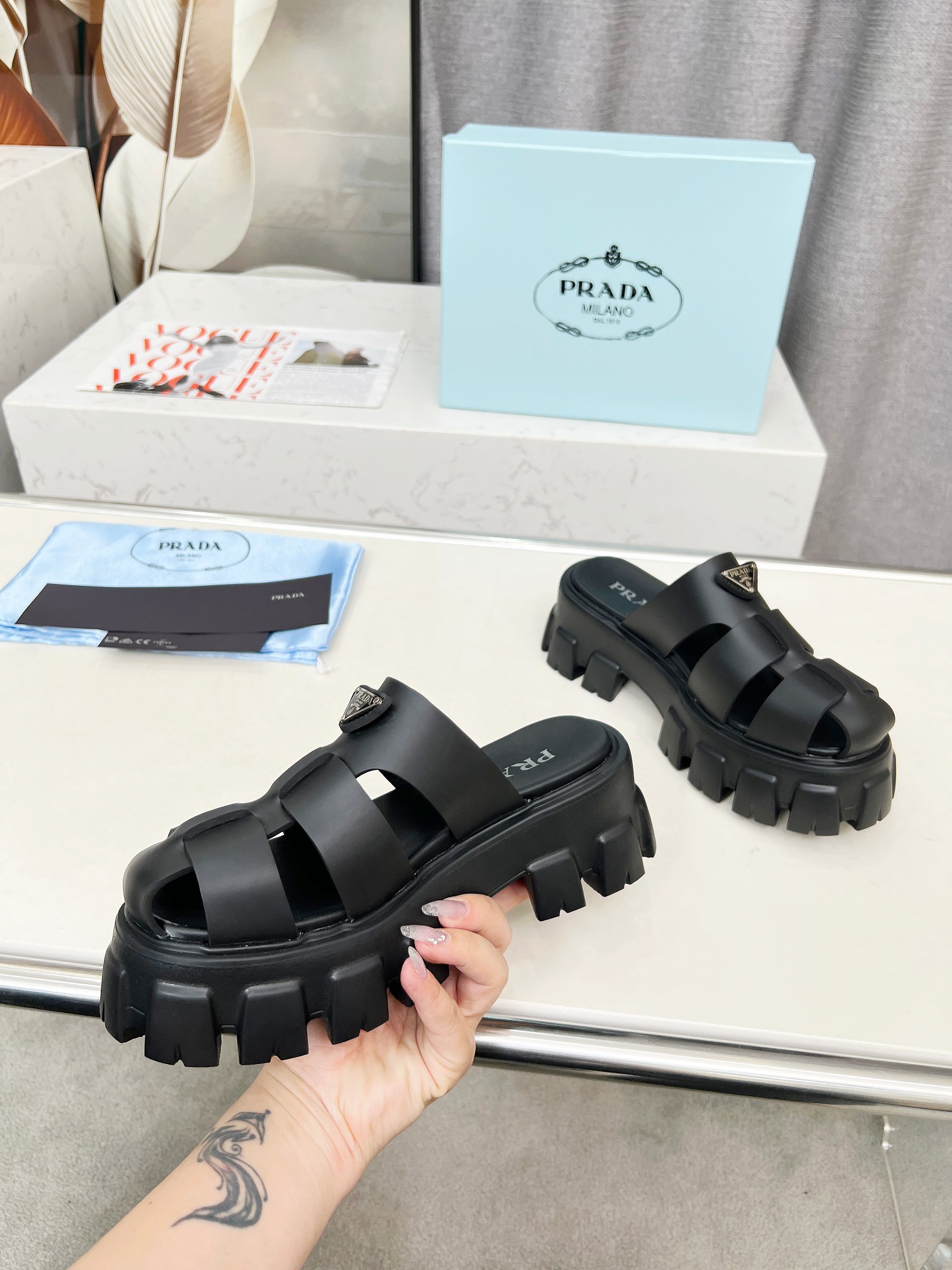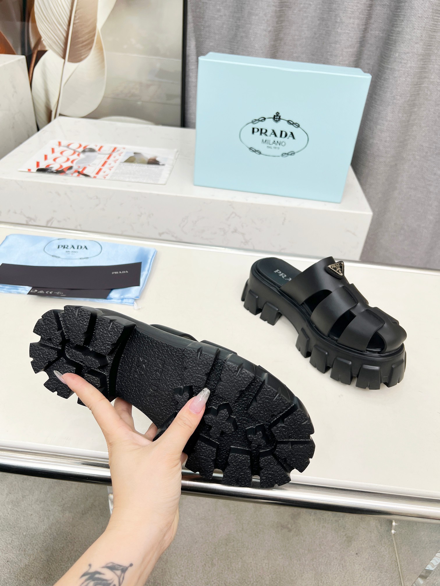 This shoes is AAAAA 1:1 quality (superb). Materials used are identical to the original ones. Prada trademark marks are indistinguishable to the authentic. Photos take by actual shoes, what you receive will be 100% same with our photos.