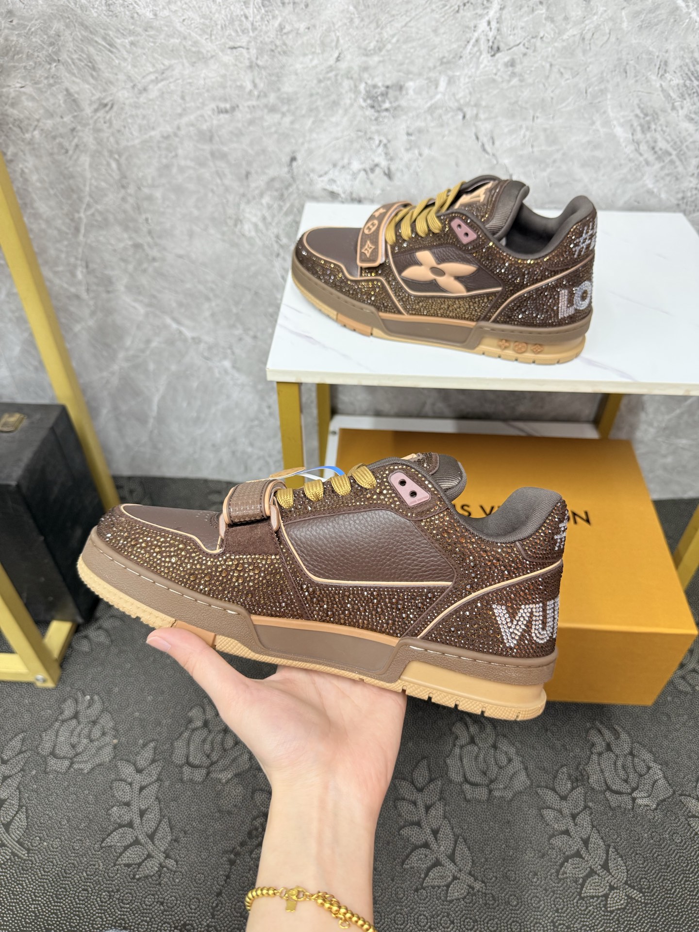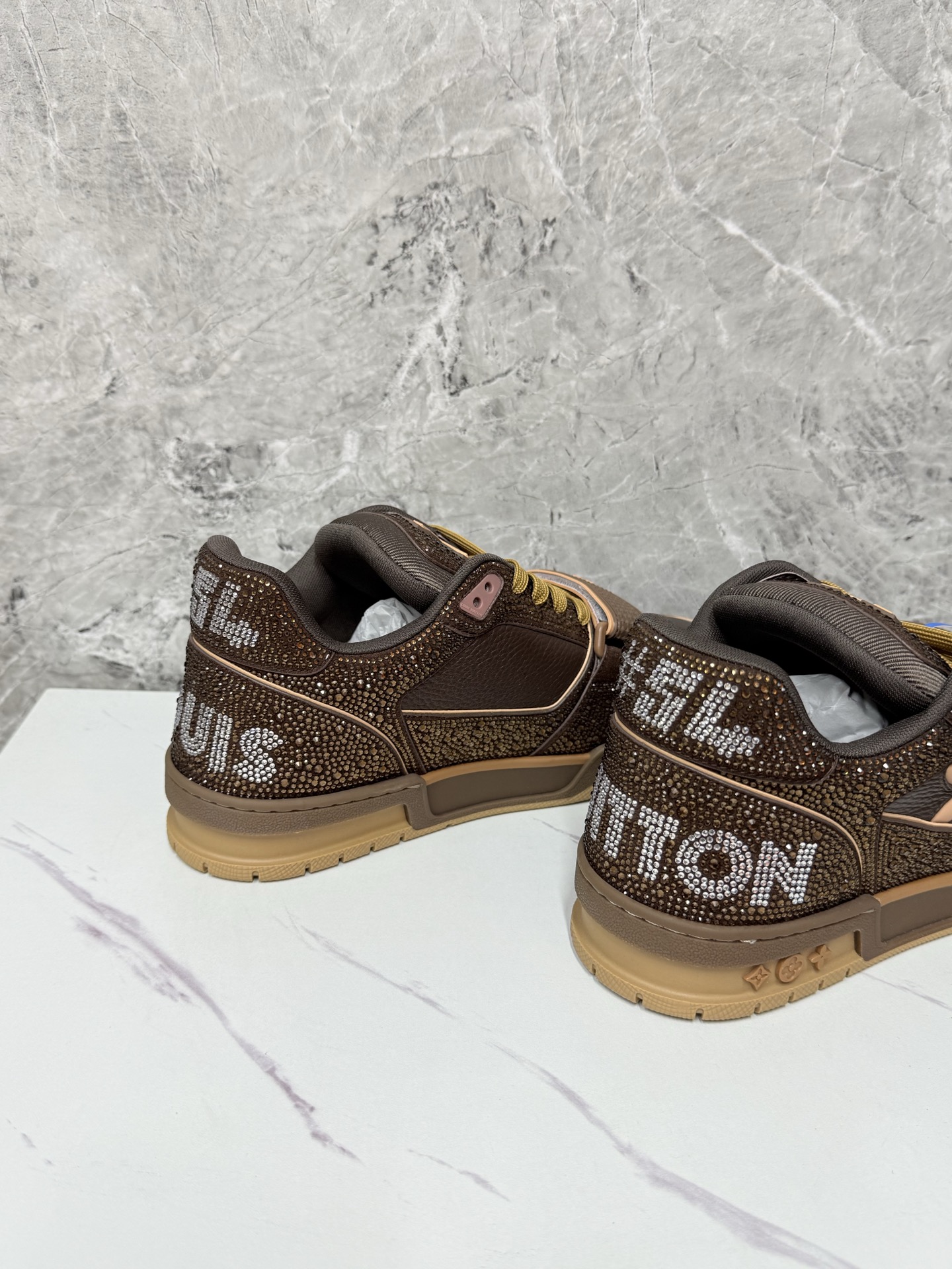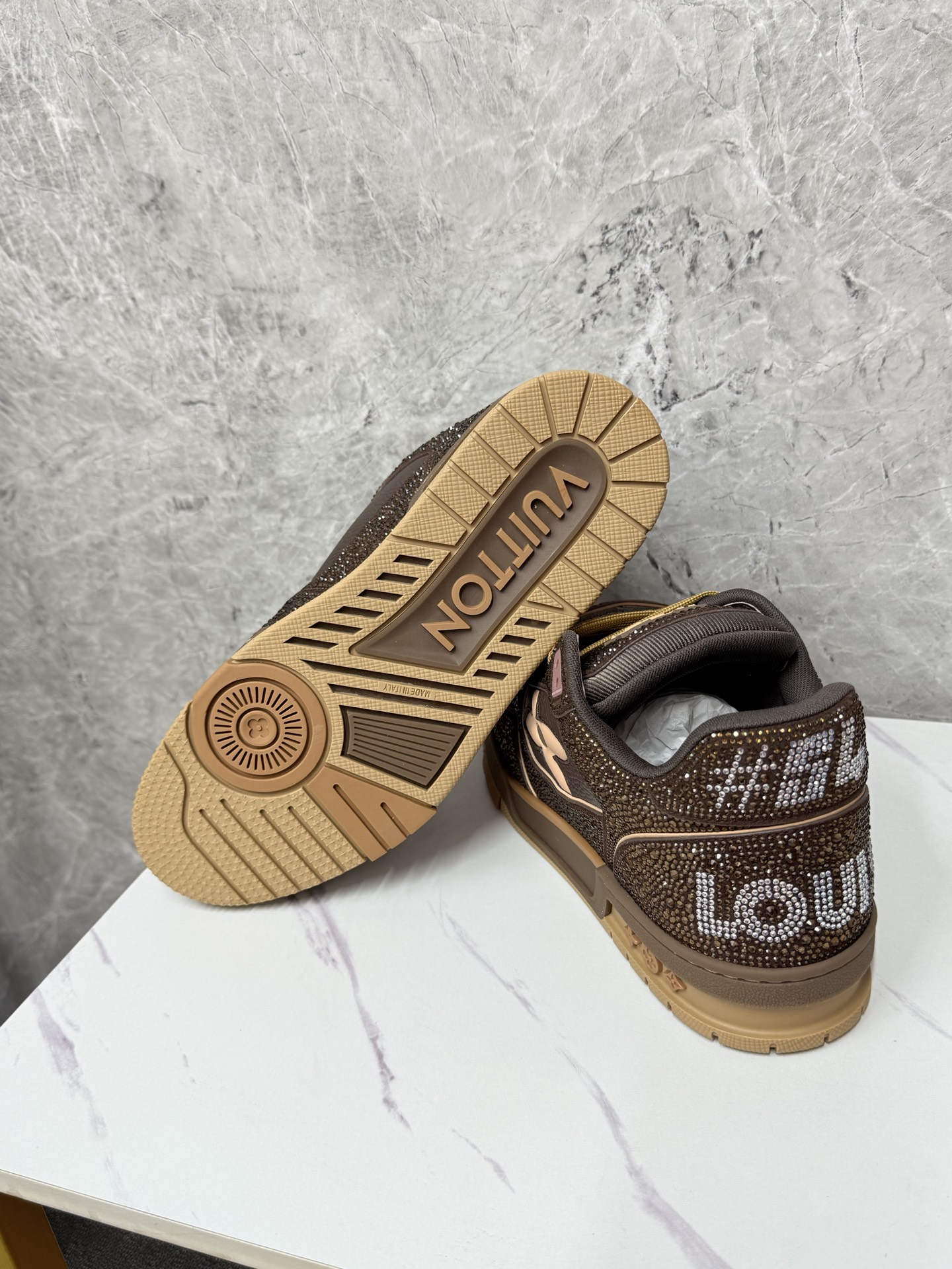 This shoes is AAAAA 1:1 quality (superb). Materials used are identical to the original ones. Louis Vuitton trademark marks are indistinguishable to the authentic. Photos take by actual shoes, what you receive will be 100% same with our photos.