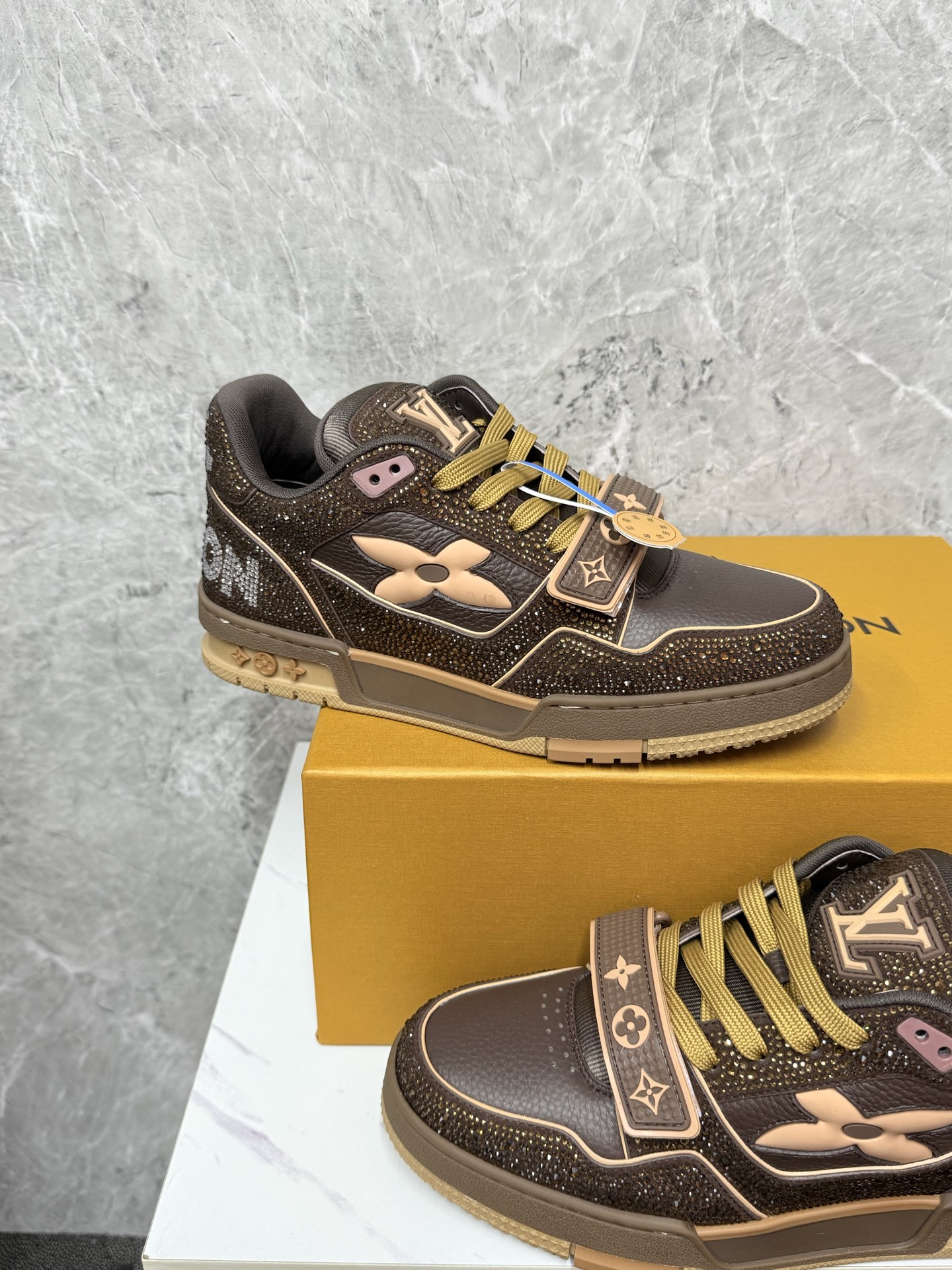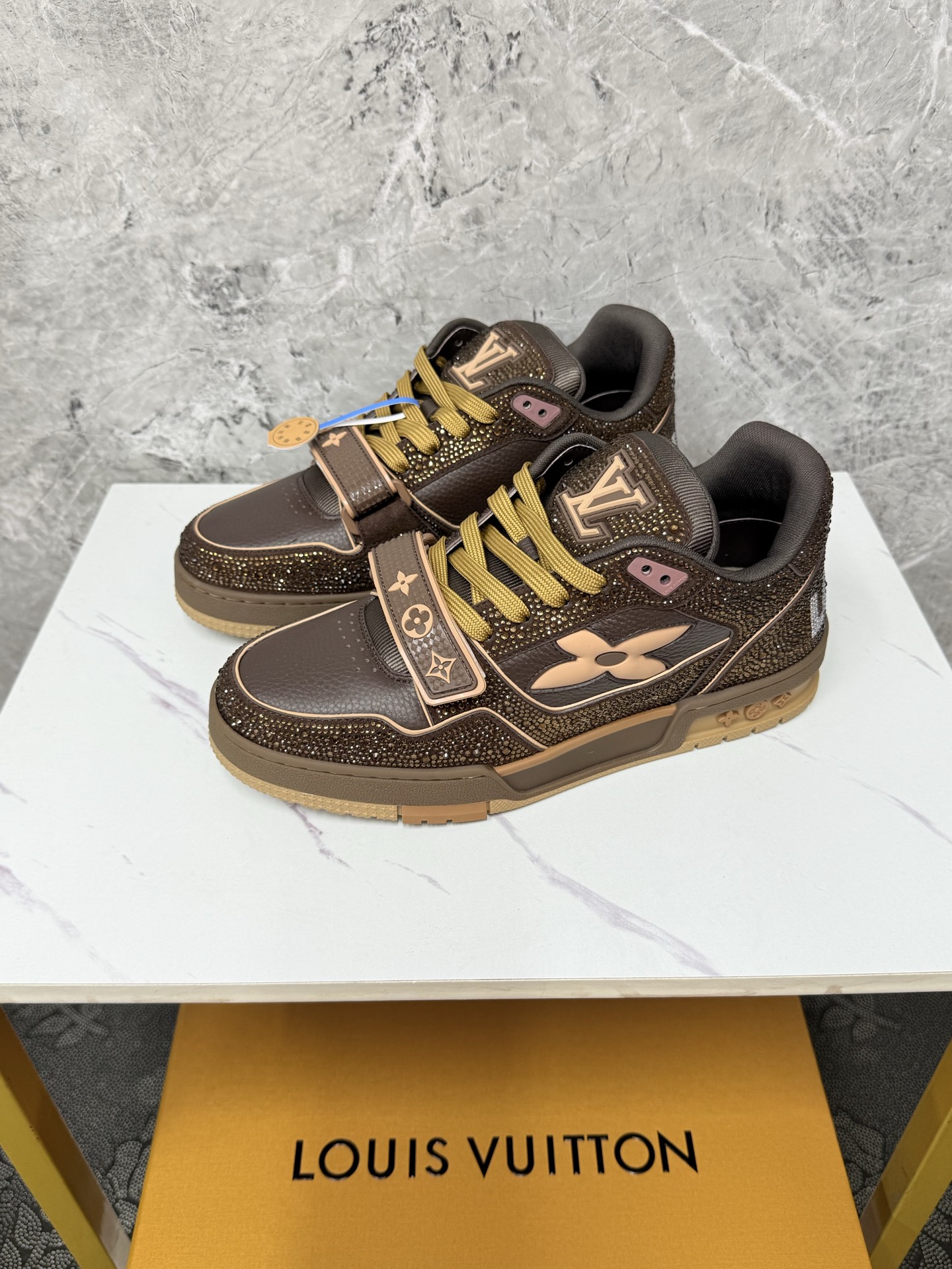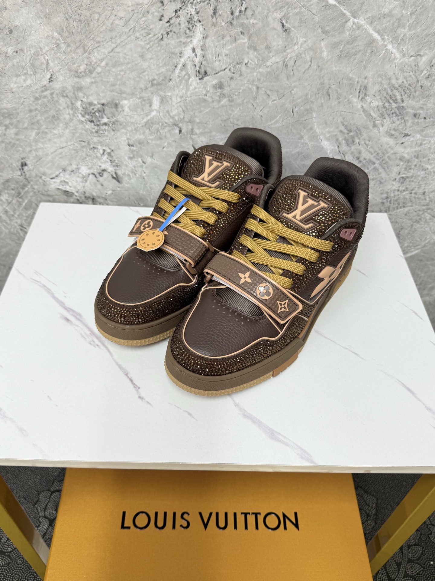 This shoes is AAAAA 1:1 quality (superb). Materials used are identical to the original ones. Louis Vuitton trademark marks are indistinguishable to the authentic. Photos take by actual shoes, what you receive will be 100% same with our photos.
