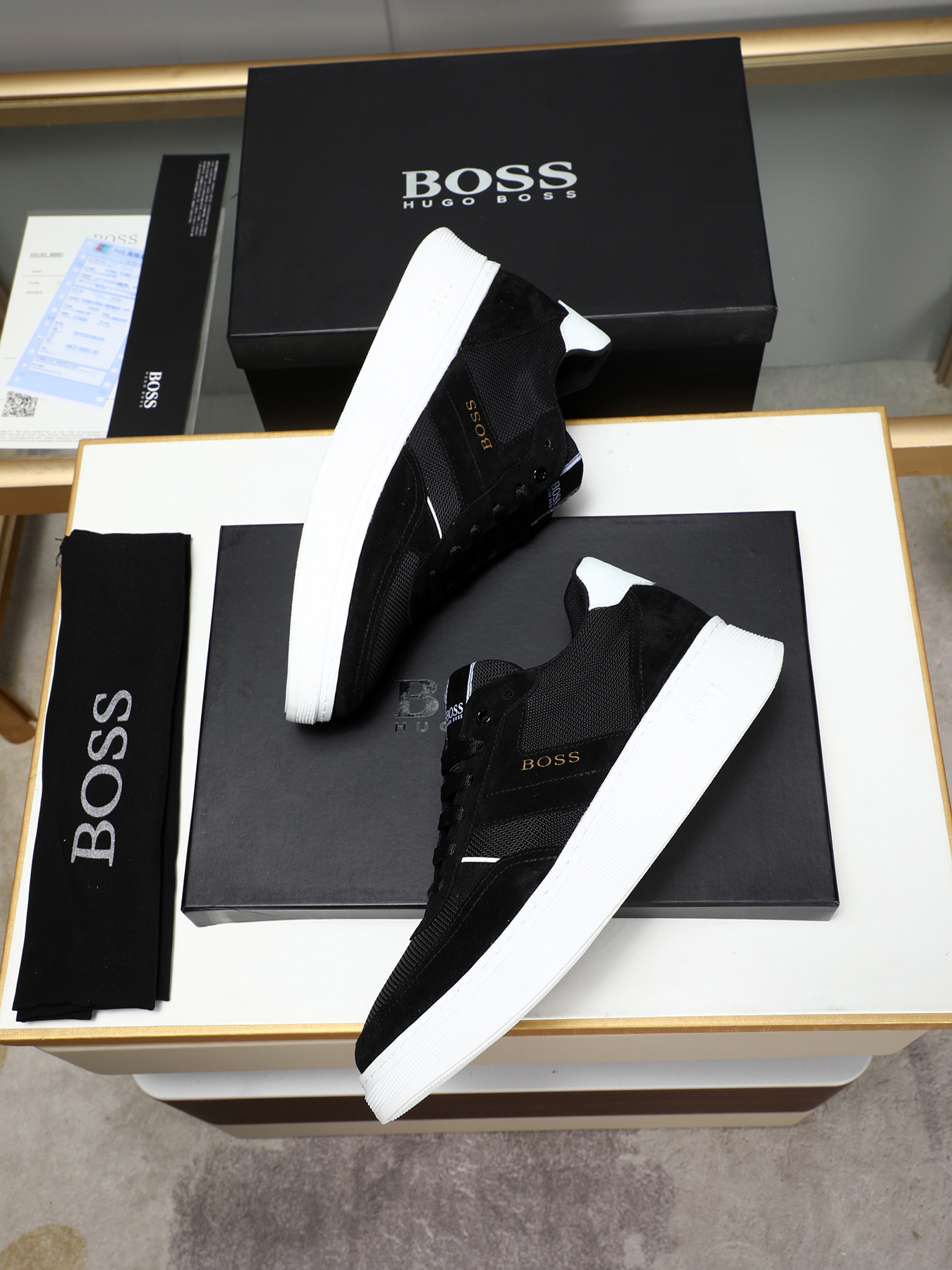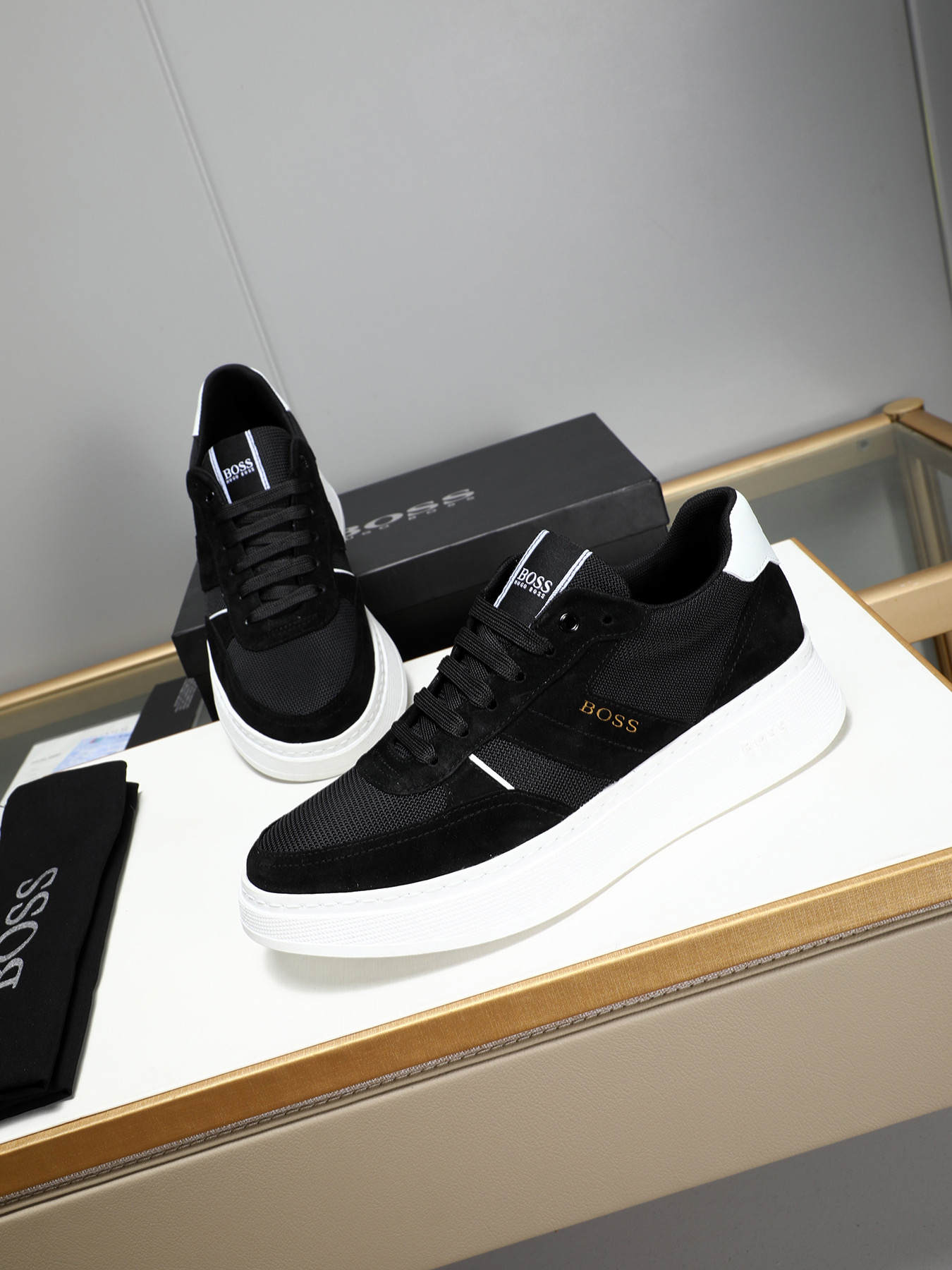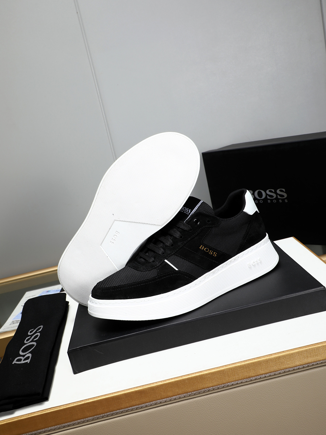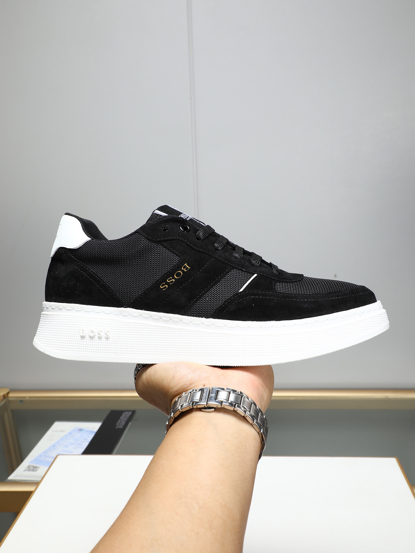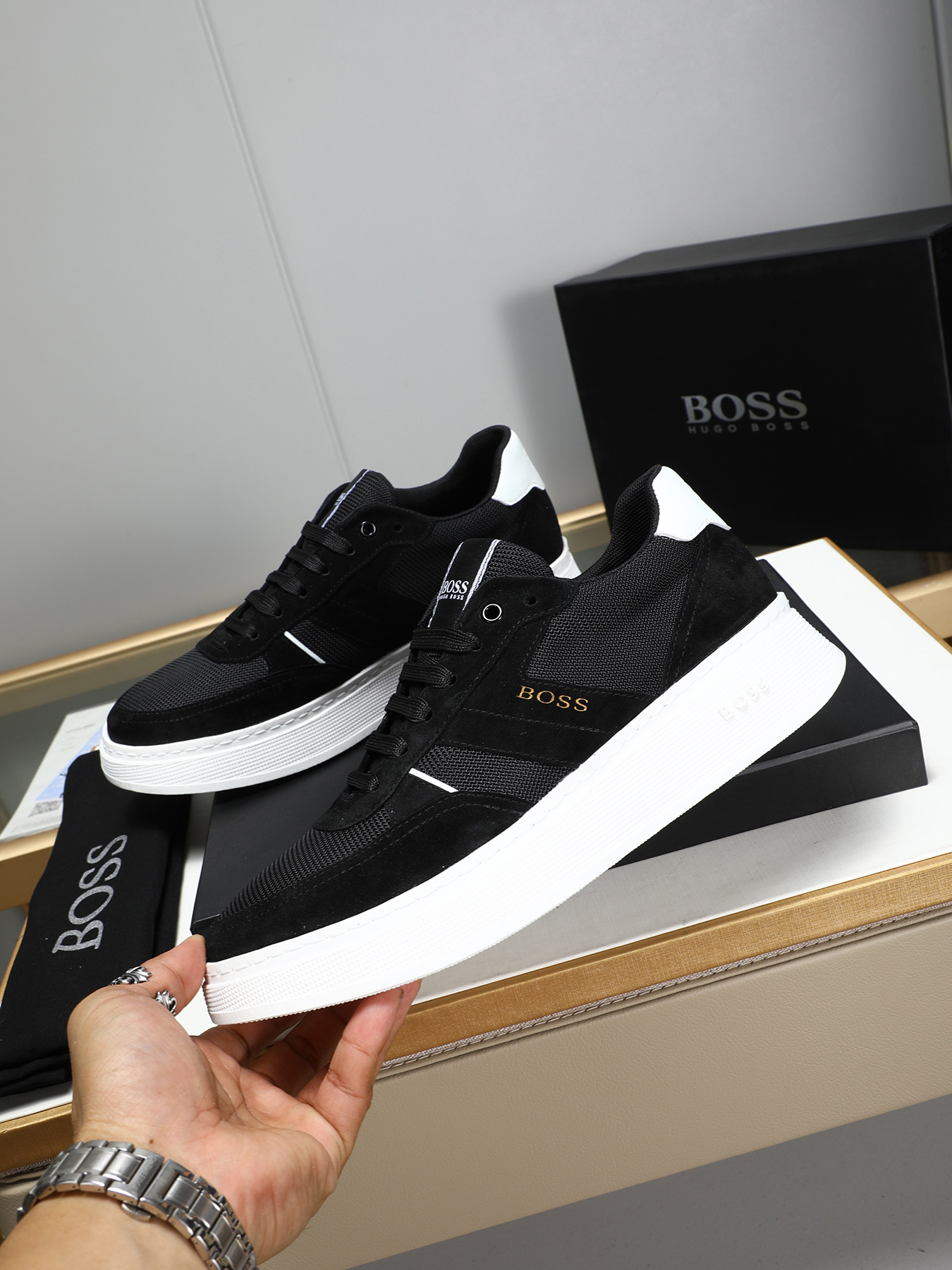 This shoes is AAAAA 1:1 quality (superb). Materials used are identical to the original ones. BOSS trademark marks are indistinguishable to the authentic. Photos take by actual shoes, what you receive will be 100% same with our photos.