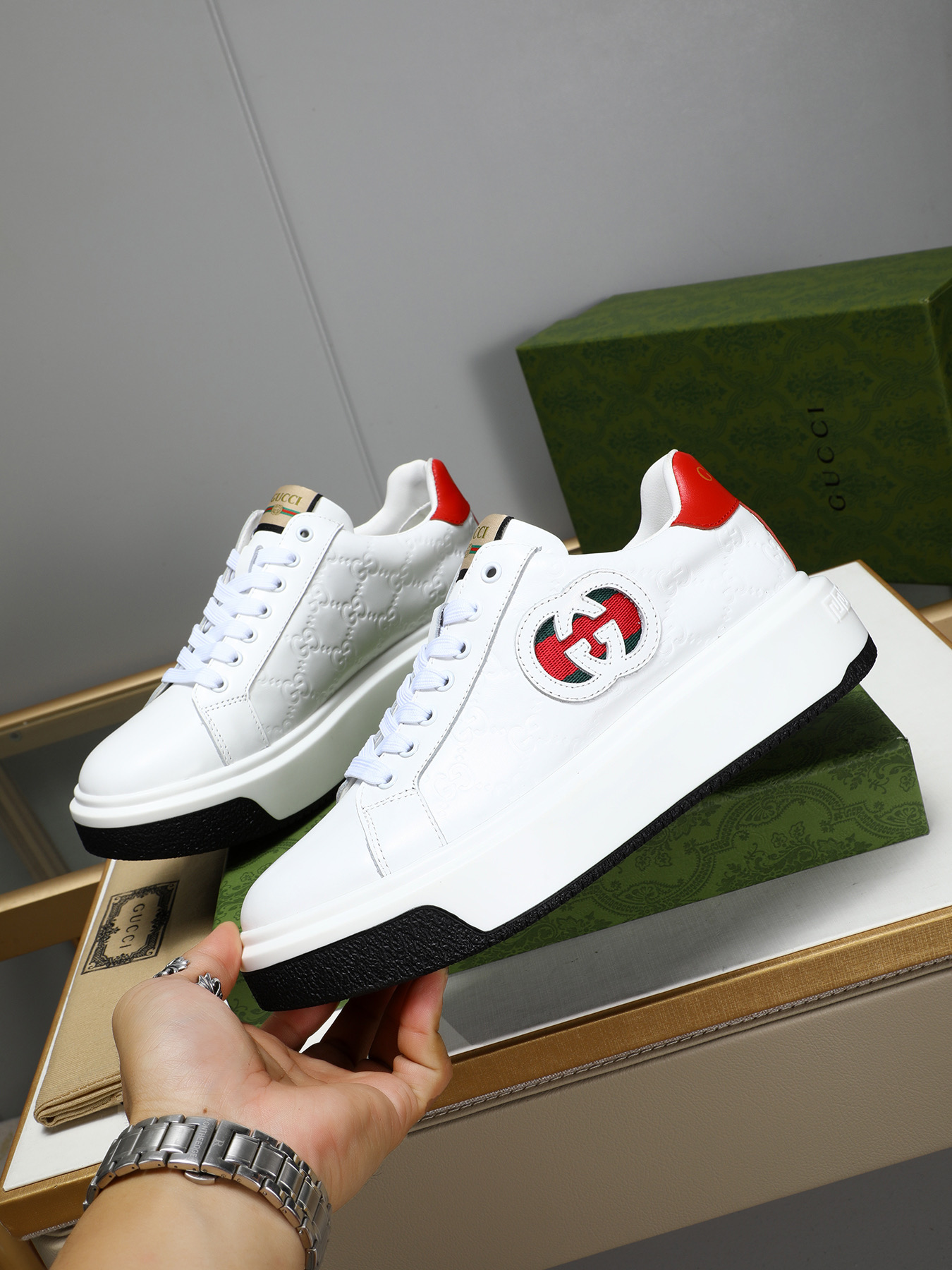 This shoes is AAAAA 1:1 quality (superb). Materials used are identical to the original ones. Gucci trademark marks are indistinguishable to the authentic. Photos take by actual shoes, what you receive will be 100% same with our photos.
