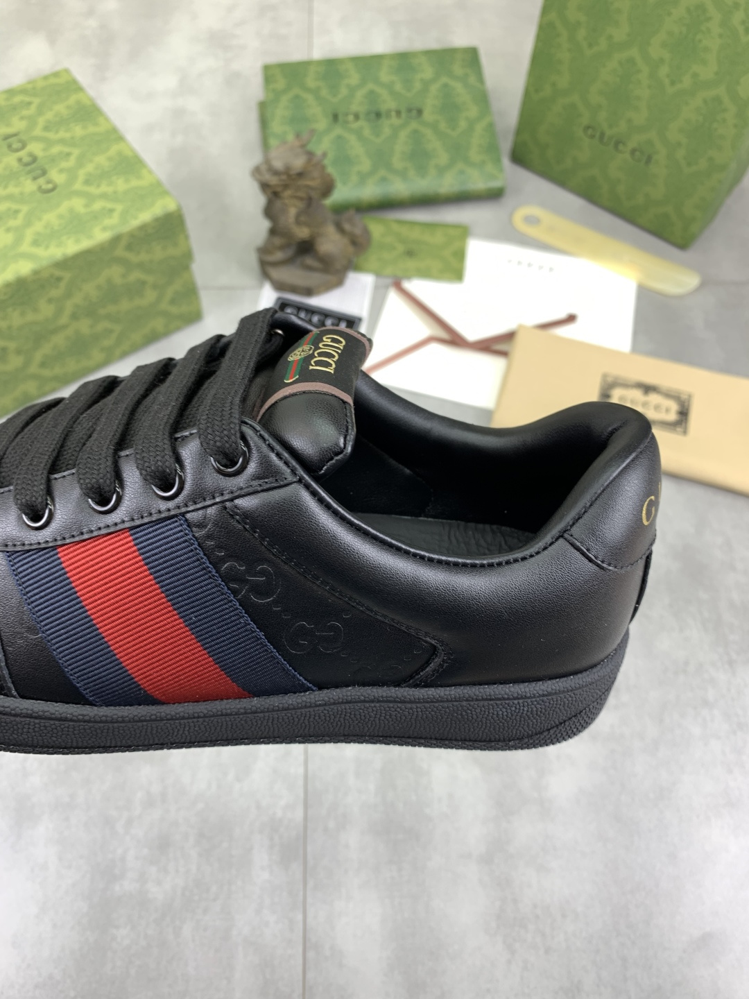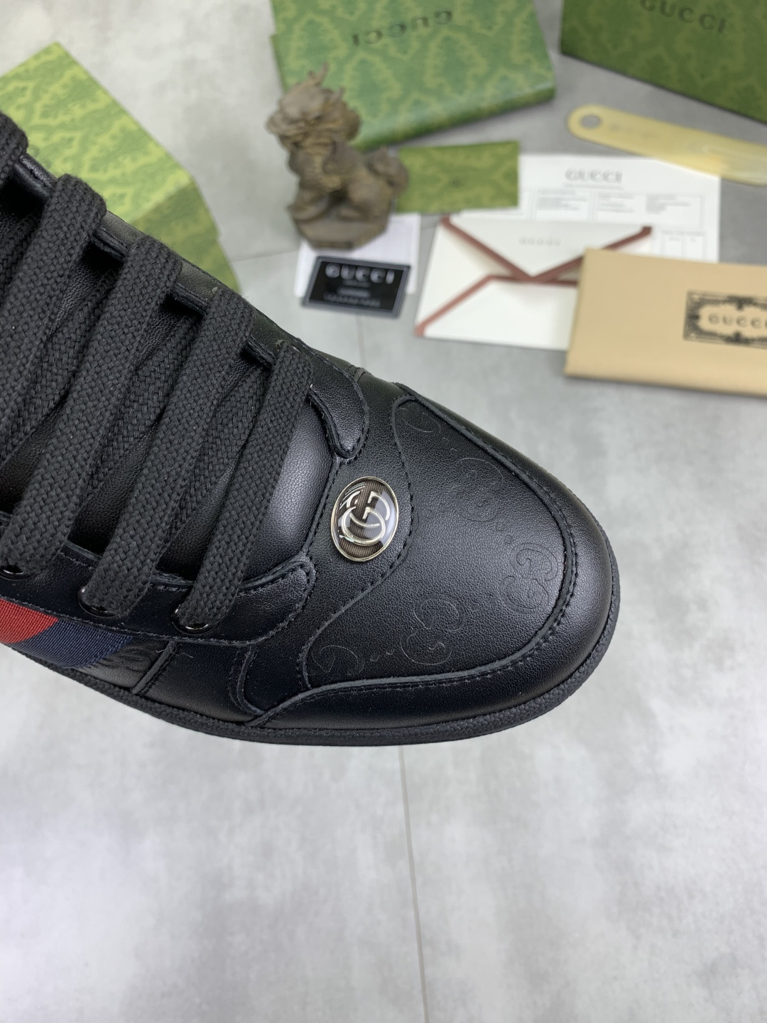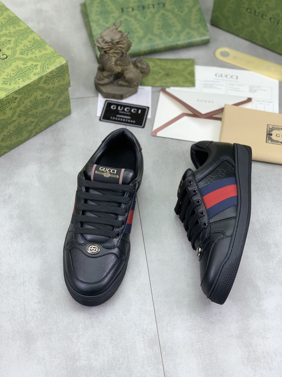 This shoes is AAAAA 1:1 quality (superb). Materials used are identical to the original ones. Gucci trademark marks are indistinguishable to the authentic. Photos take by actual shoes, what you receive will be 100% same with our photos.
