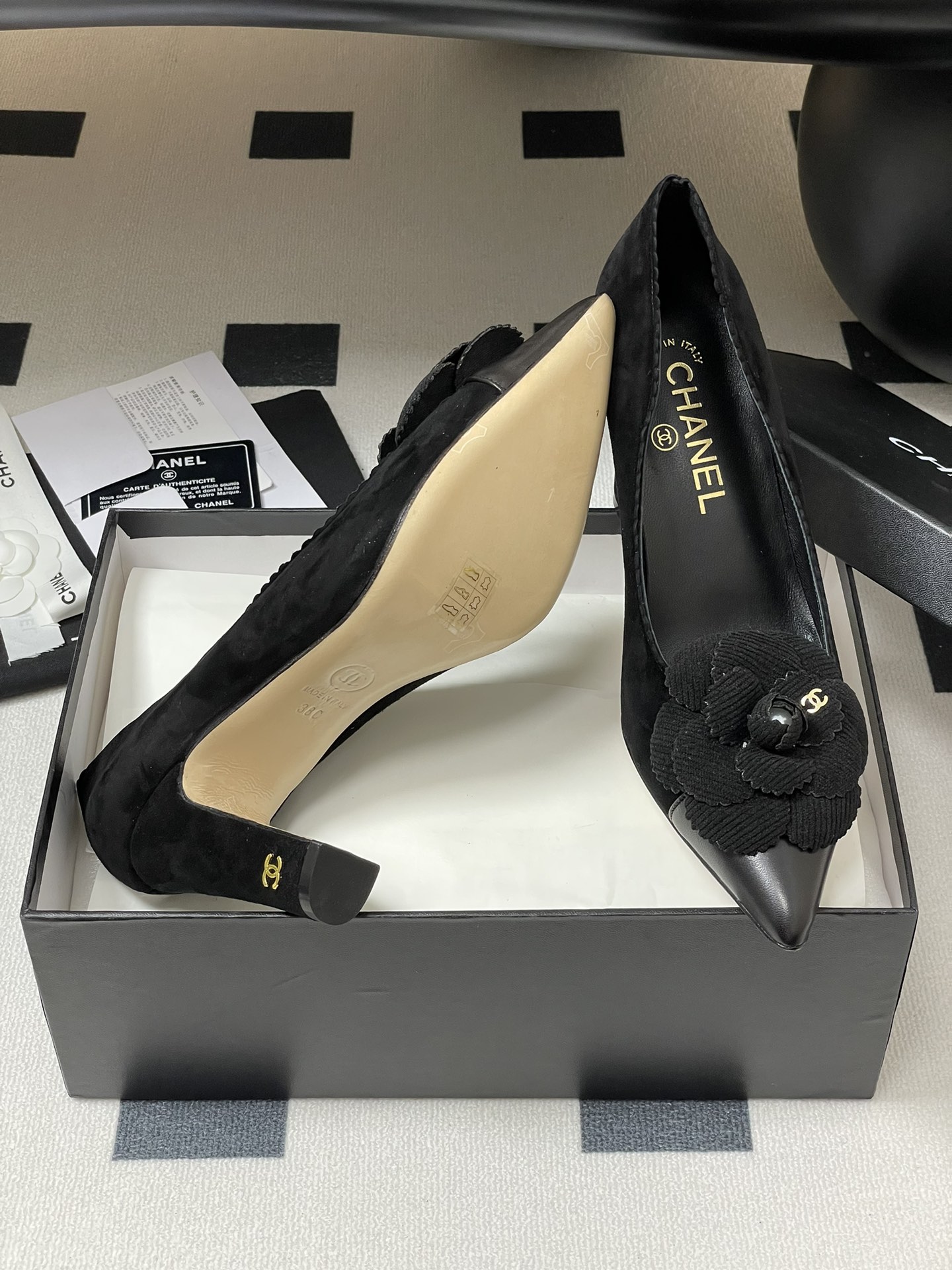 This shoes is AAAAA 1:1 quality (superb). Materials used are identical to the original ones. Chanel trademark marks are indistinguishable to the authentic. Photos take by actual shoes, what you receive will be 100% same with our photos.