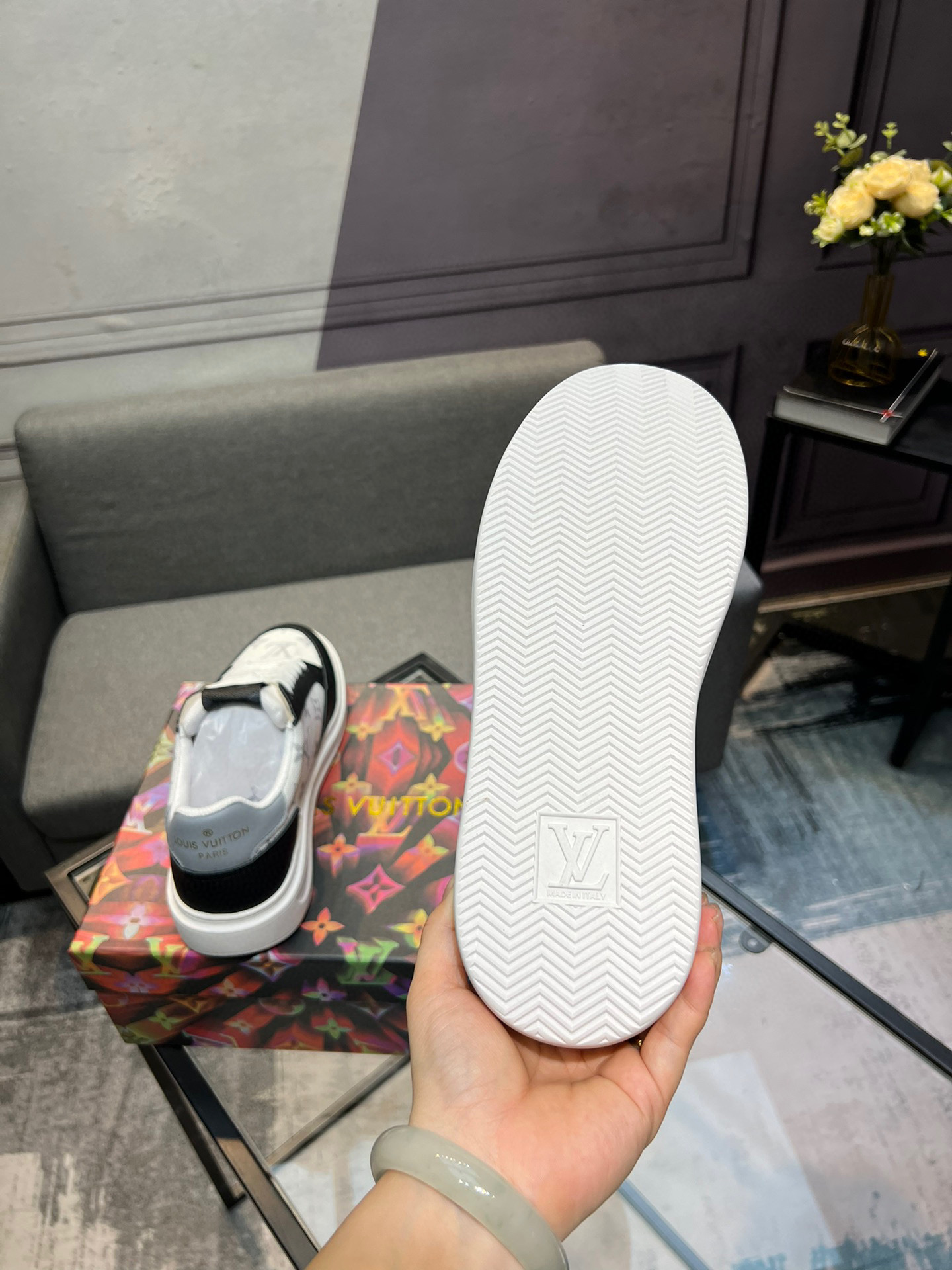 This shoes is AAAAA 1:1 quality (superb). Materials used are identical to the original ones. Louis Vuitton trademark marks are indistinguishable to the authentic. Photos take by actual shoes, what you receive will be 100% same with our photos.
