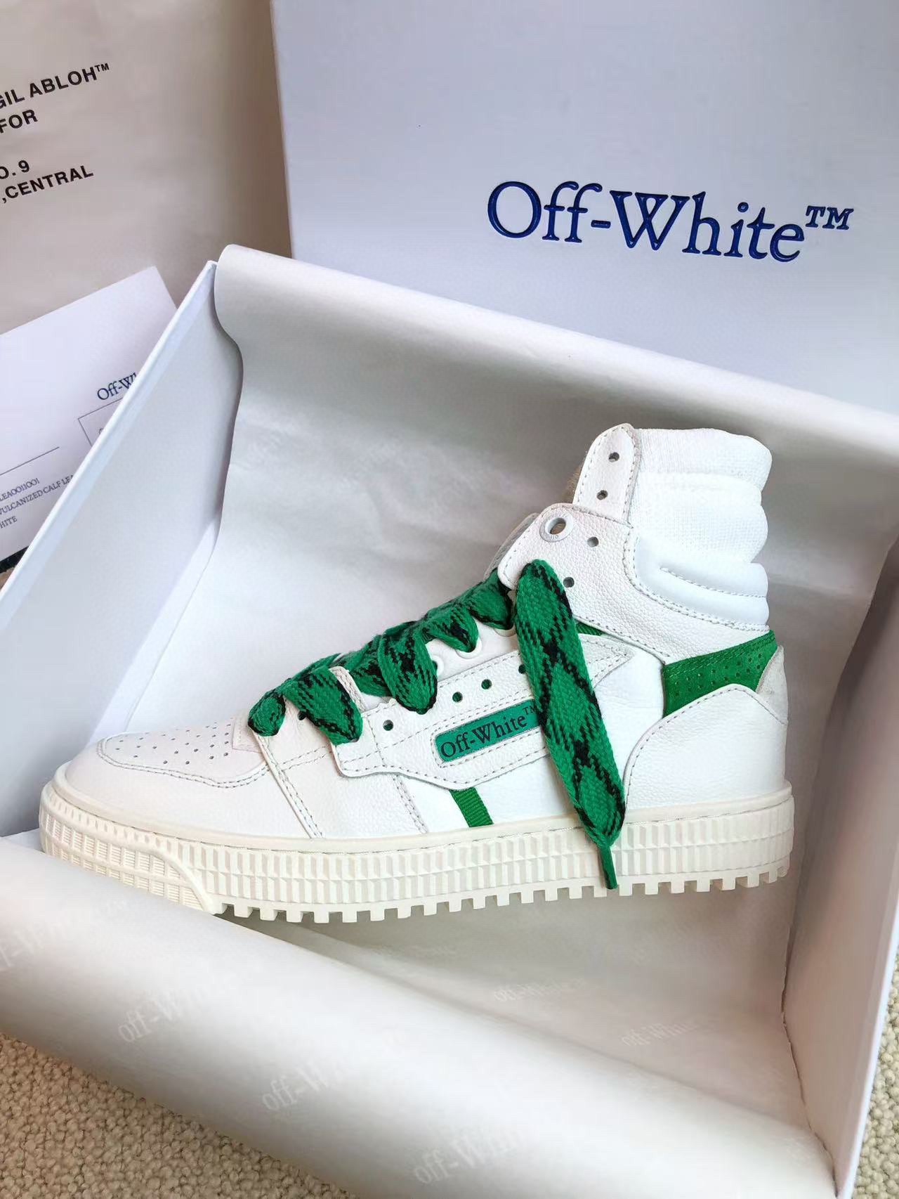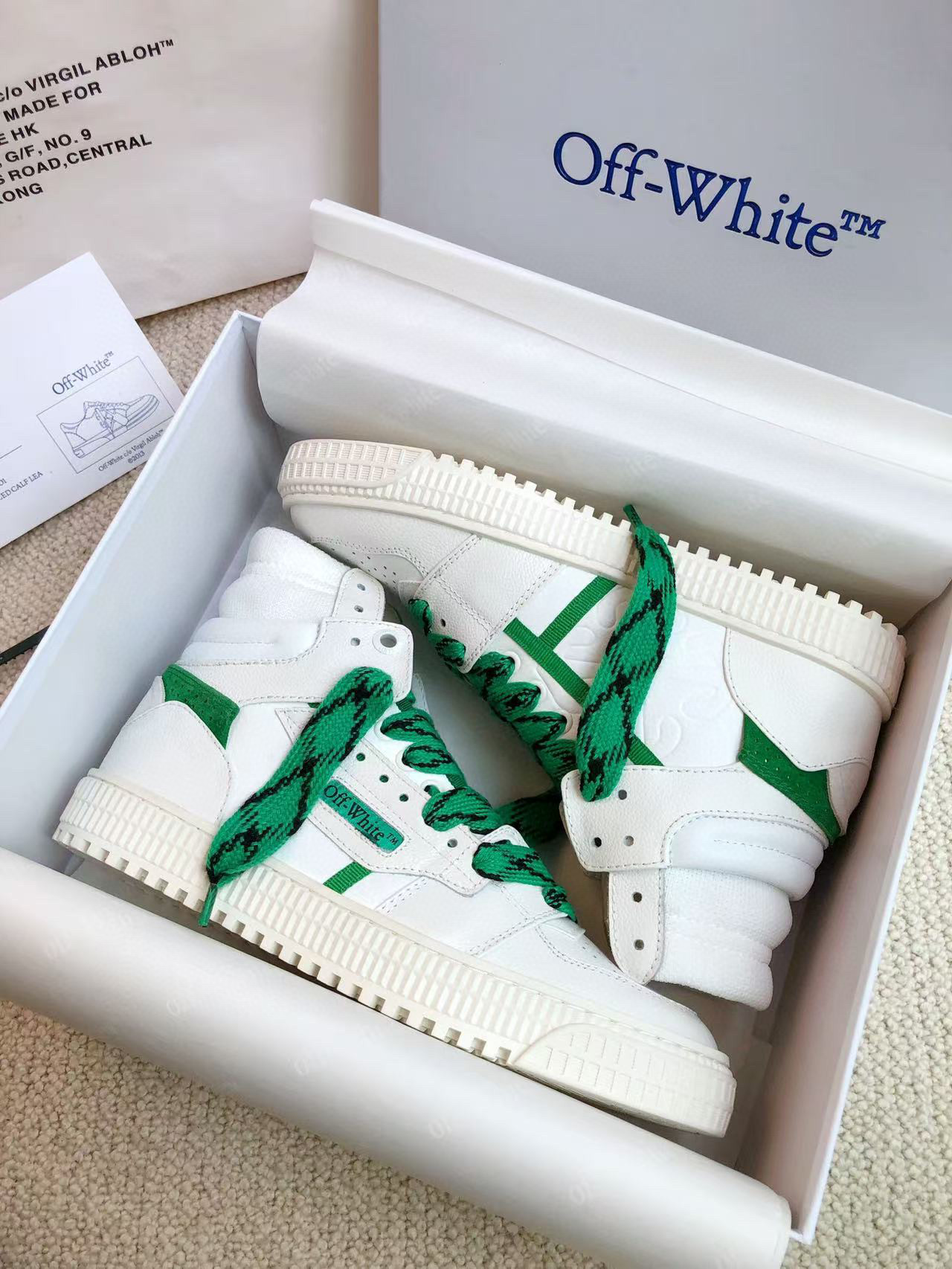 This shoes is AAAAA 1:1 quality (superb). Materials used are identical to the original ones. OFF WHITE trademark marks are indistinguishable to the authentic. Photos take by actual shoes, what you receive will be 100% same with our photos.