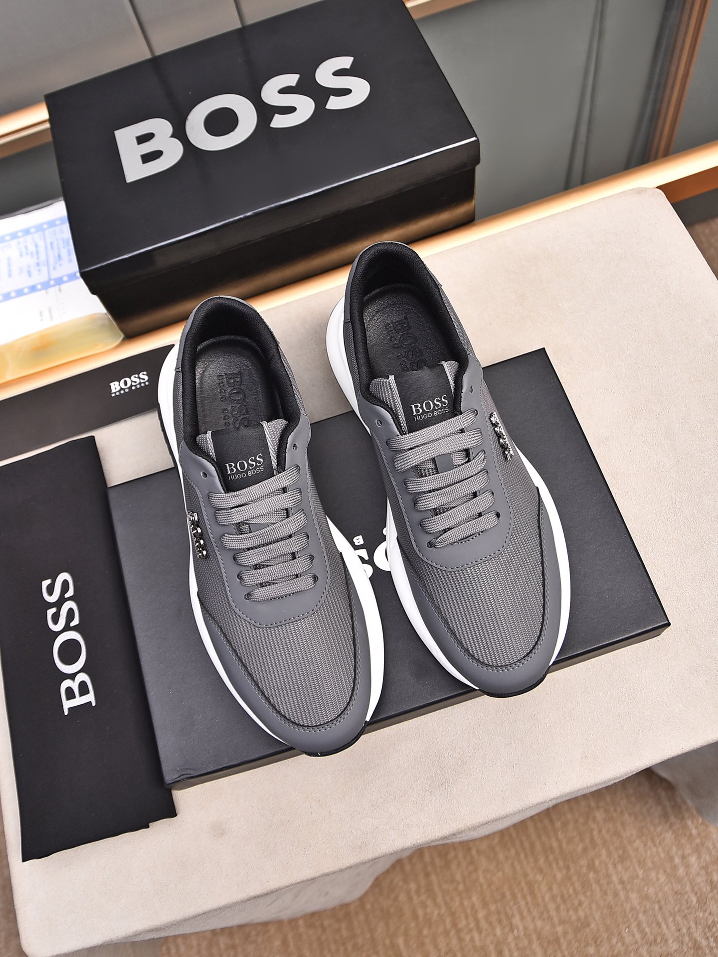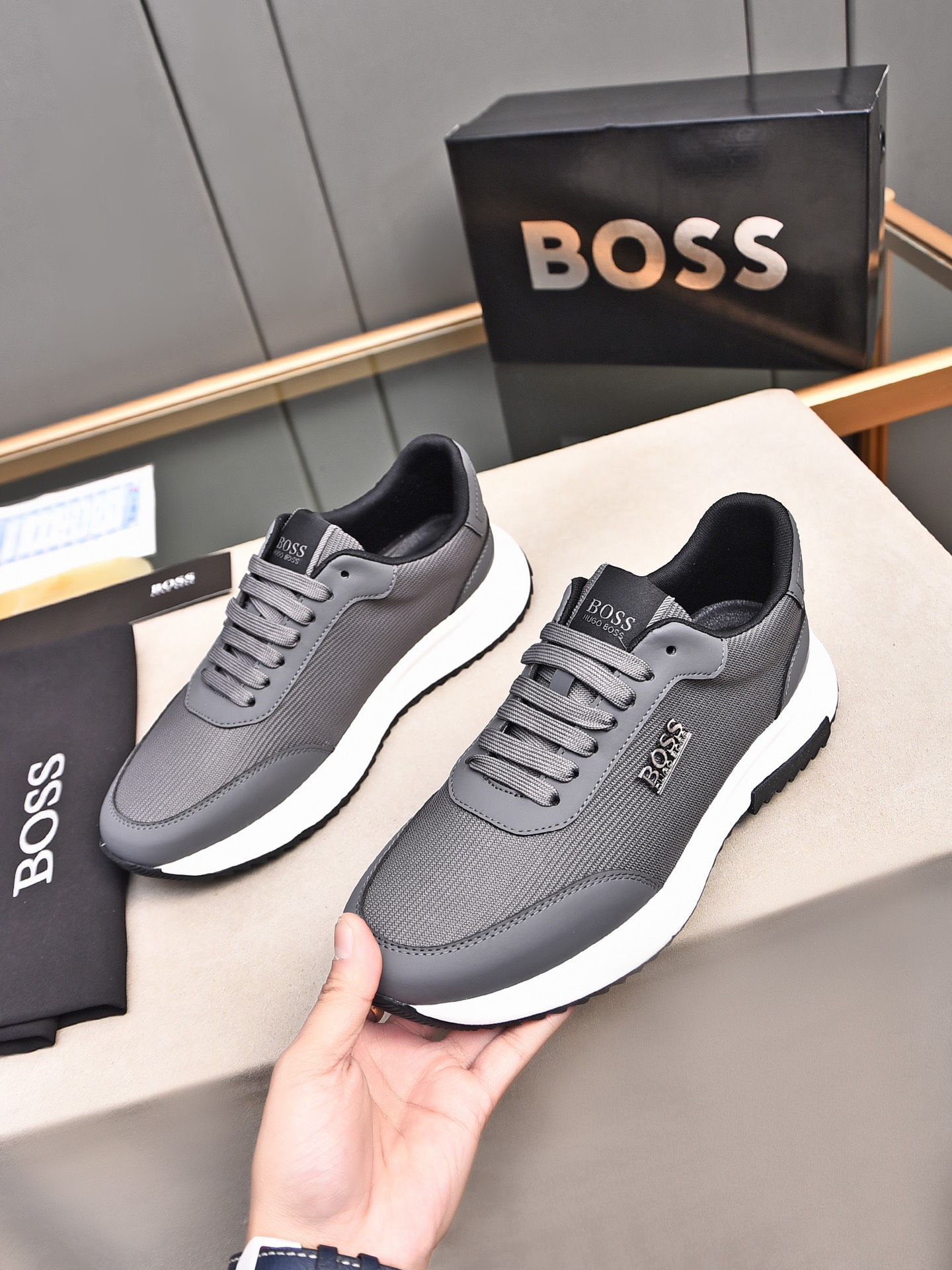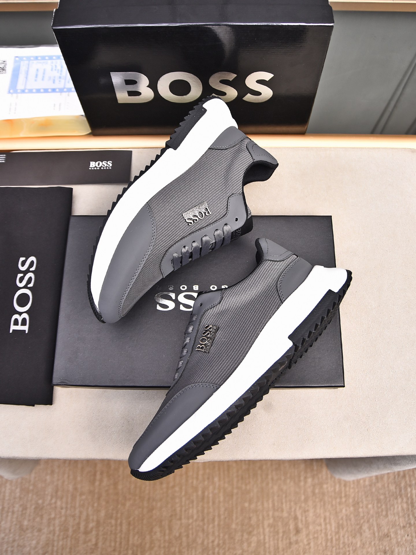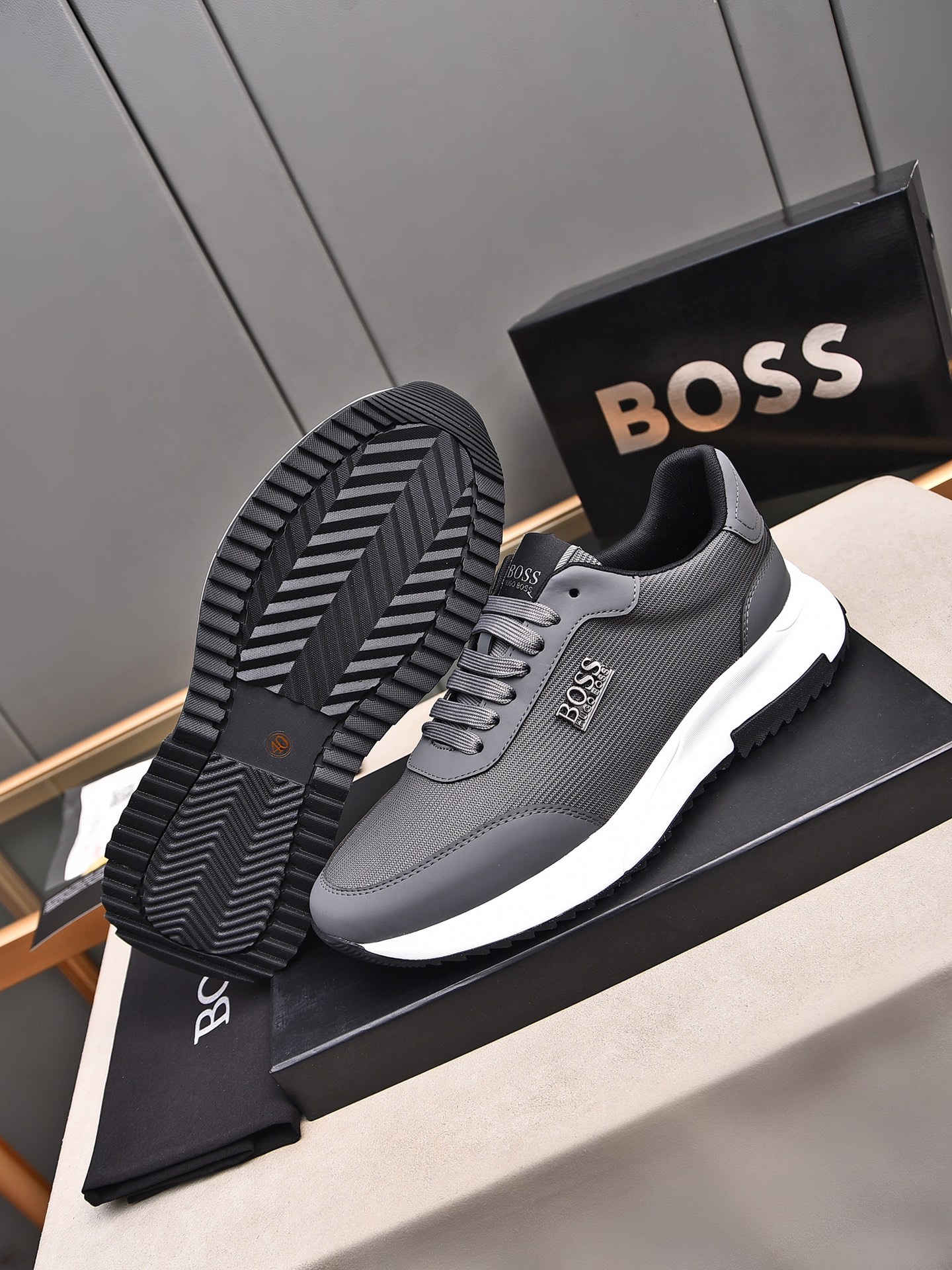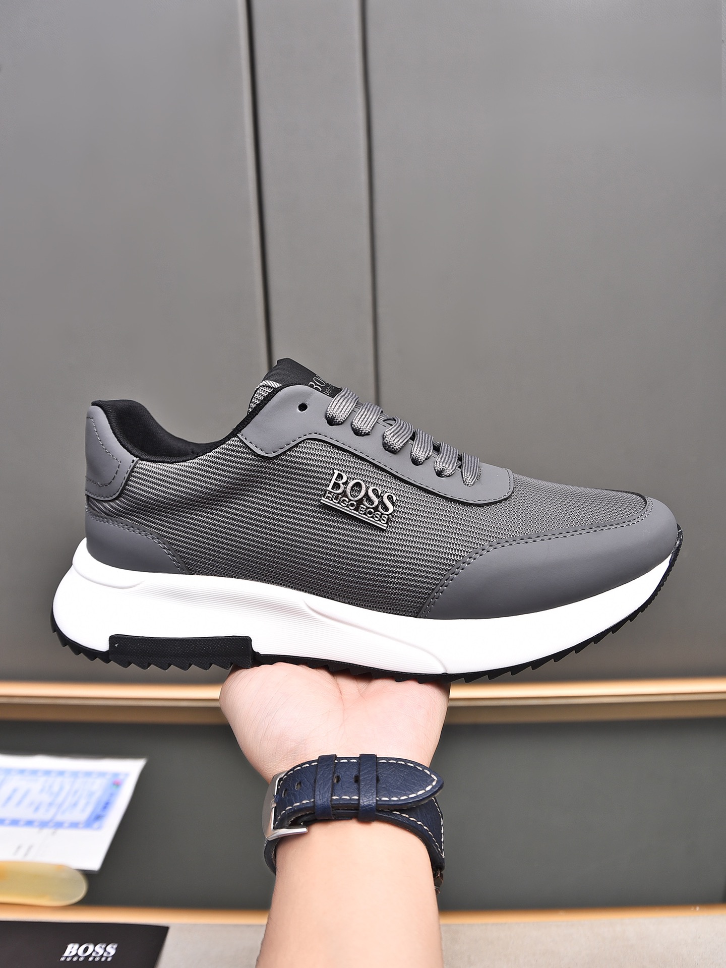 This shoes is AAAAA 1:1 quality (superb). Materials used are identical to the original ones. BOSS trademark marks are indistinguishable to the authentic. Photos take by actual shoes, what you receive will be 100% same with our photos.