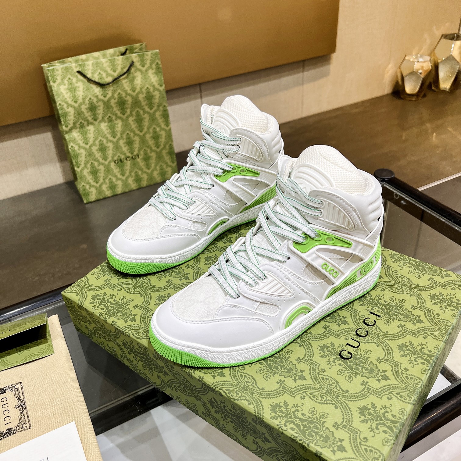 This shoes is AAAAA 1:1 quality (superb). Materials used are identical to the original ones. Gucci trademark marks are indistinguishable to the authentic. Photos take by actual shoes, what you receive will be 100% same with our photos.