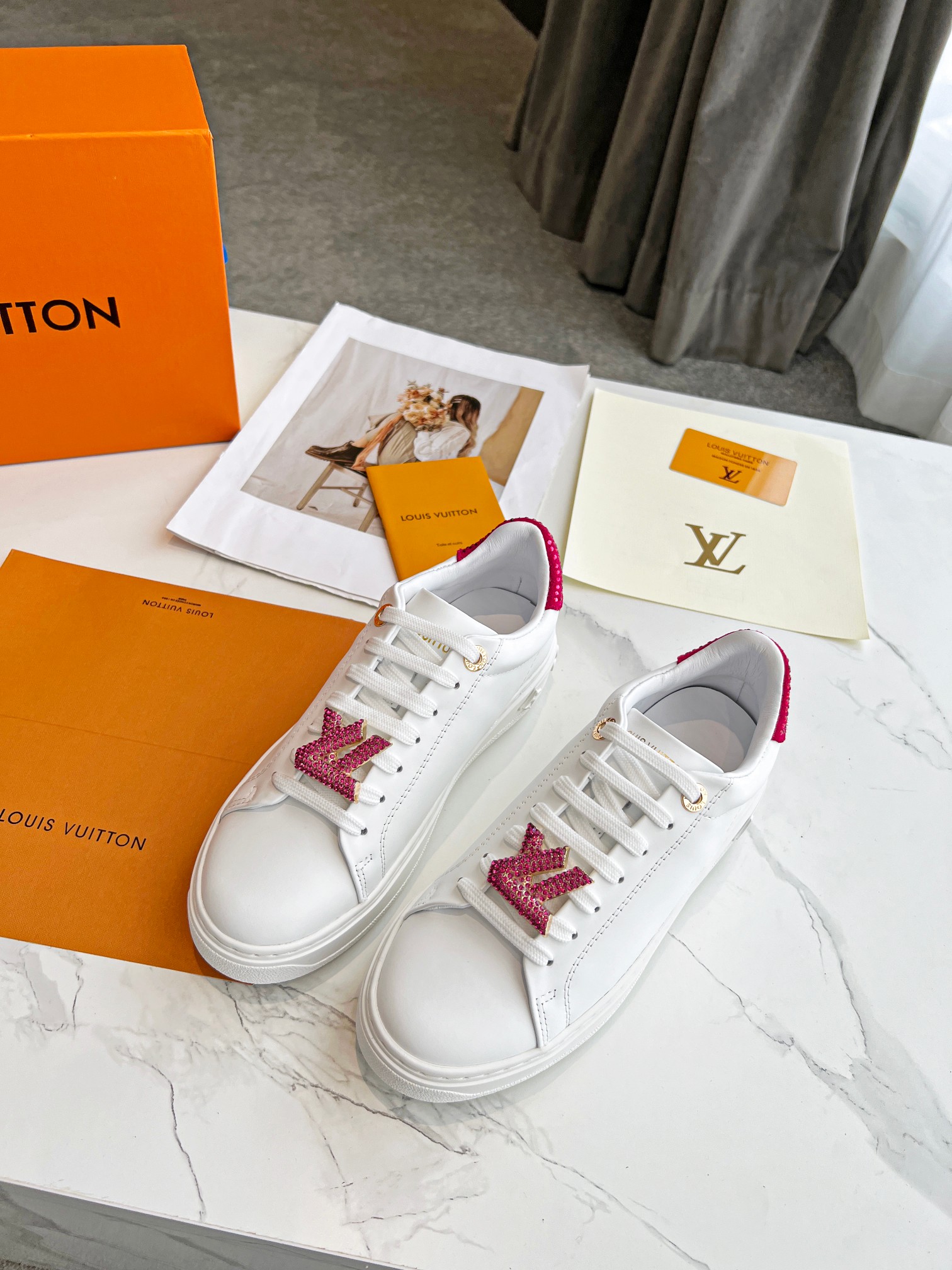 This shoes is AAAAA 1:1 quality (superb). Materials used are identical to the original ones. Louis Vuitton trademark marks are indistinguishable to the authentic. Photos take by actual shoes, what you receive will be 100% same with our photos.