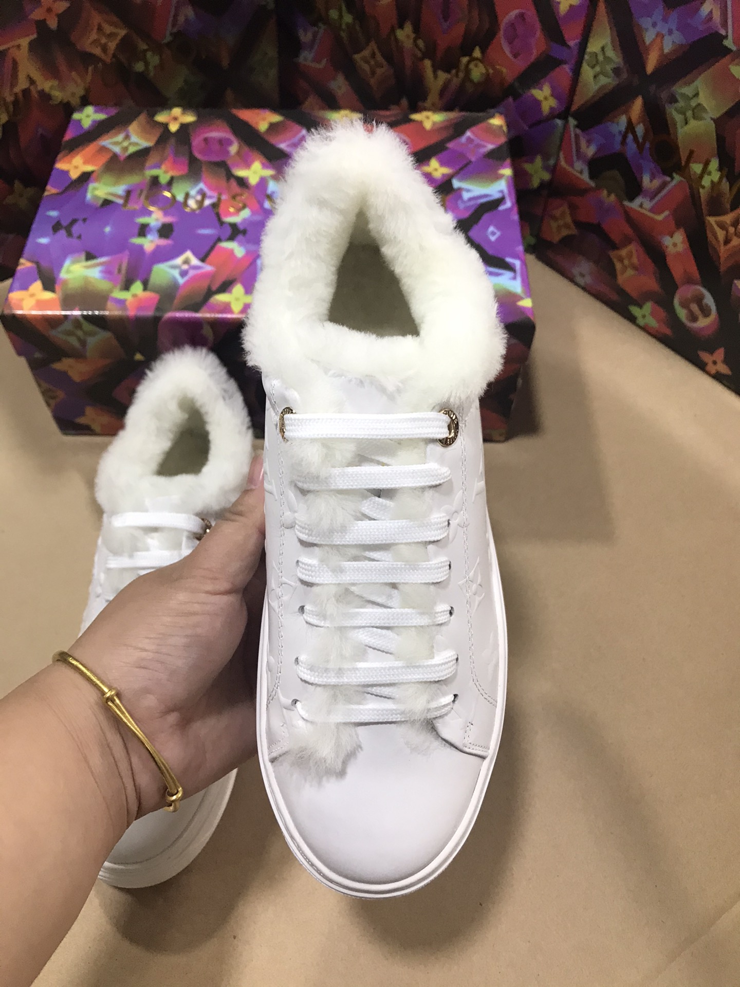This shoes is AAAAA 1:1 quality (superb). Materials used are identical to the original ones. Louis Vuitton trademark marks are indistinguishable to the authentic. Photos take by actual shoes, what you receive will be 100% same with our photos.