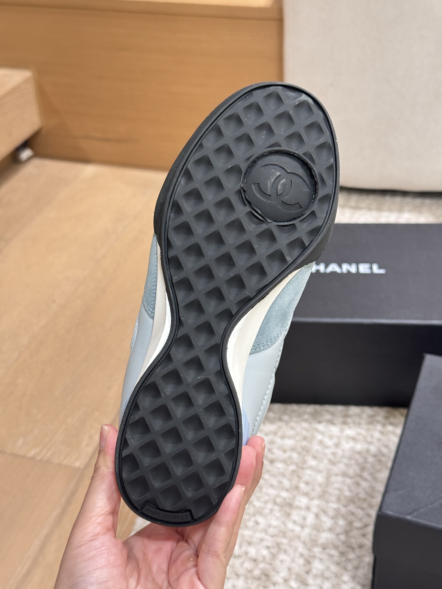 This shoes is AAAAA 1:1 quality (superb). Materials used are identical to the original ones. Chanel trademark marks are indistinguishable to the authentic. Photos take by actual shoes, what you receive will be 100% same with our photos.