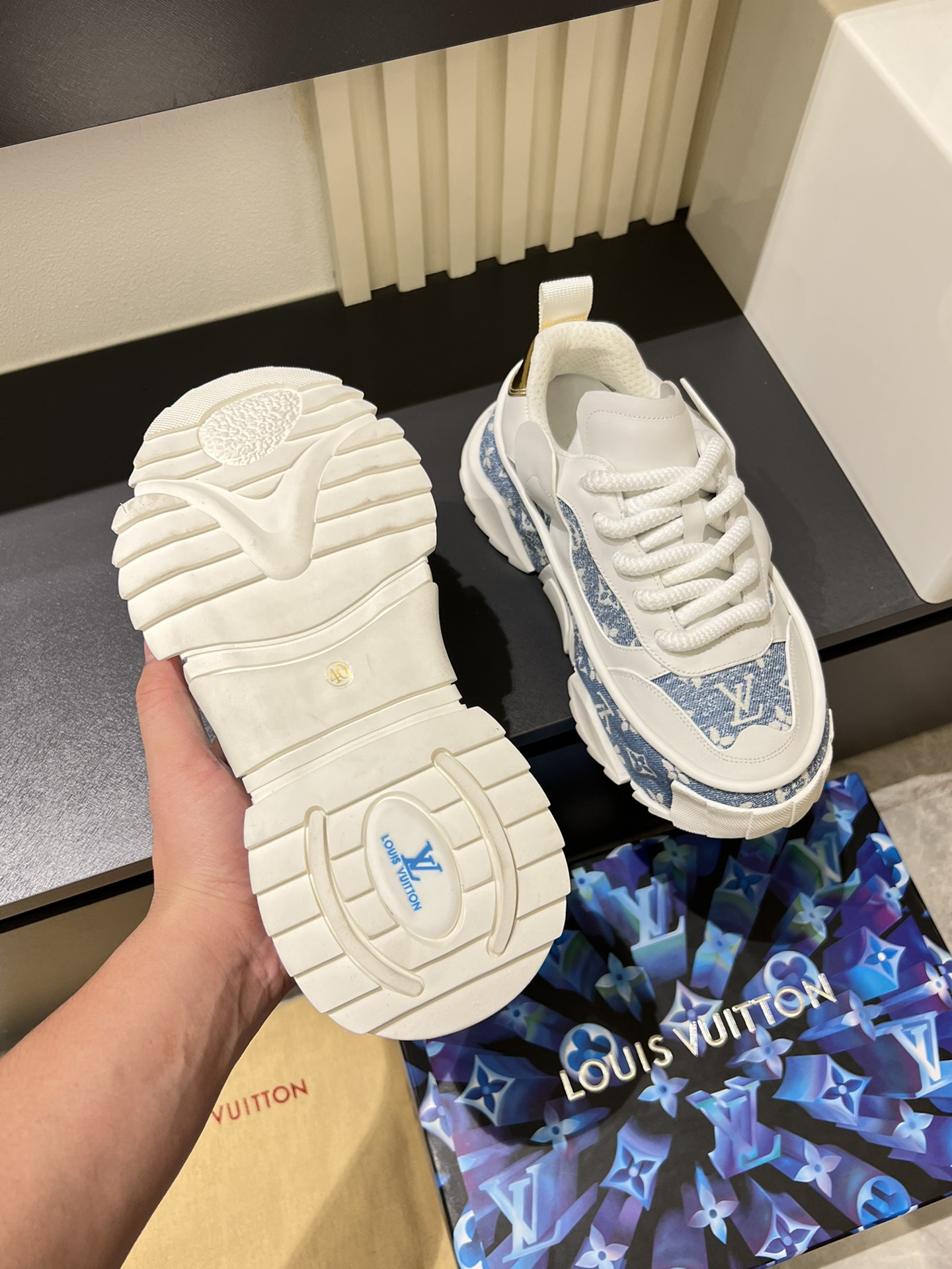 This shoes is AAAAA 1:1 quality (superb). Materials used are identical to the original ones. Louis Vuitton trademark marks are indistinguishable to the authentic. Photos take by actual shoes, what you receive will be 100% same with our photos.