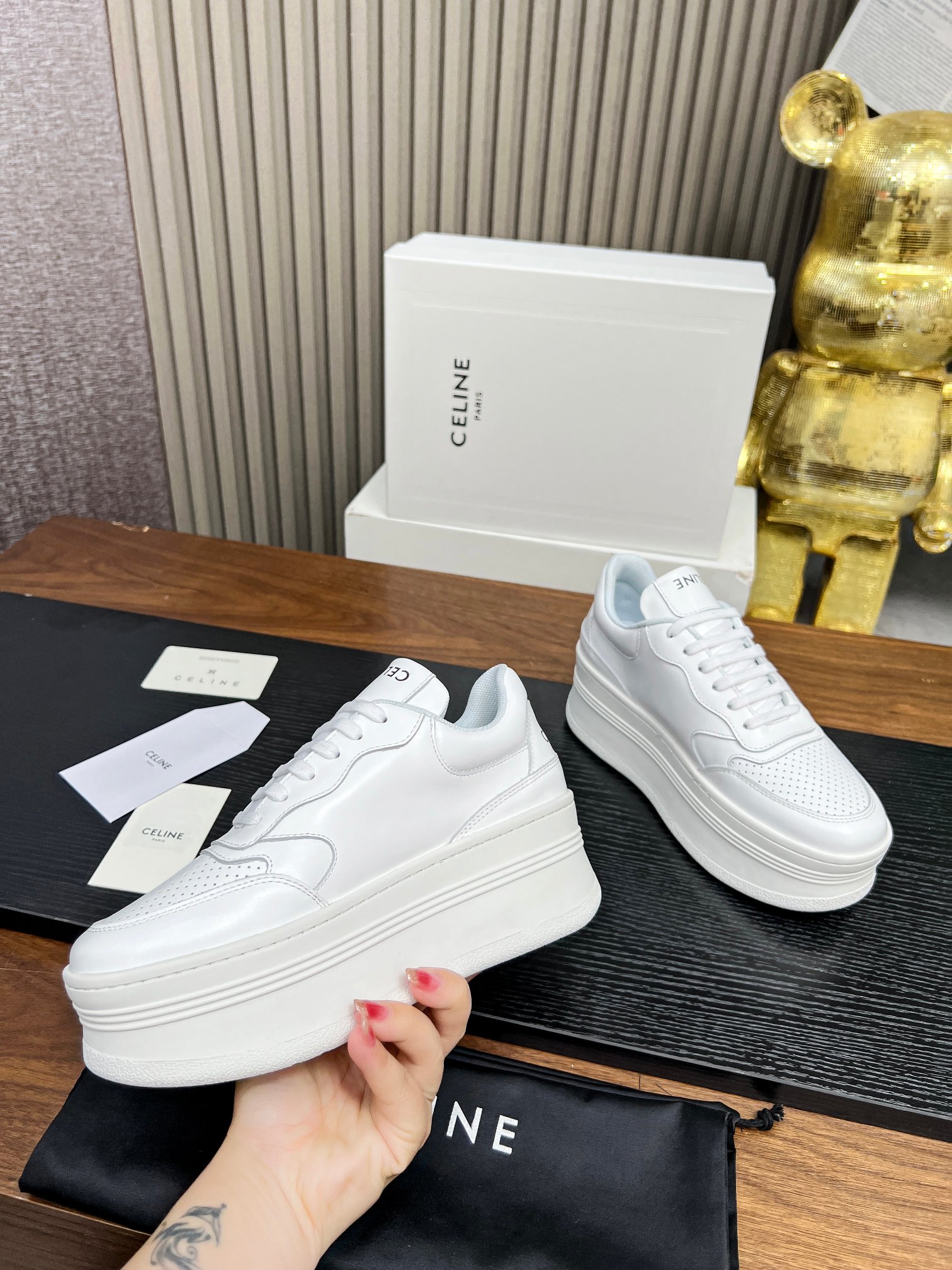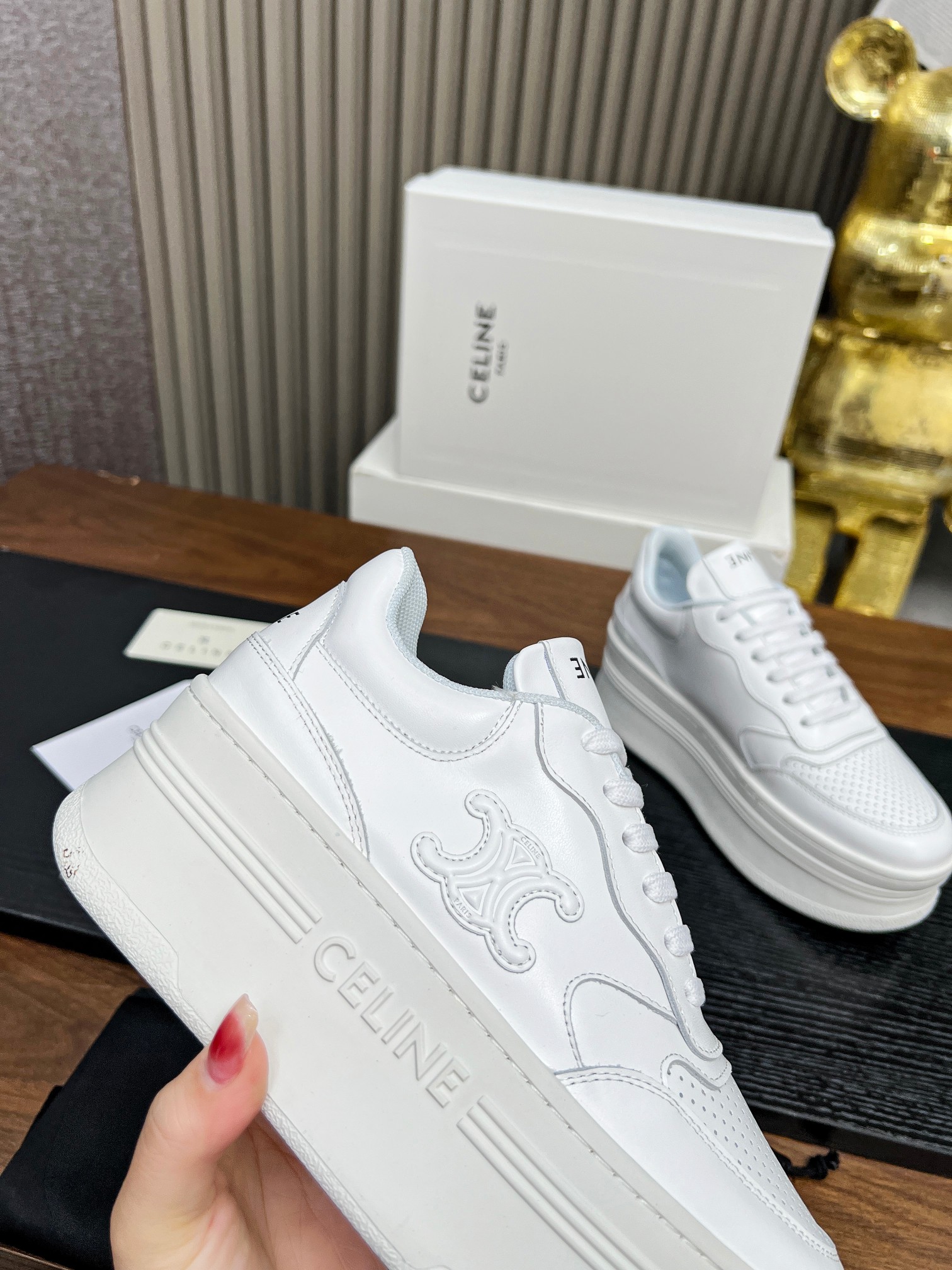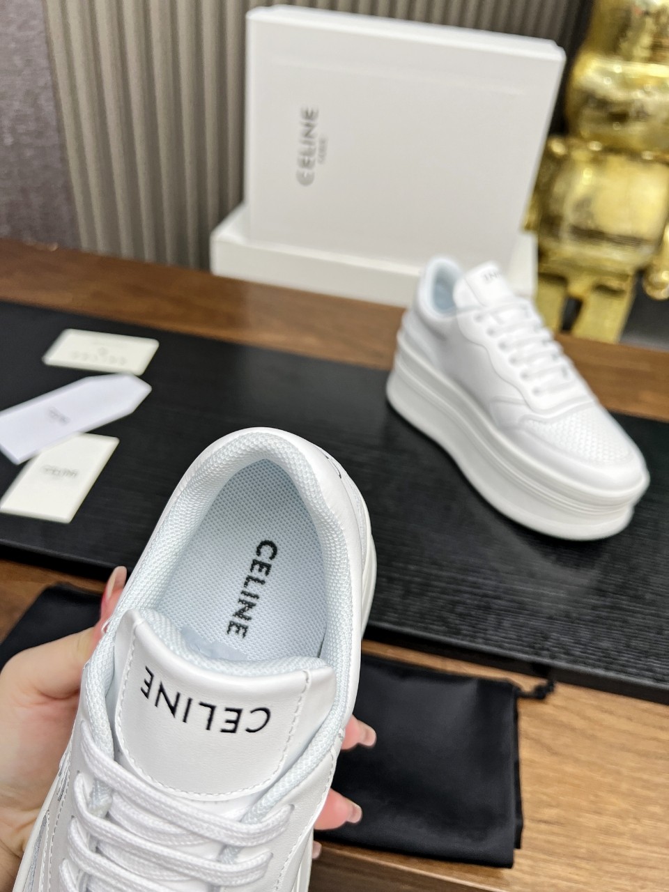 This shoes is AAAAA 1:1 quality (superb). Materials used are identical to the original ones. Celine trademark marks are indistinguishable to the authentic. Photos take by actual shoes, what you receive will be 100% same with our photos.