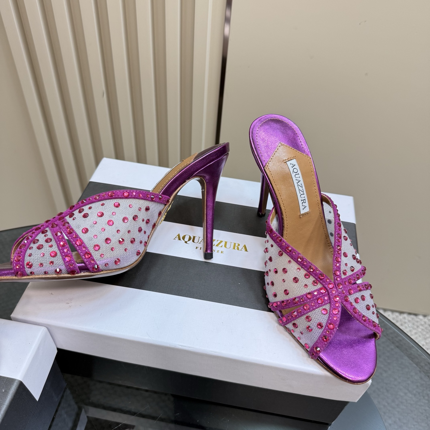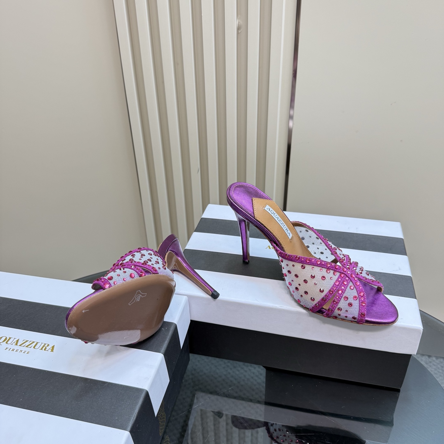 This shoes is AAAAA 1:1 quality (superb). Materials used are identical to the original ones. Aquazzura trademark marks are indistinguishable to the authentic. Photos take by actual shoes, what you receive will be 100% same with our photos.