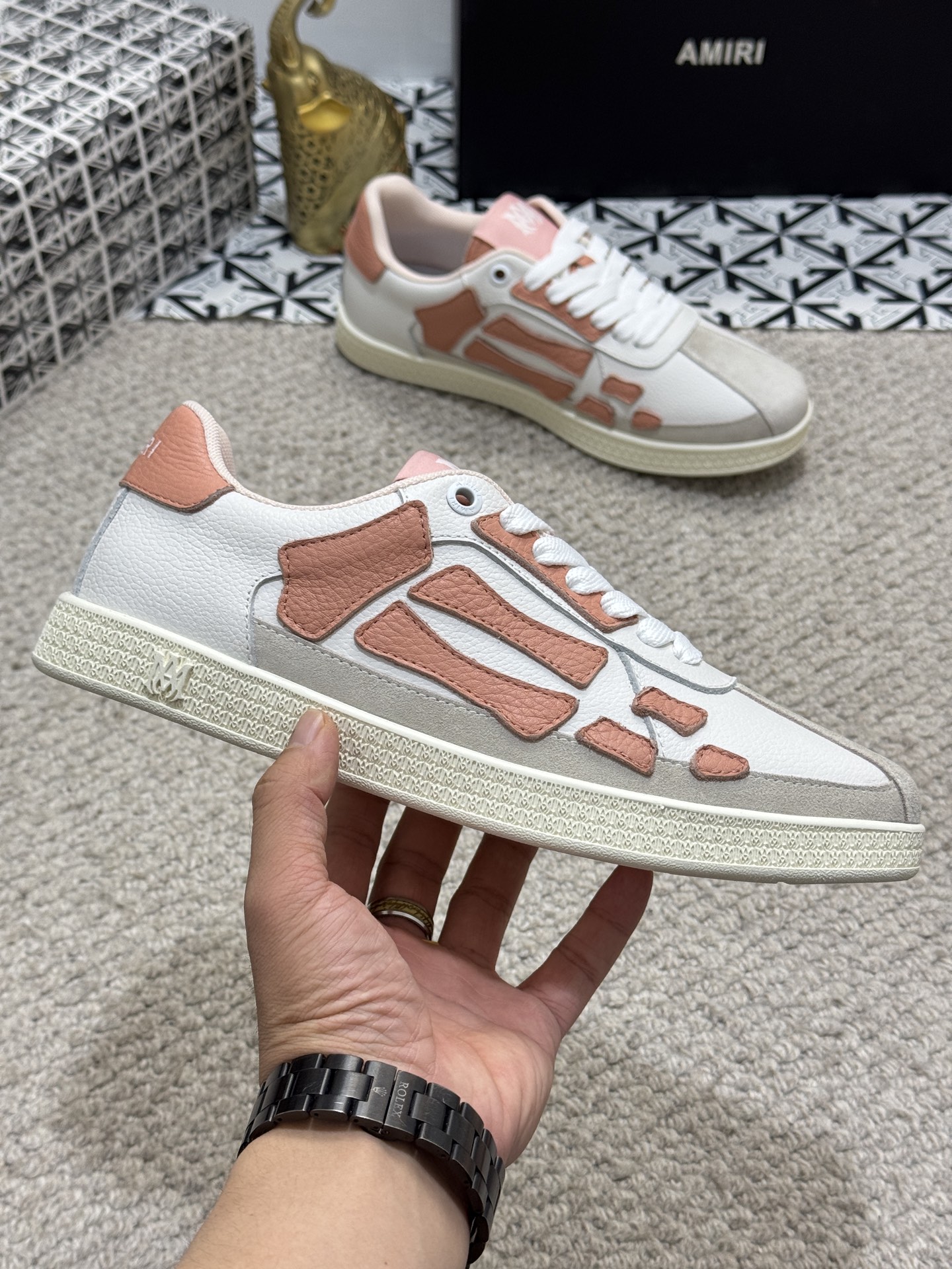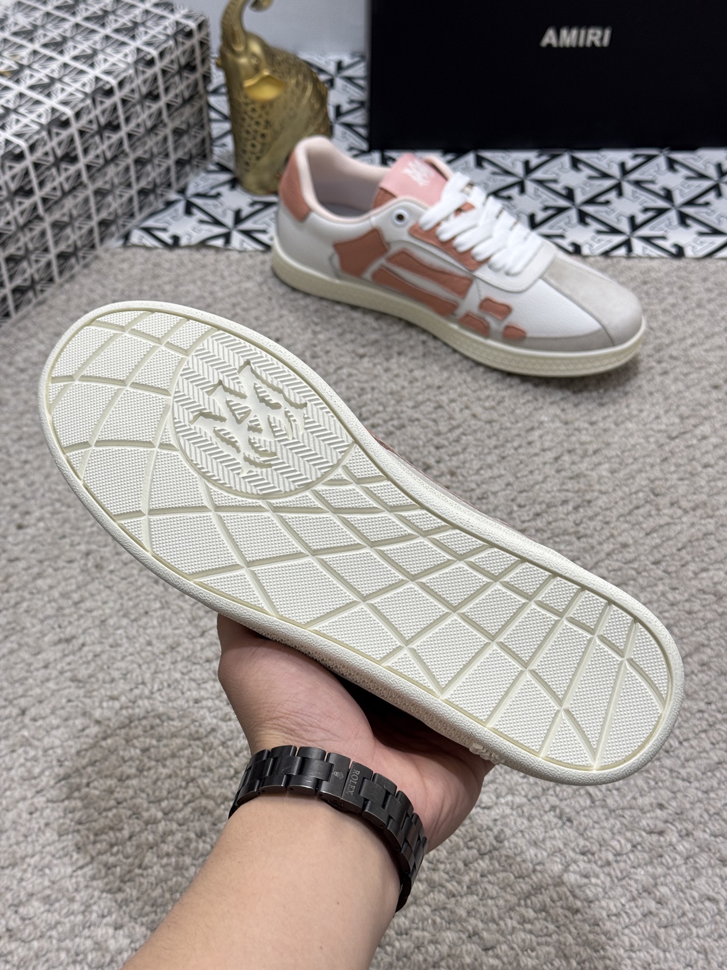 This shoes is AAAAA 1:1 quality (superb). Materials used are identical to the original ones. AMIRI trademark marks are indistinguishable to the authentic. Photos take by actual shoes, what you receive will be 100% same with our photos.
