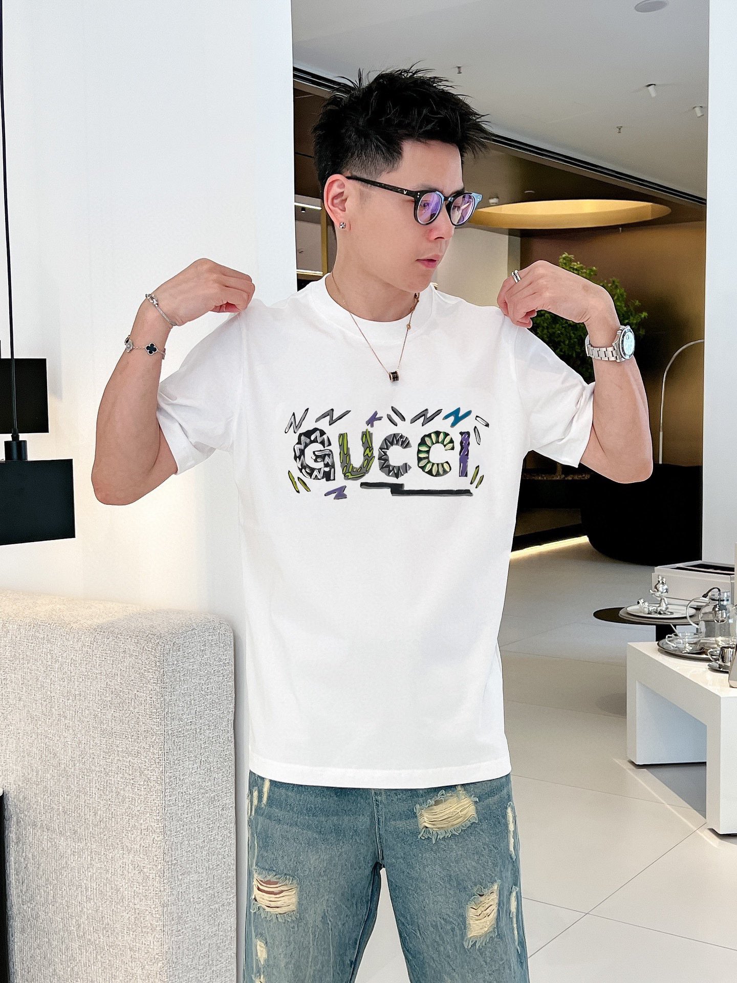 This clothes is AAAAA 1:1 quality (superb). Materials used are identical to the original ones. Gucci trademark marks are indistinguishable to the authentic. Photos take by actual clothes, what you receive will be 100% same with our photos.