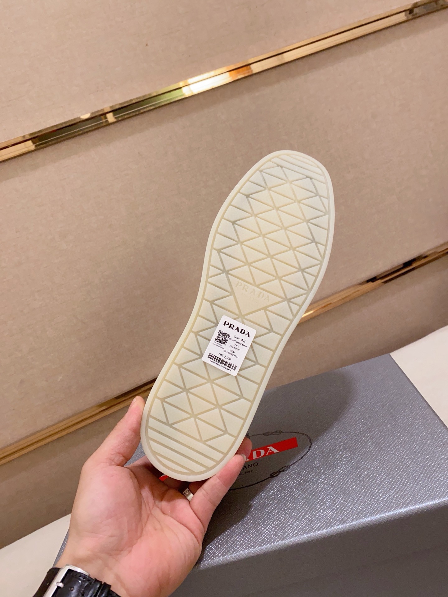 This shoes is AAAAA 1:1 quality (superb). Materials used are identical to the original ones. Prada trademark marks are indistinguishable to the authentic. Photos take by actual shoes, what you receive will be 100% same with our photos.