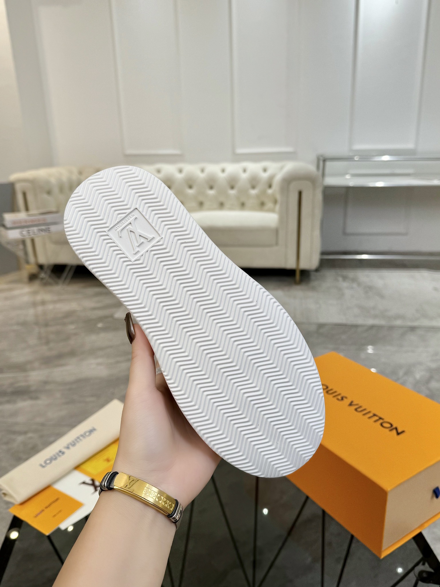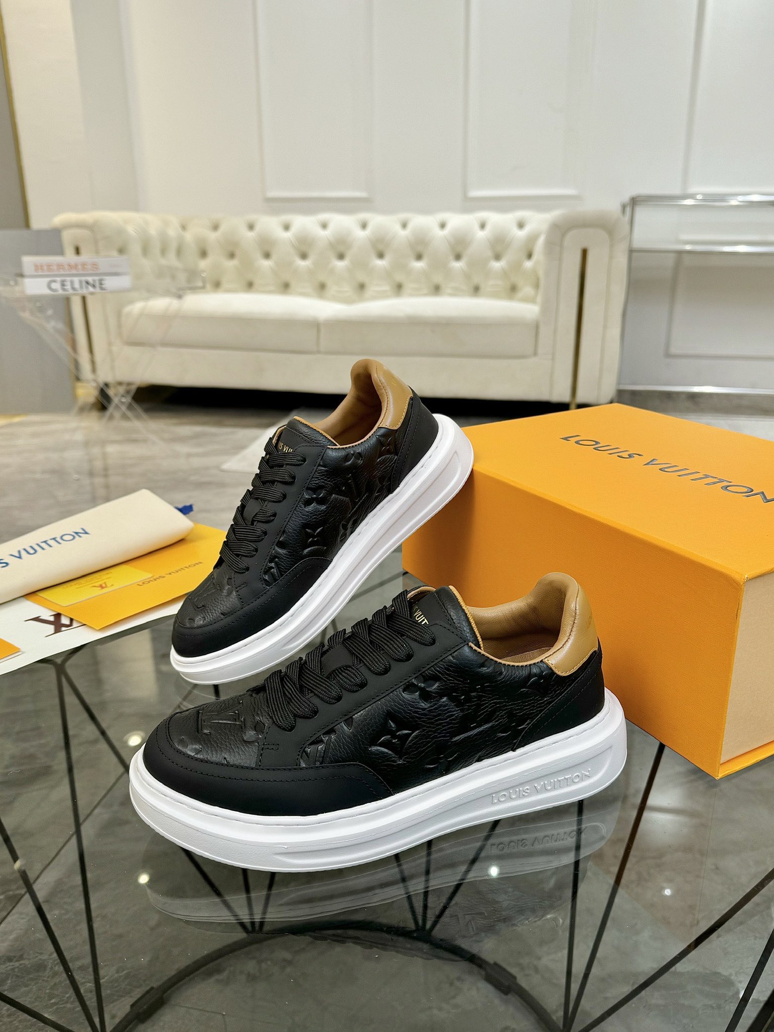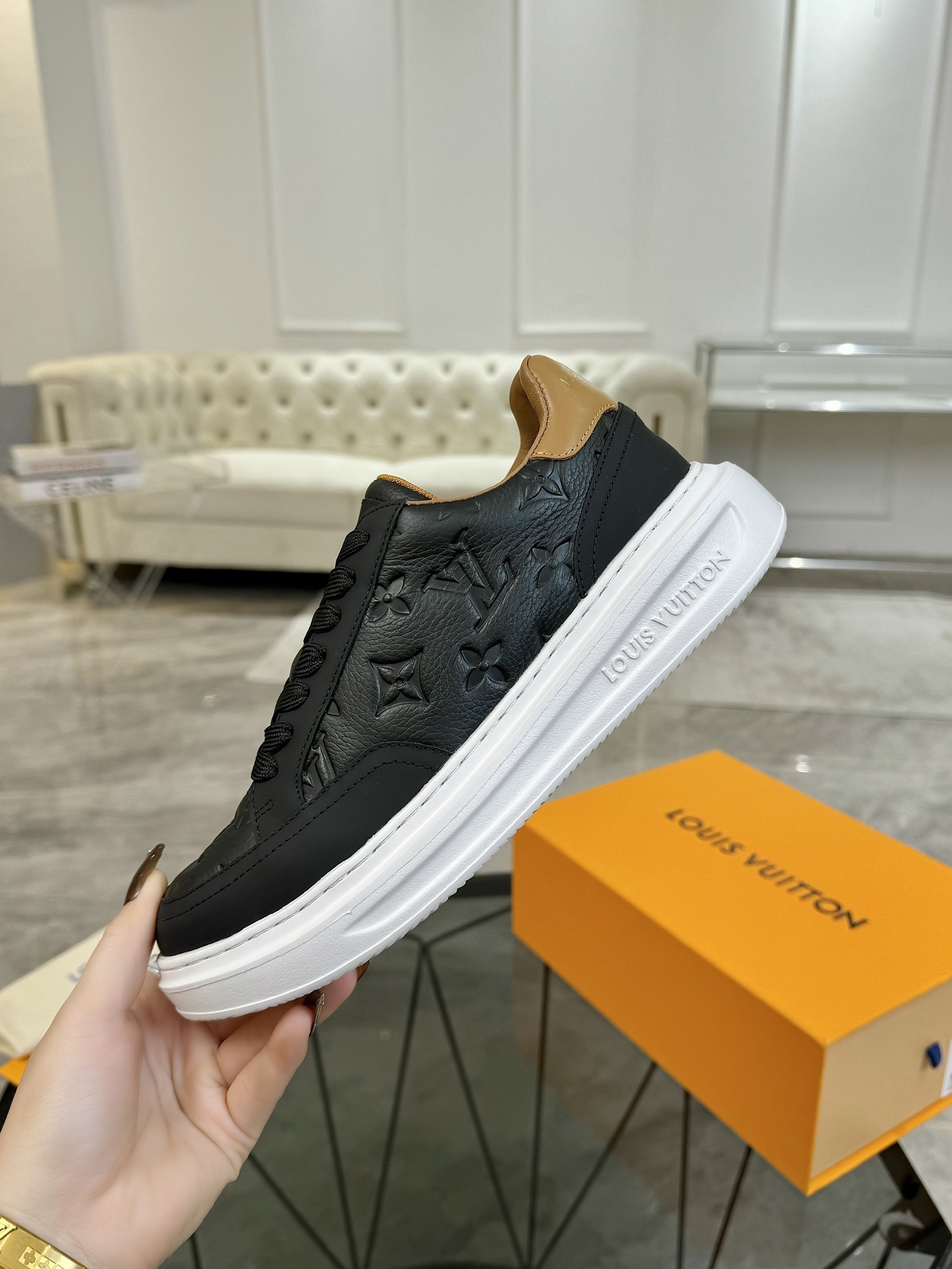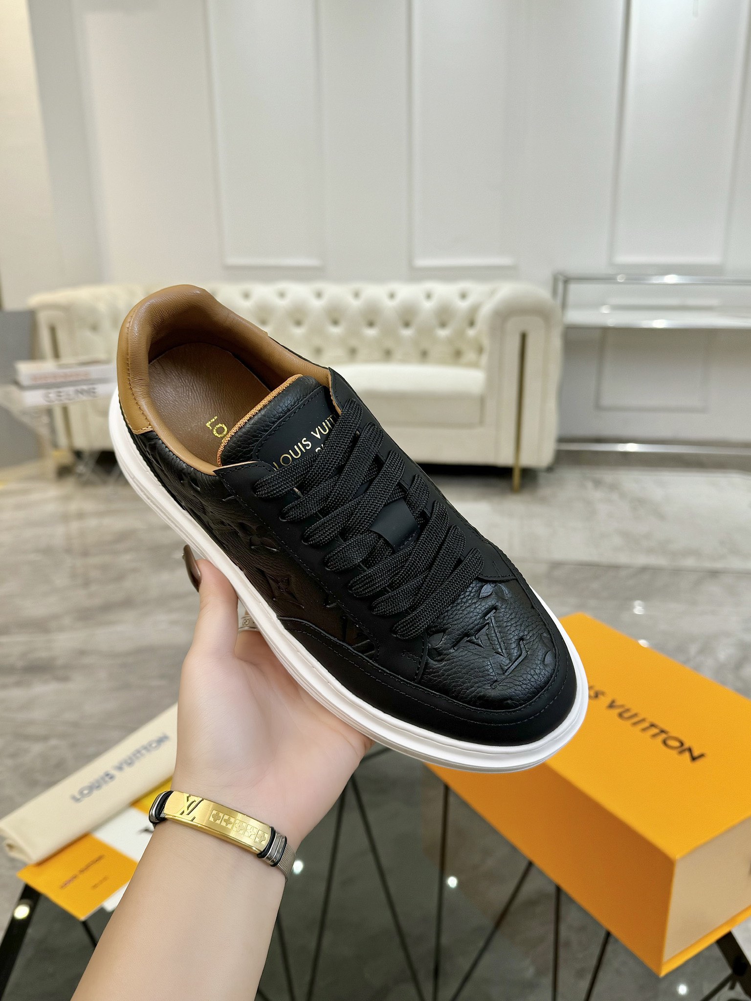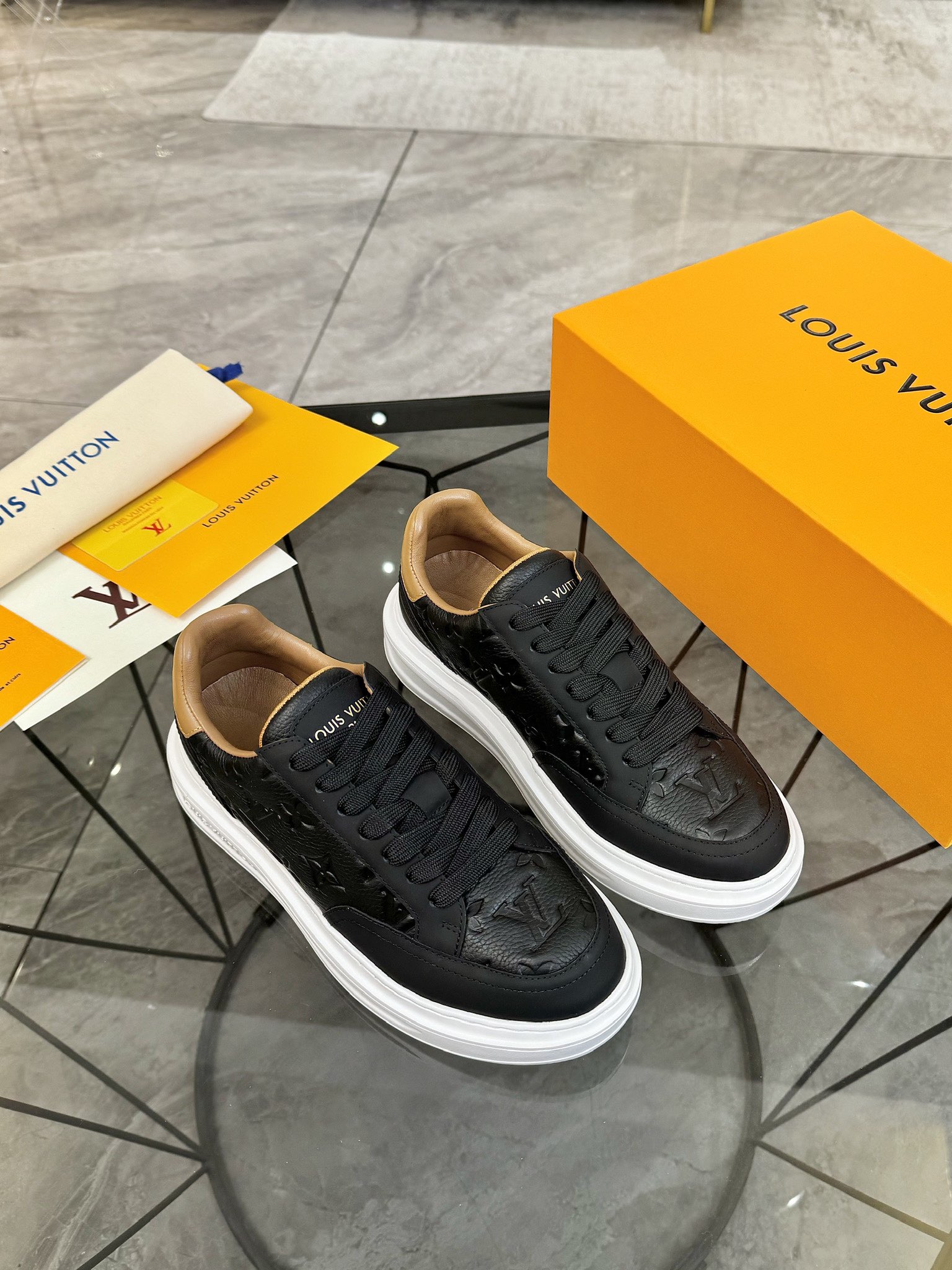 This shoes is AAAAA 1:1 quality (superb). Materials used are identical to the original ones. Louis Vuitton trademark marks are indistinguishable to the authentic. Photos take by actual shoes, what you receive will be 100% same with our photos.