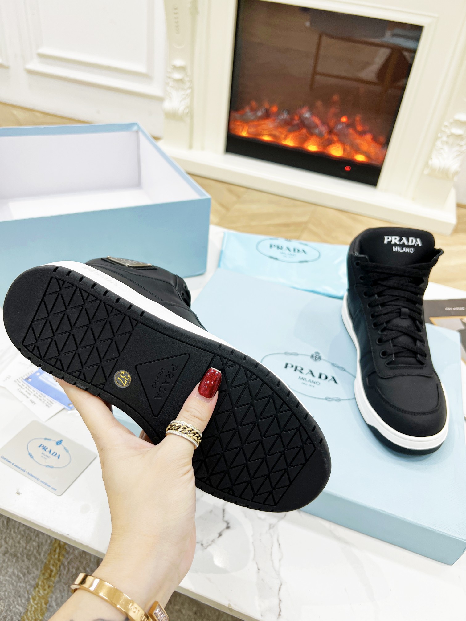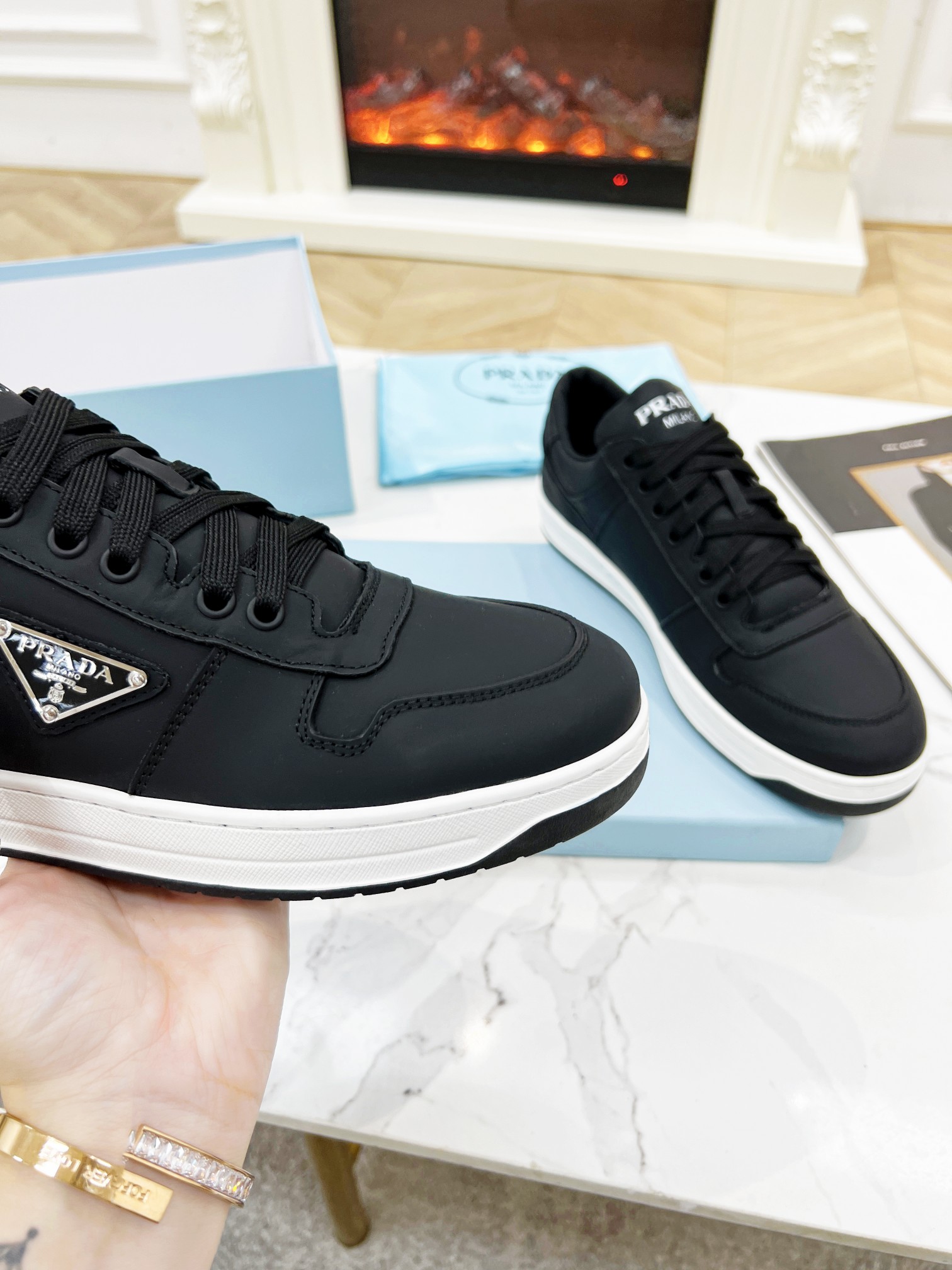 This shoes is AAAAA 1:1 quality (superb). Materials used are identical to the original ones. Prada trademark marks are indistinguishable to the authentic. Photos take by actual shoes, what you receive will be 100% same with our photos.