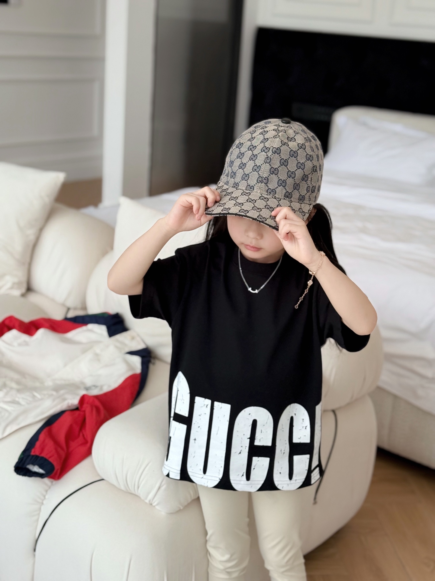 This children's clothes is AAAAA 1:1 quality (superb). Materials used are identical to the original ones. trademark marks are indistinguishable to the authentic. Photos take by actual children's clothes, what you receive will be 100% same with our photos.